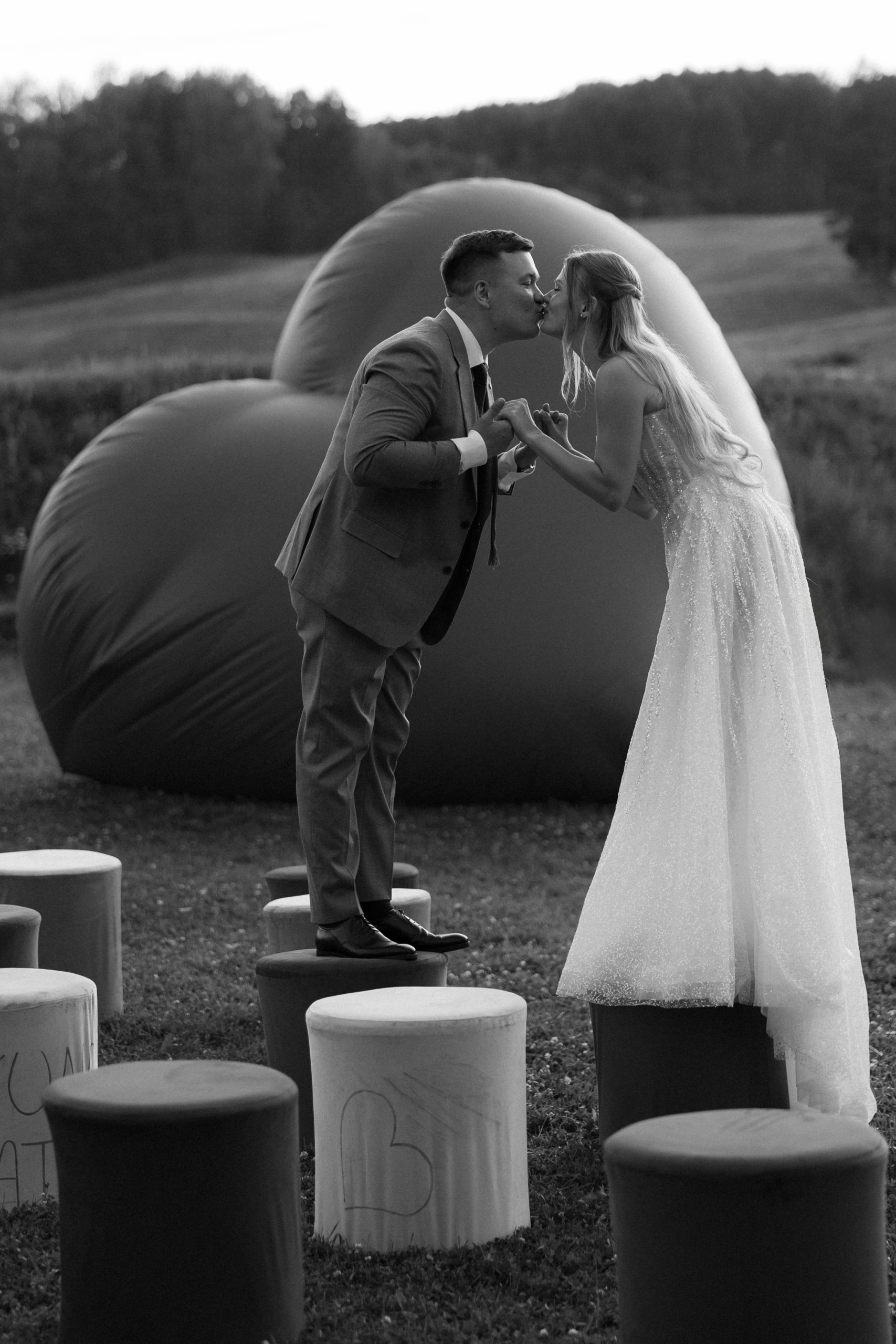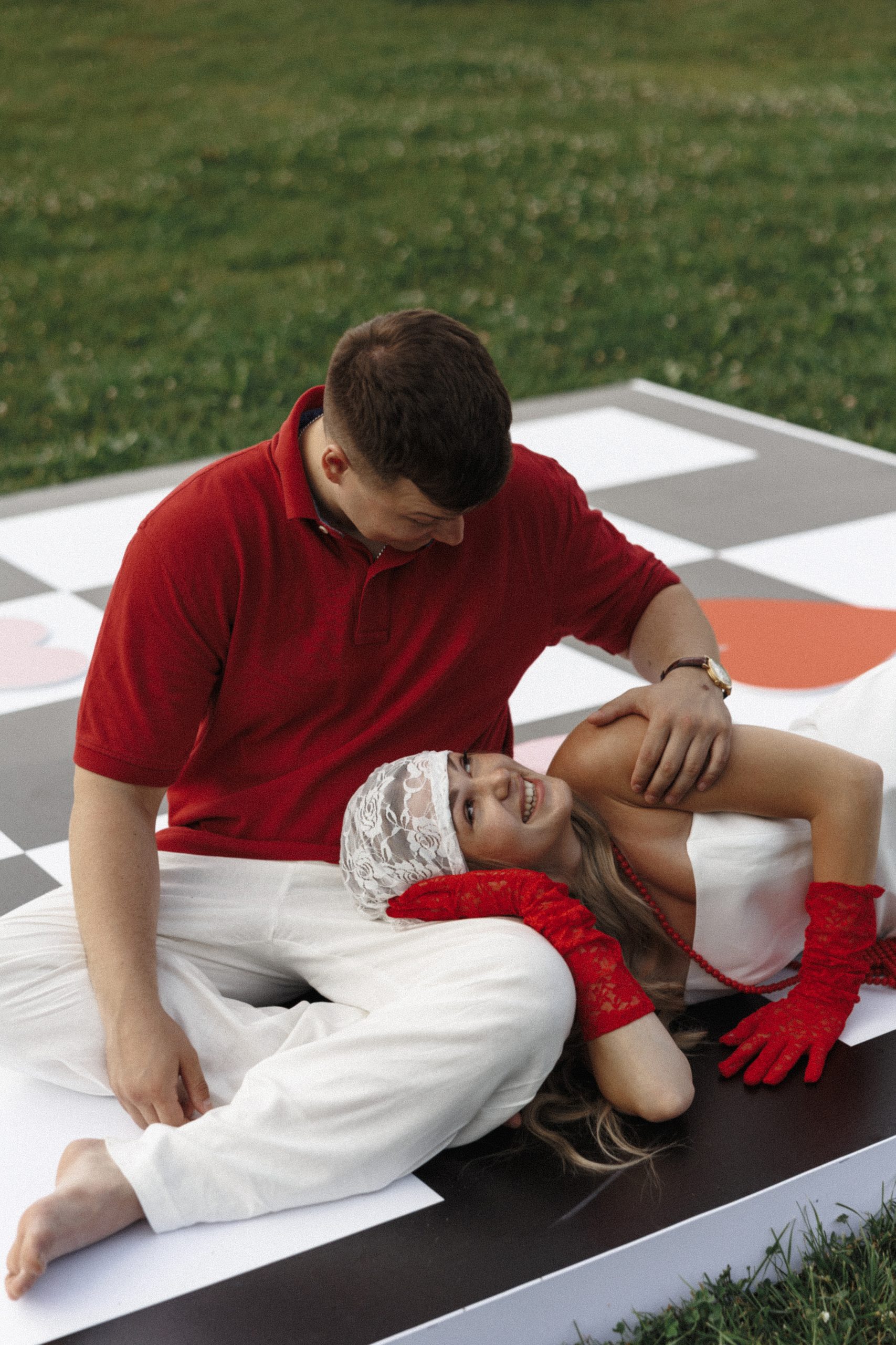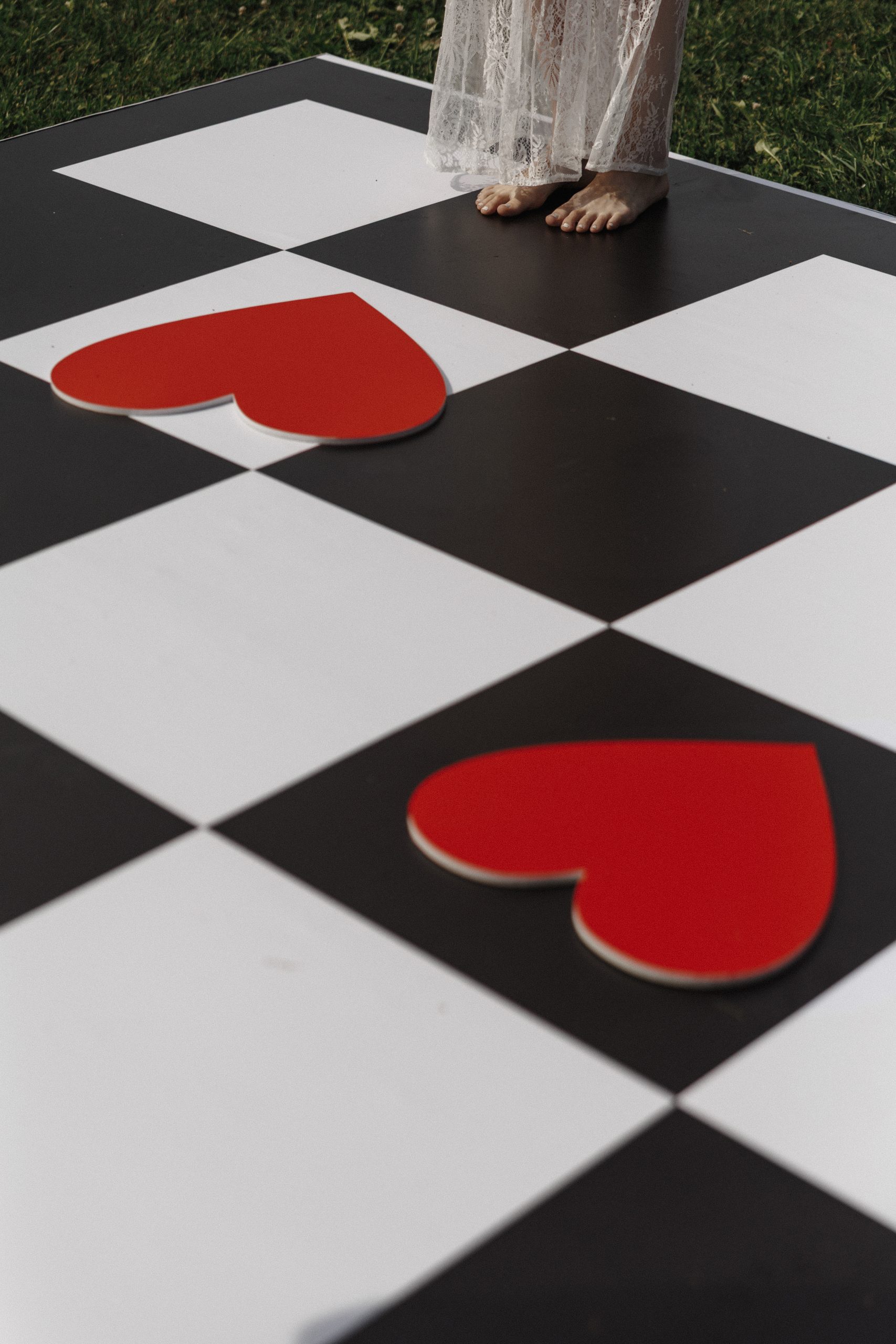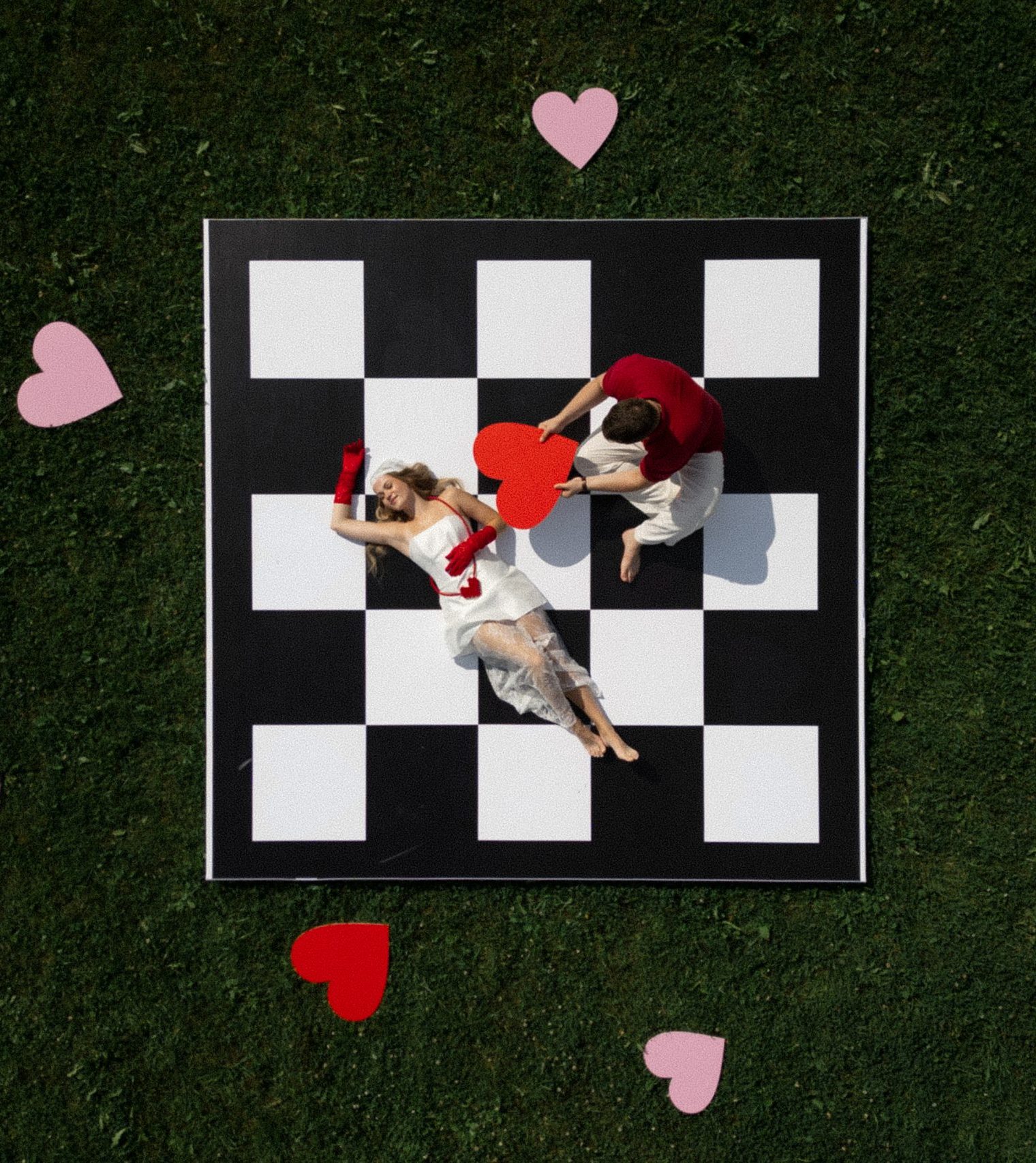Так появилась игривая концепция с одноимённым названием, где декораторы создали шахматную доску, чтобы разыграть партию в сердечки, символизировав шаги, которые пара совершала в сторону друг друга на первом этапе отношений.