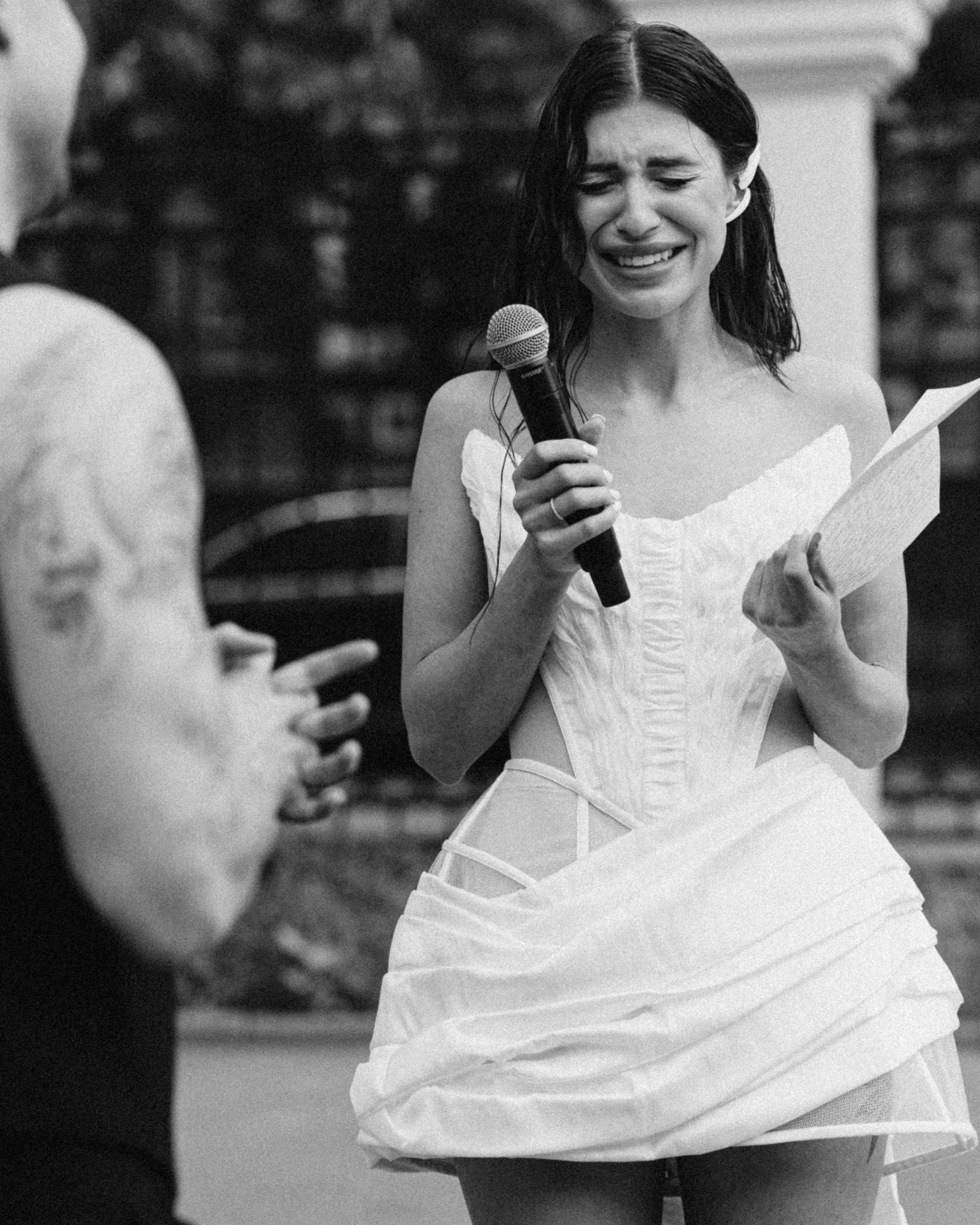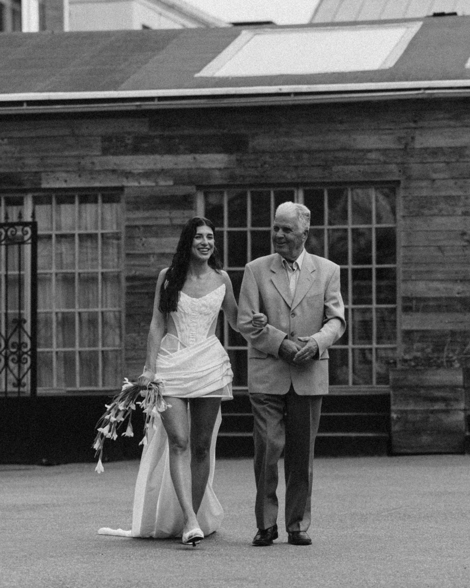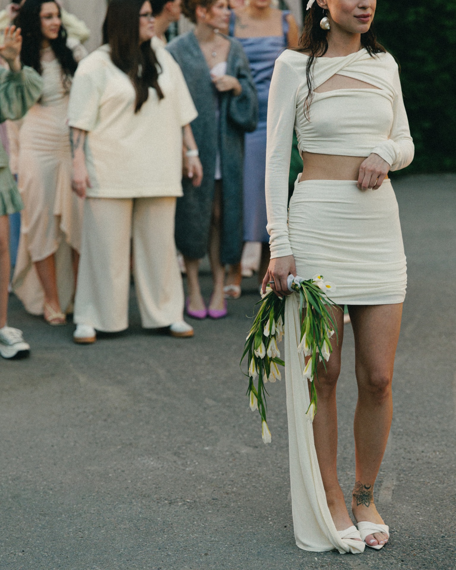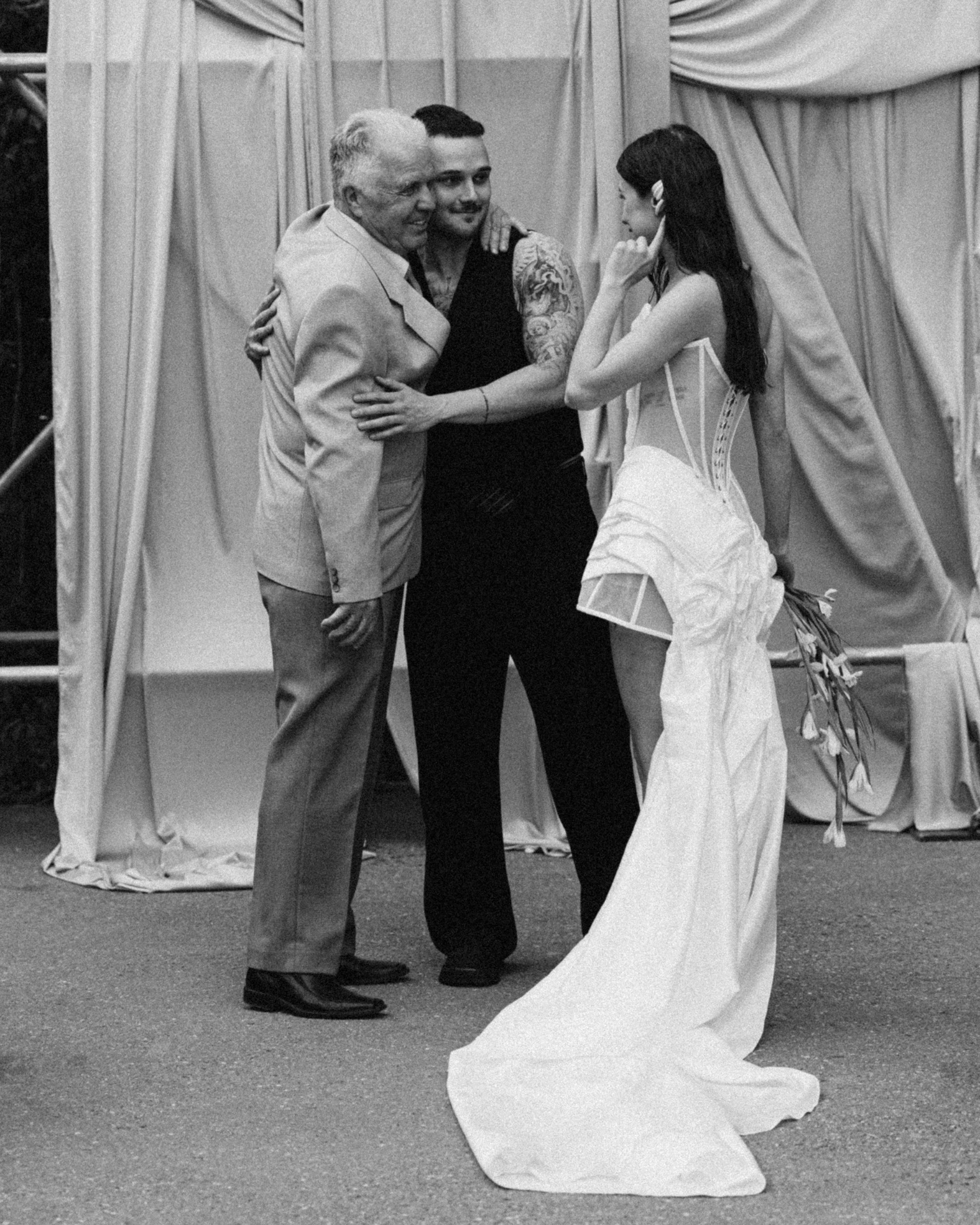 Церемония прошла в дворике особняка, к жениху Соню выводил её дедушка. Это было очень трогательно. От клятв пары прослезились даже друзья Никиты.