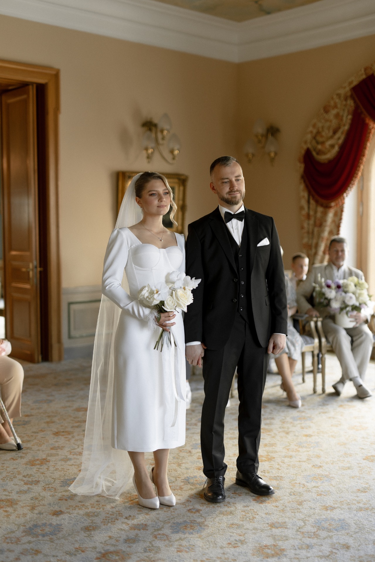 Выбрать свадебное платье оказалось очень легко: я всегда представляла на себе что-то лаконичное, закрытое и скромное. В салон VivaBride я пришла за конкретным платьем, но примерила ещё несколько других моделей, чтобы точно убедиться в своём выборе. В итоге я забрала то самое платье, за которым пришла изначально.