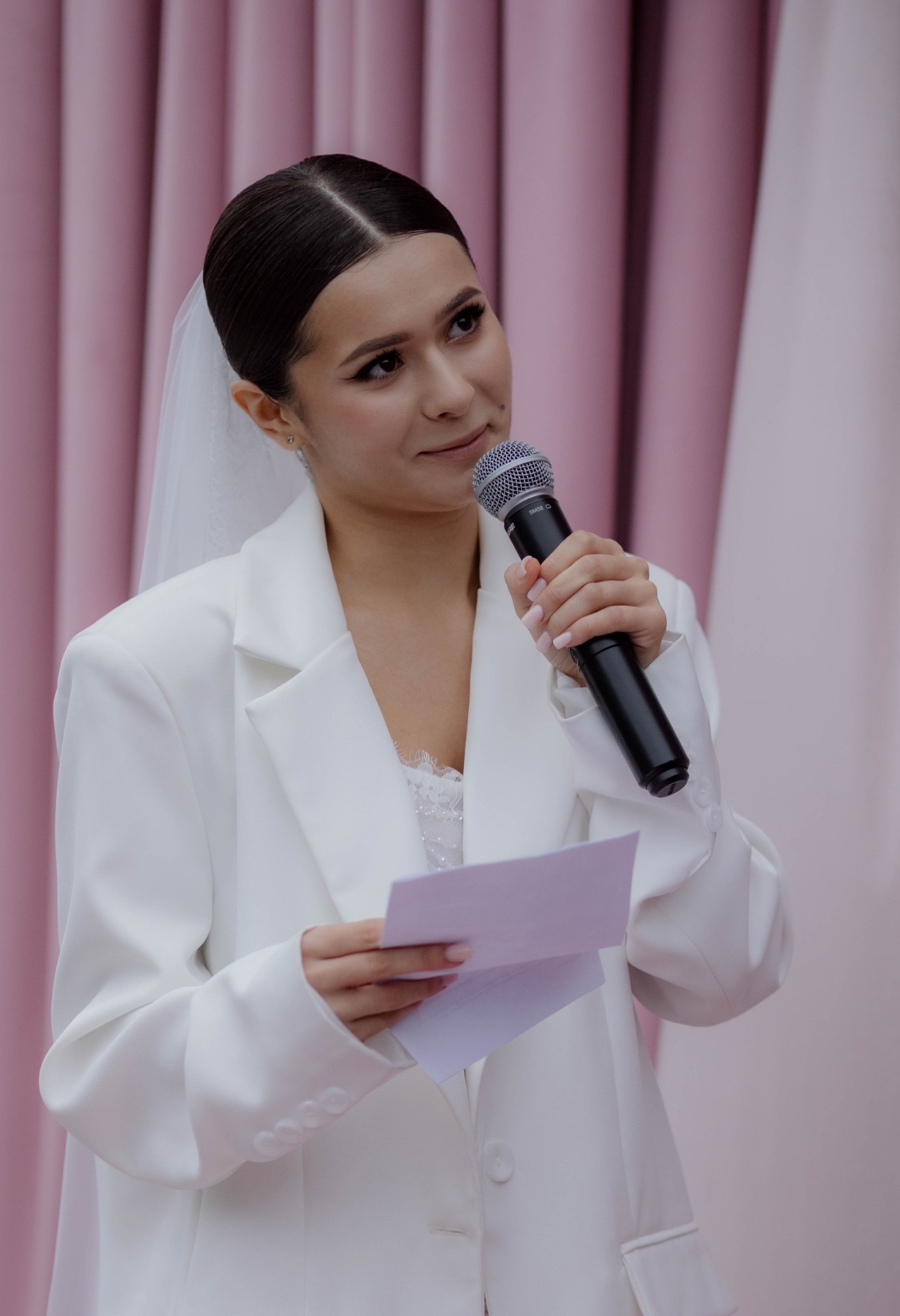 Если говорить про мой основной образ, я долго оттягивала примерку платьев, потому что боялась не найти то самое. Но все переживания были напрасны: в это платье я влюбилась с первой примерки и все остальные сравнивала исключительно с ним. Также я добавила в образ длинную фату, что в разы усиливало ощущение, будто я модель.