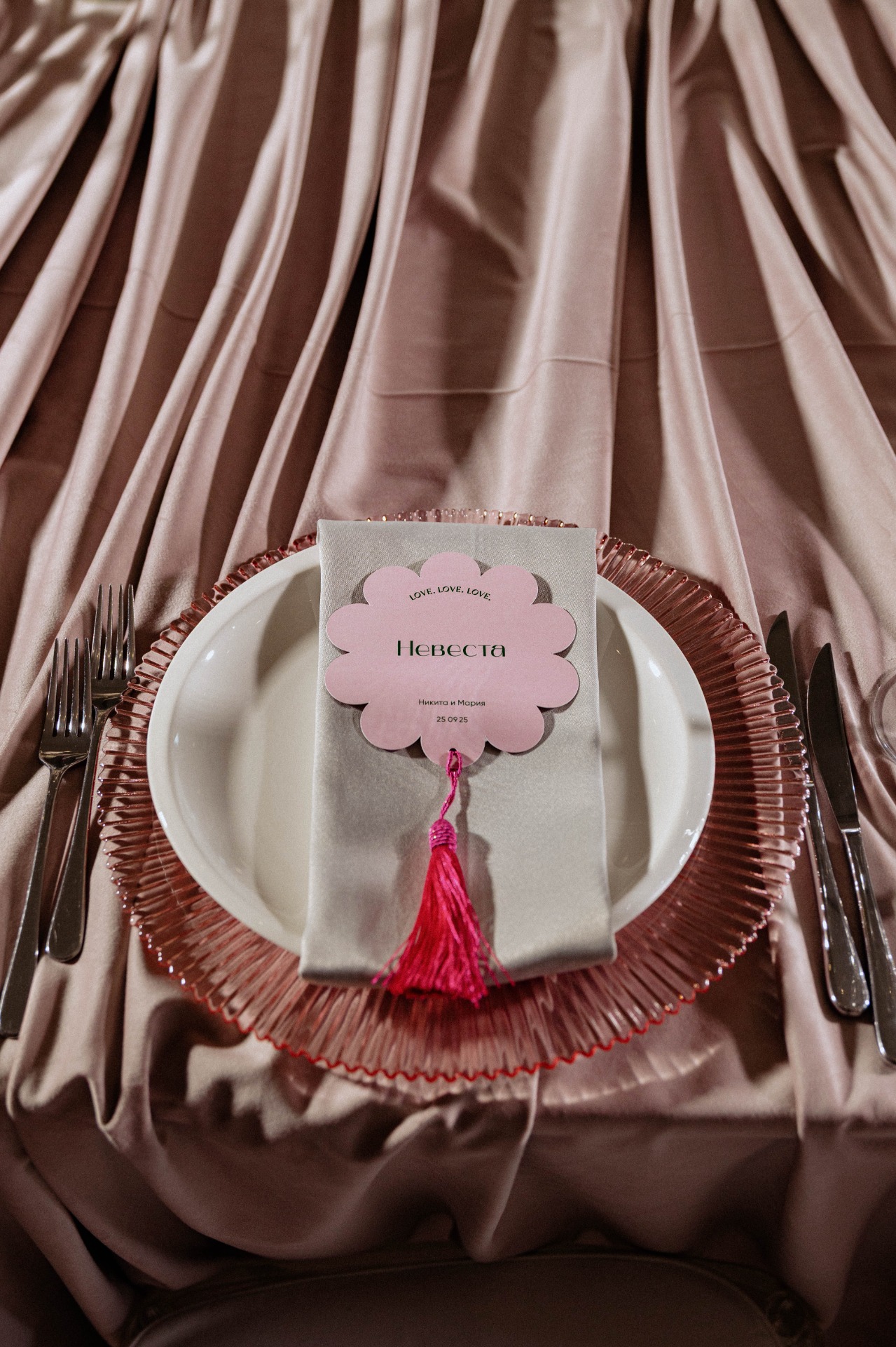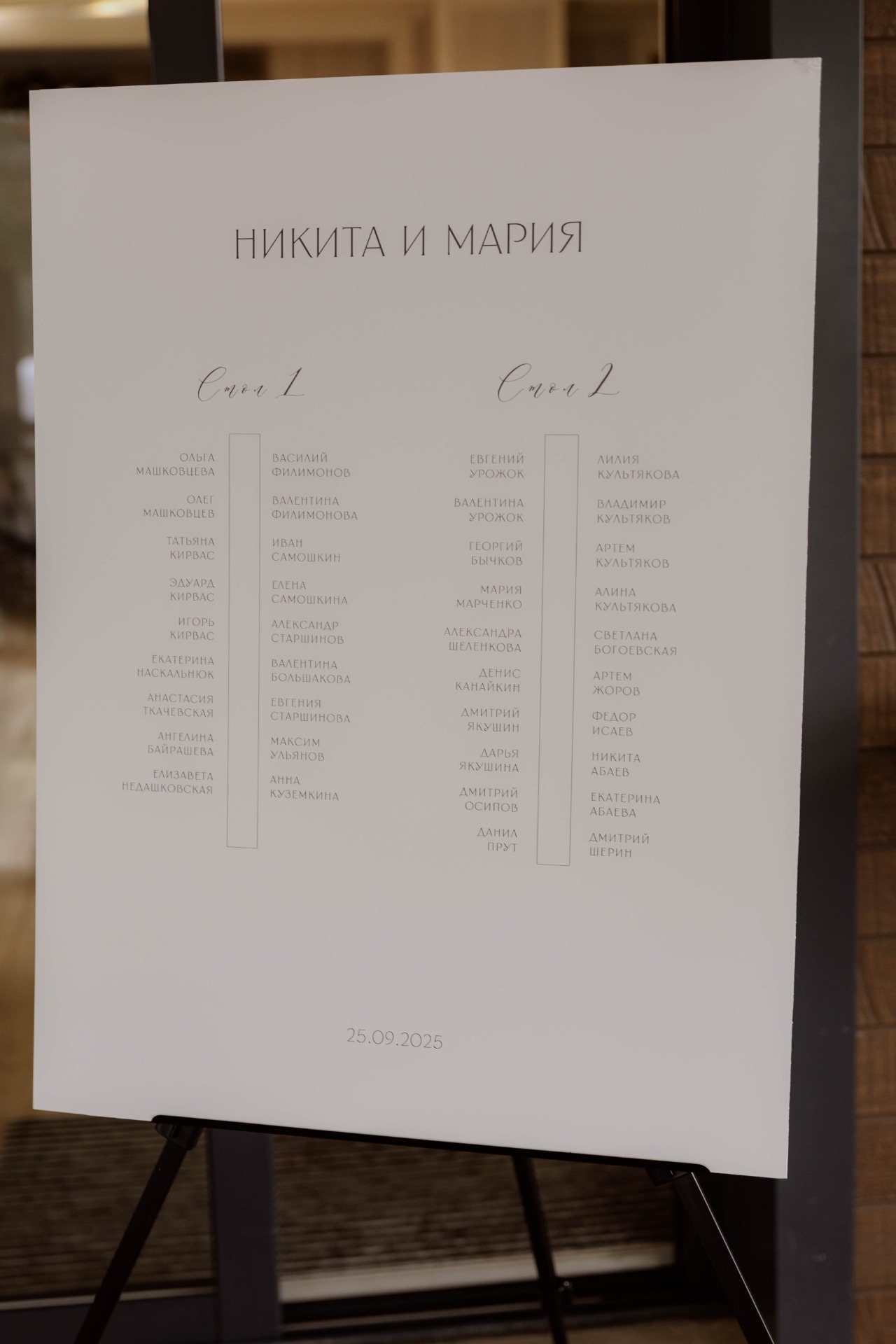 Красивая дата выпала нам совершенно случайно: мы отталкивались от даты росписи, 23.09.25, и хотели сделать торжество через день после неё. Так получилось, что наш праздник прошёл 25.09.25. Как говорила наша организатор Катя: «Это благоприятные лунные сутки для свадьбы!»