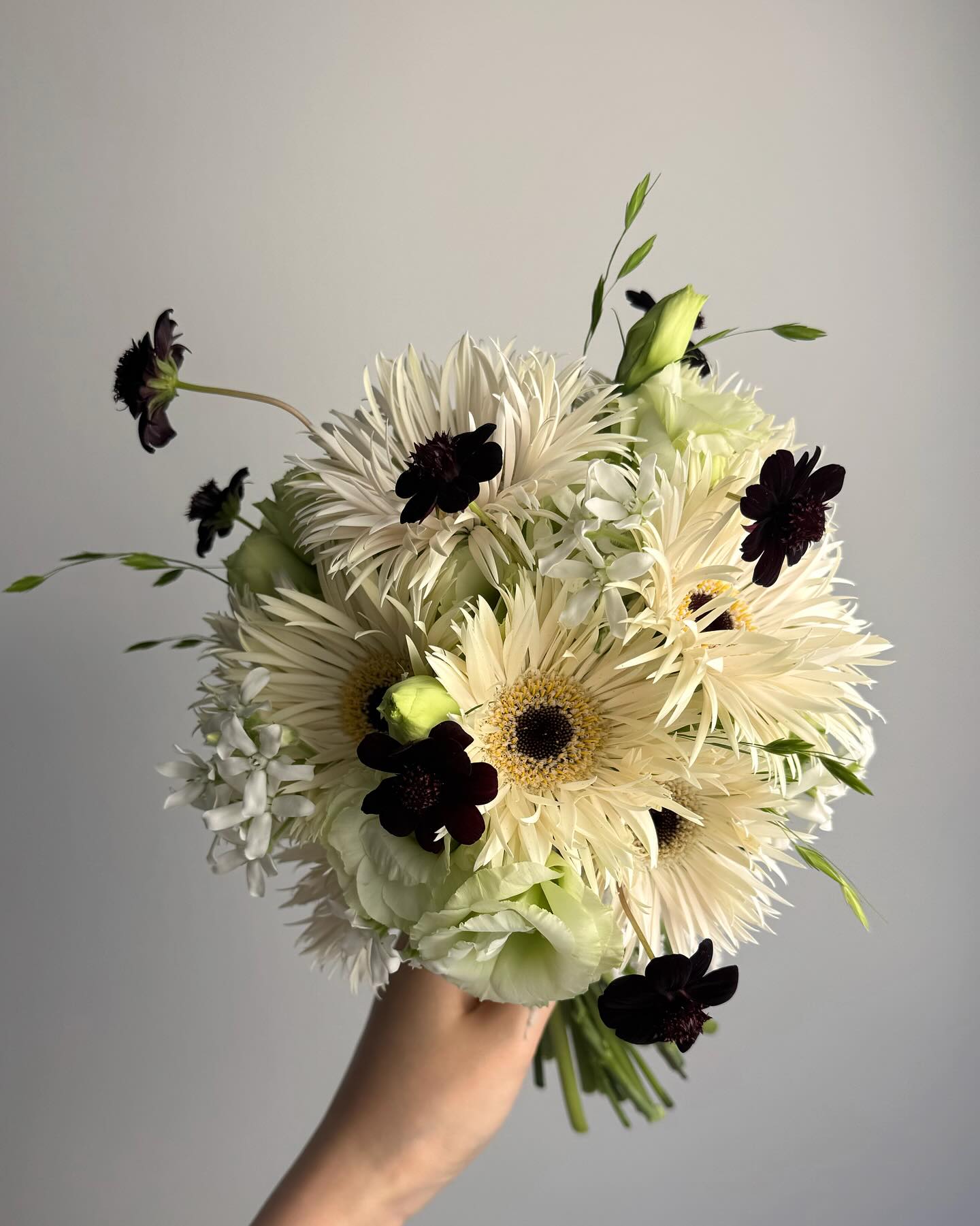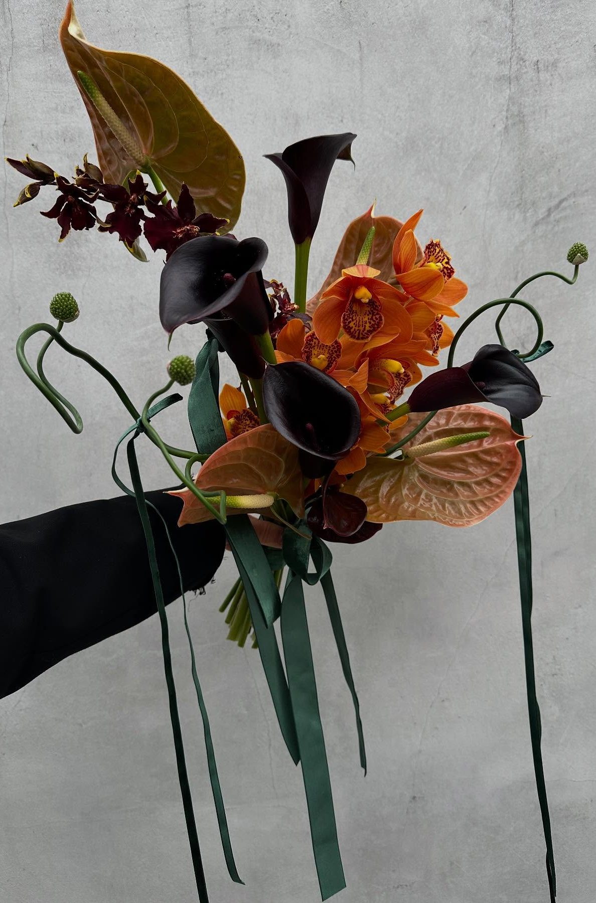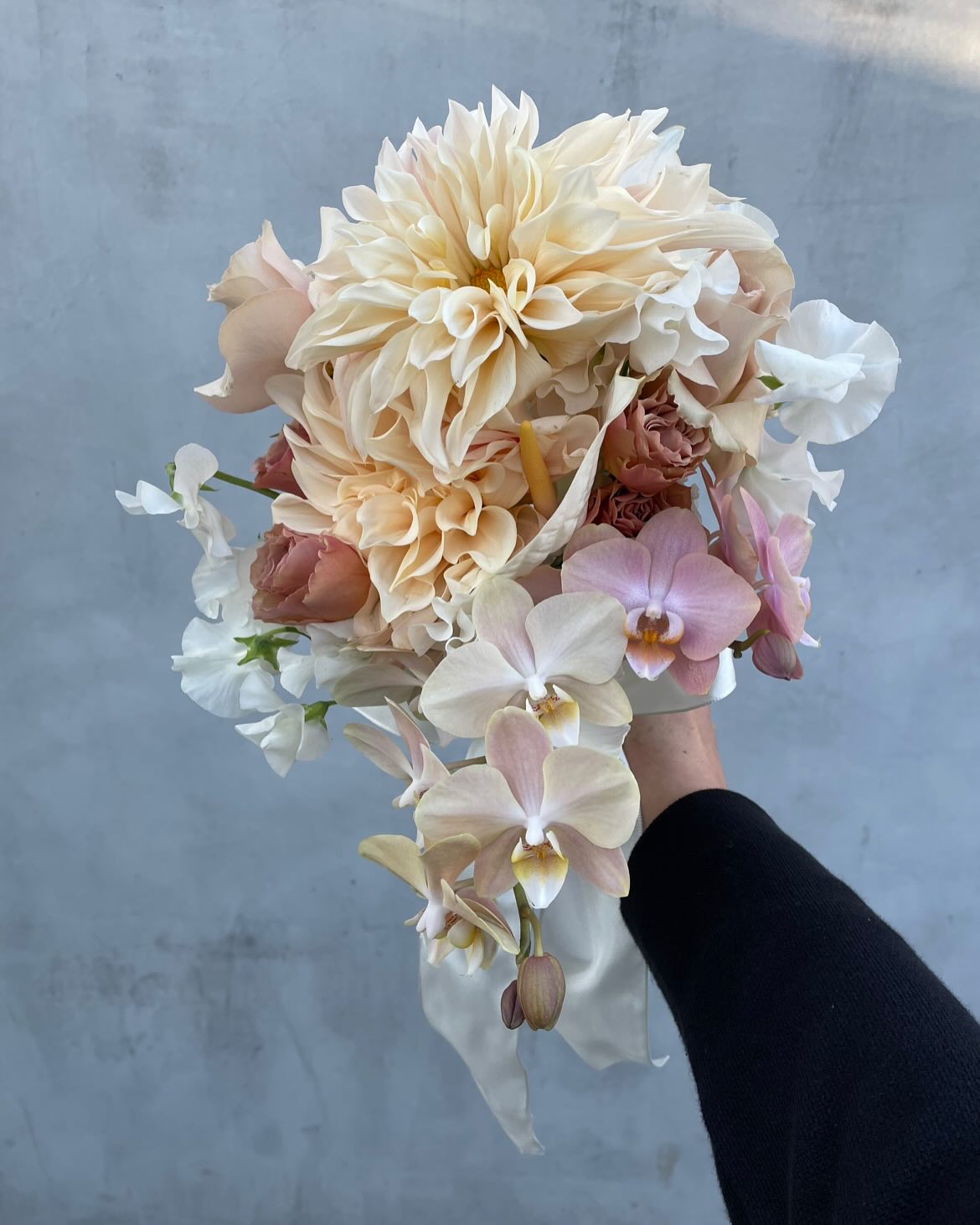 Классический букет из роз или ранункулюсов легко сделать осенним — добавь золотисто-охристые акценты в виде растений или лент. Палитра пусть будет тёплой: от бежа до глубокого бордо.