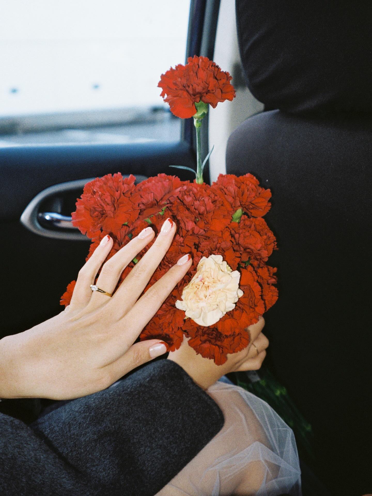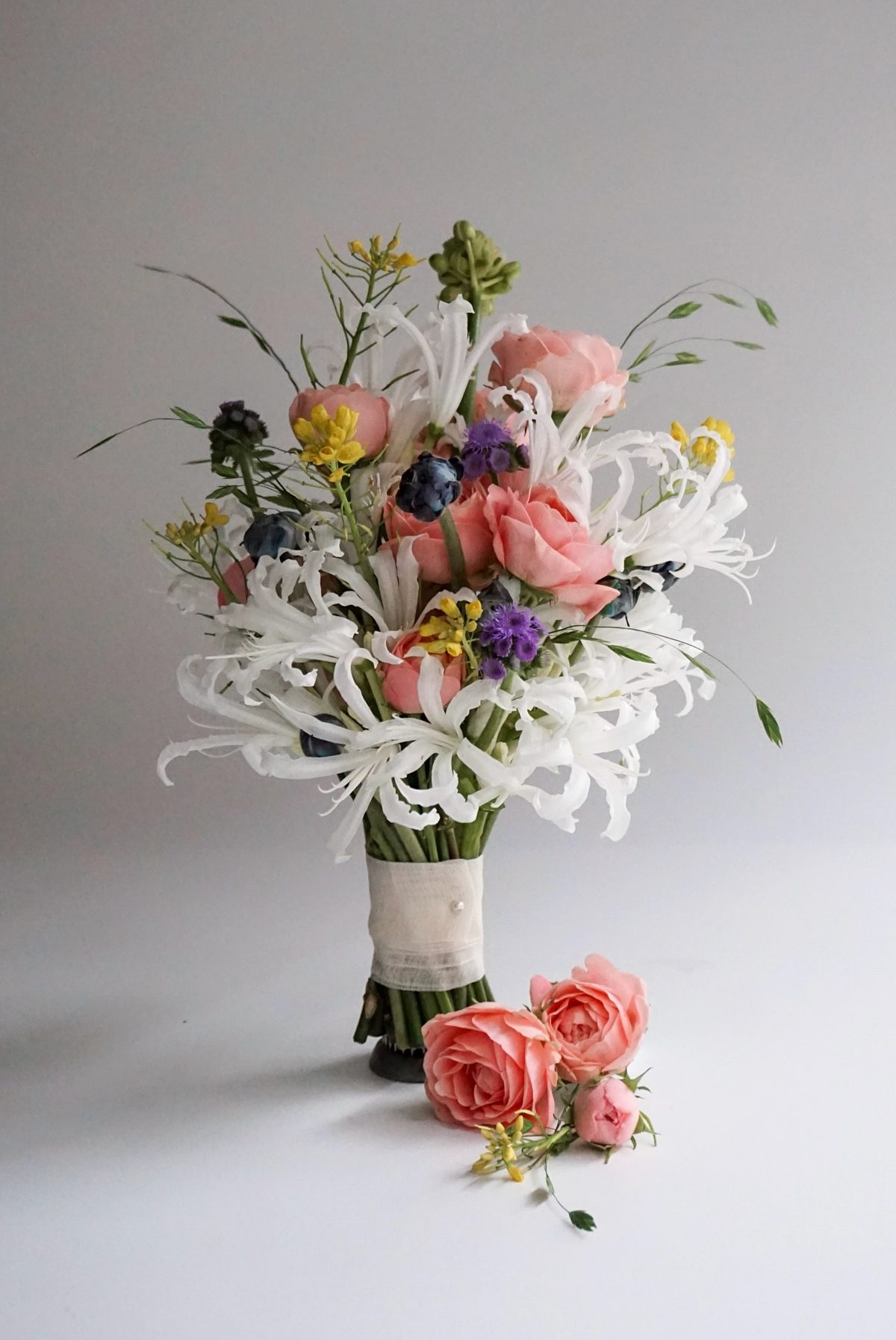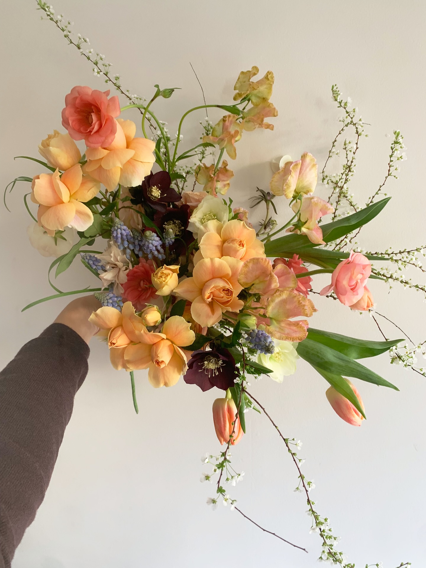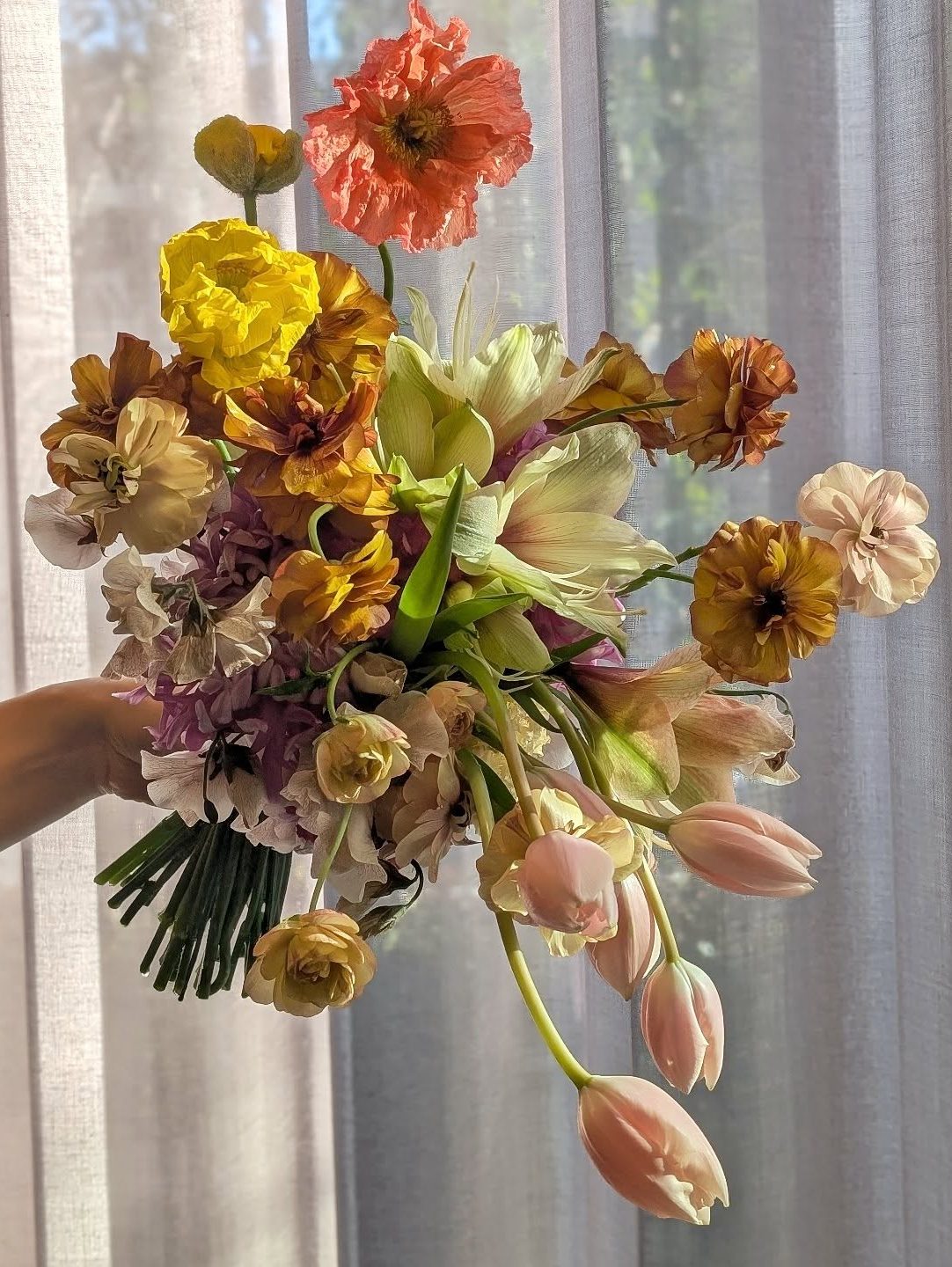 Классический букет из роз или ранункулюсов легко сделать осенним — добавь золотисто-охристые акценты в виде растений или лент. Палитра пусть будет тёплой: от бежа до глубокого бордо.