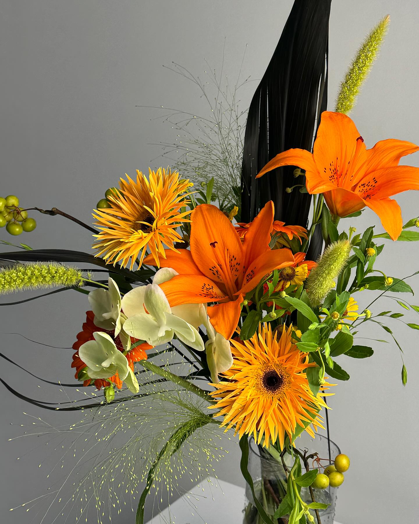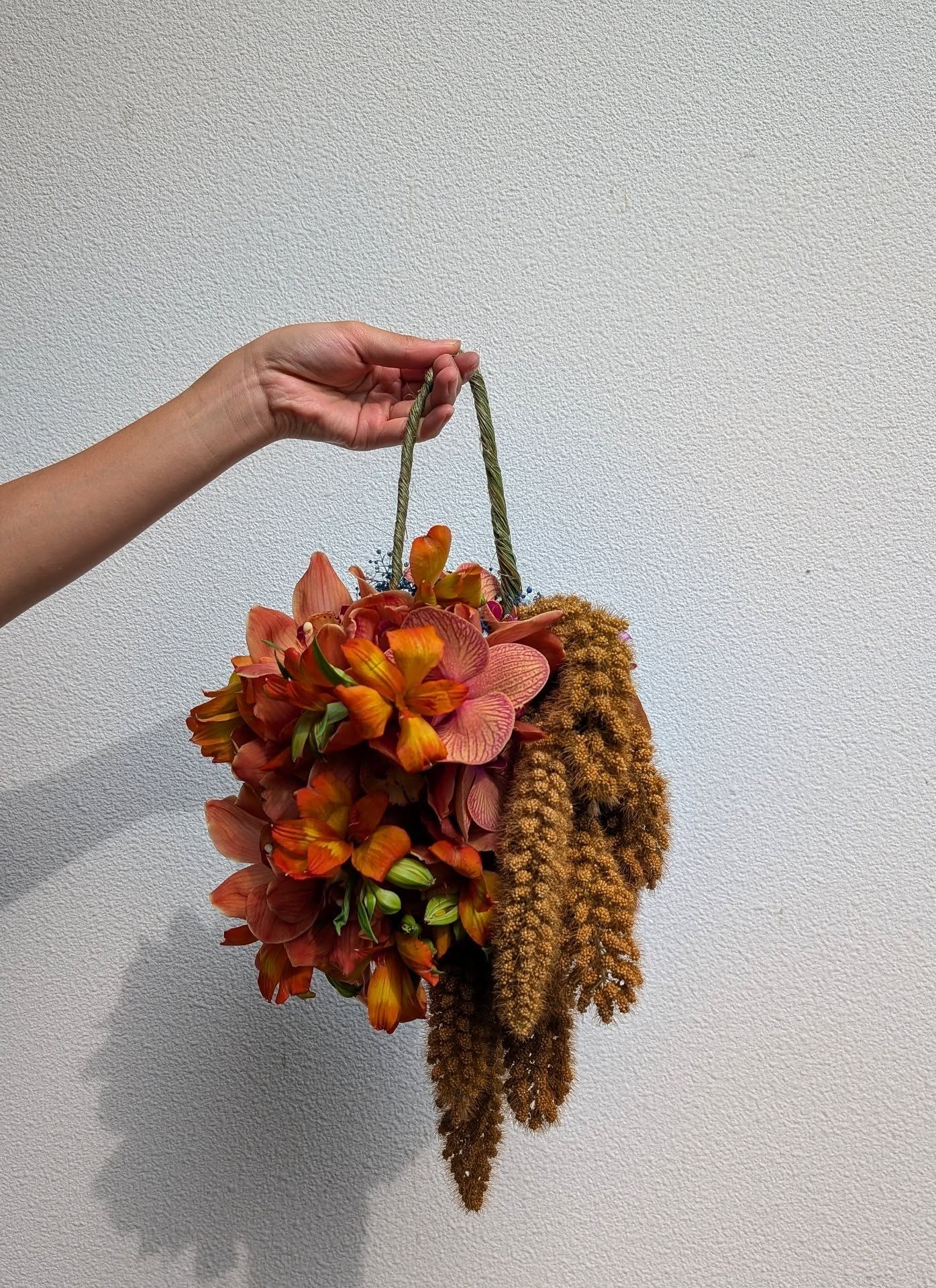 Сухоцветы и колосья станут красивой основой для рустикальной композиции. Добавь оранжевые кленовые листья, ягоды, «кудрявые» веточки и осенние сезонные травы — так букет получится тёплым, естественным и очень атмосферным.