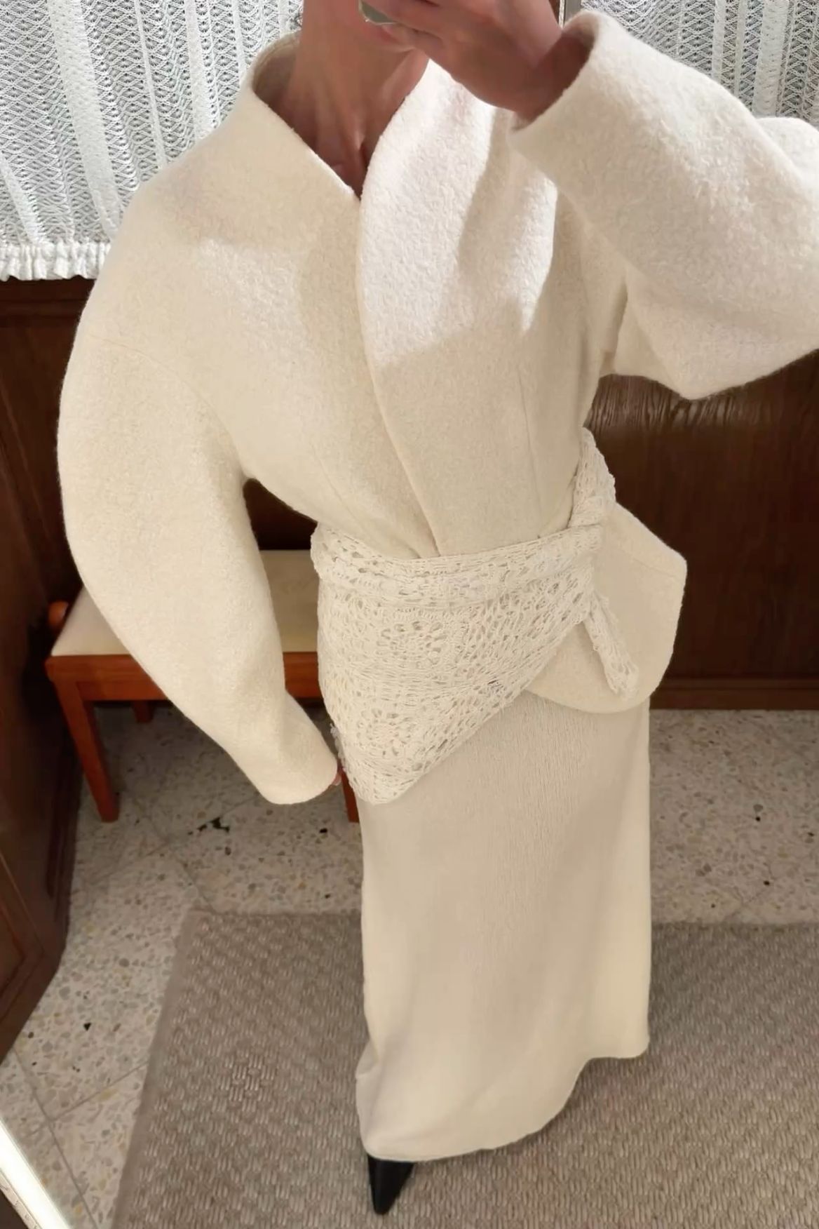 Сверху вместо кардигана можно накинуть трикотажный или шерстяной бомбер, укороченный жакет или пальто классического, слегка оверсайз, кроя. Главное, чтобы верхний слой продолжал историю платья. Мех и более тяжёлые акценты не остаются в стороне, если дополняют, а не перегружают образ.