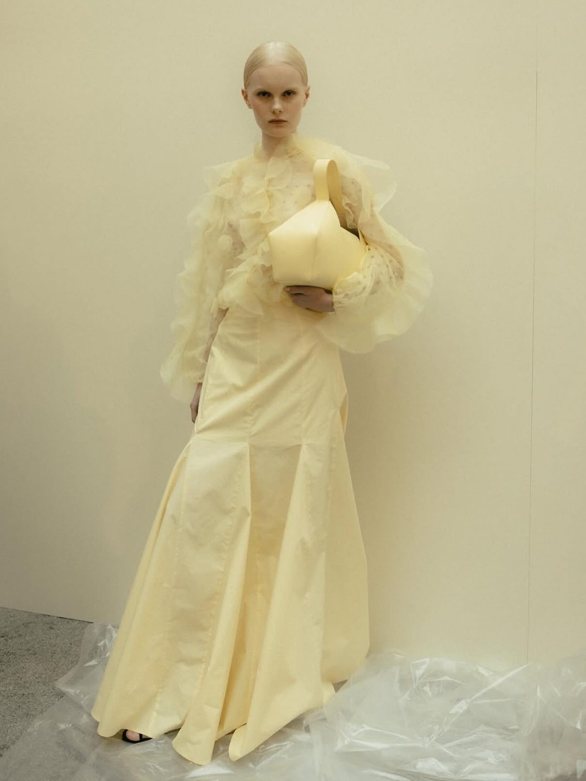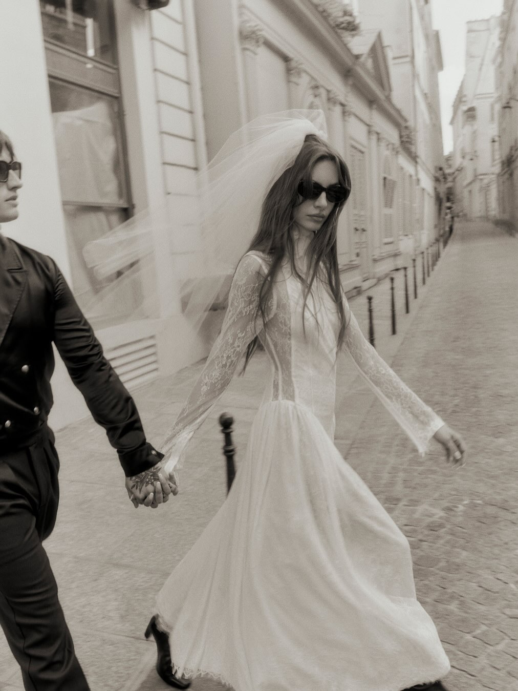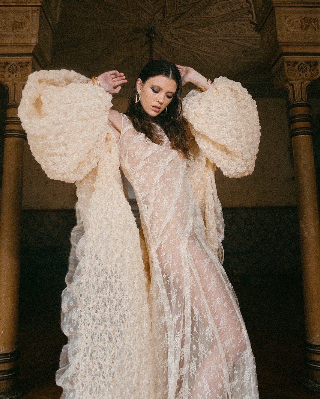 Осень всё чаще звучит в образах невест через многослойность и фактуру. Длинные рукава и плотные ткани стали не правилом, а акцентом, их комбинируют с прозрачными деталями, асимметрией и игрой силуэтов.
