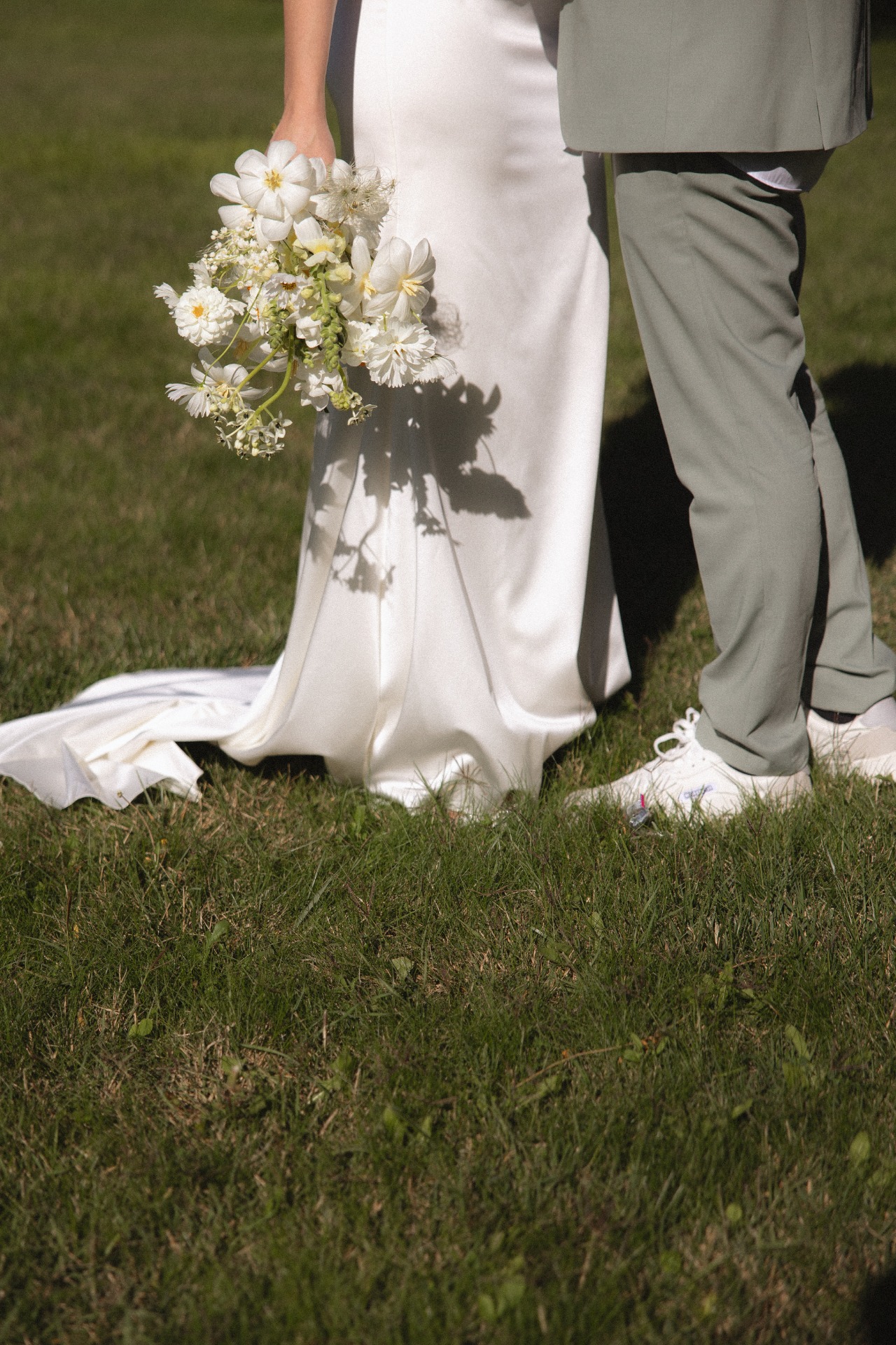 Для Гриши мы искали костюм в шалфейно-зелёном оттенке, и нашли его у Boss. Я также заказала для него вышивку с ландышами на лацкан пиджака, её сделала знакомая вышивальщица из Италии. Так у нас обоих появились особенные детали ручной работы.