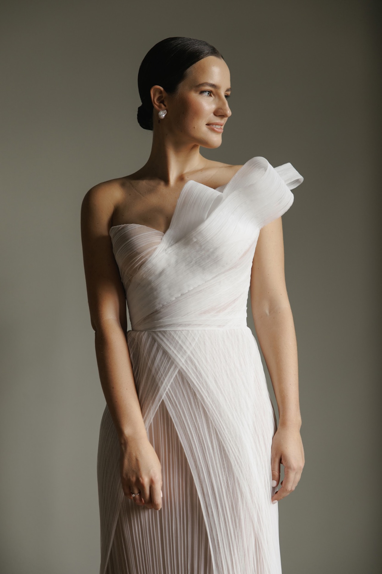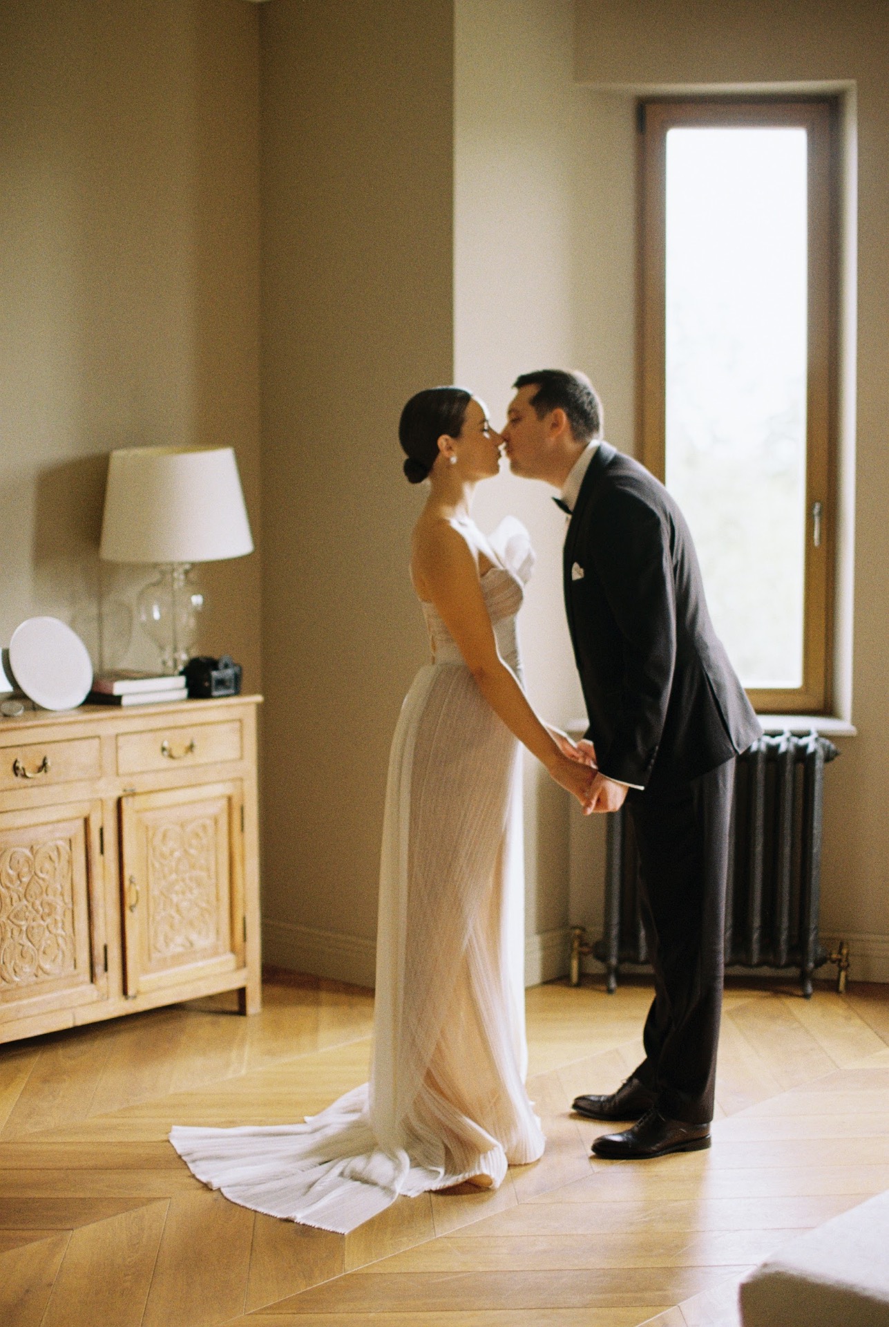За полгода до предложения я наткнулась на платье от дизайнера Ланы Мариненко, которое запало мне в душу. Просмотрев все сайты свадебных салонов, я так и не смогла его забыть. В итоге, заказала его вслепую: впервые я примерила его в своём размере только за две недели до торжества. Но все риски того стоили! Именно от этого платья мы и отталкивались при создании свадебного декора.