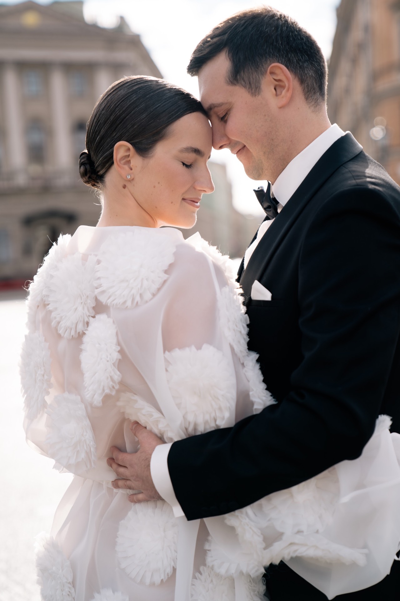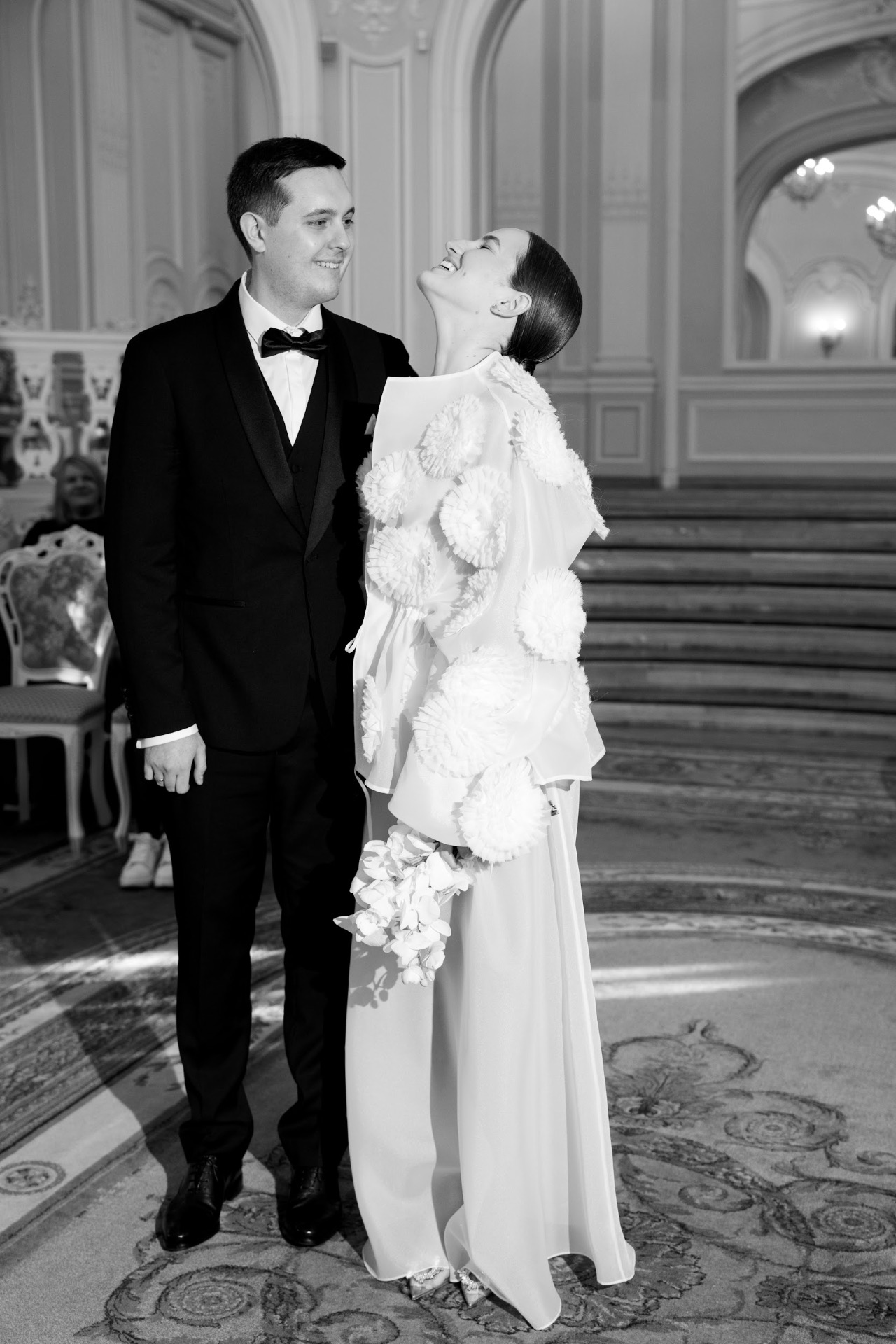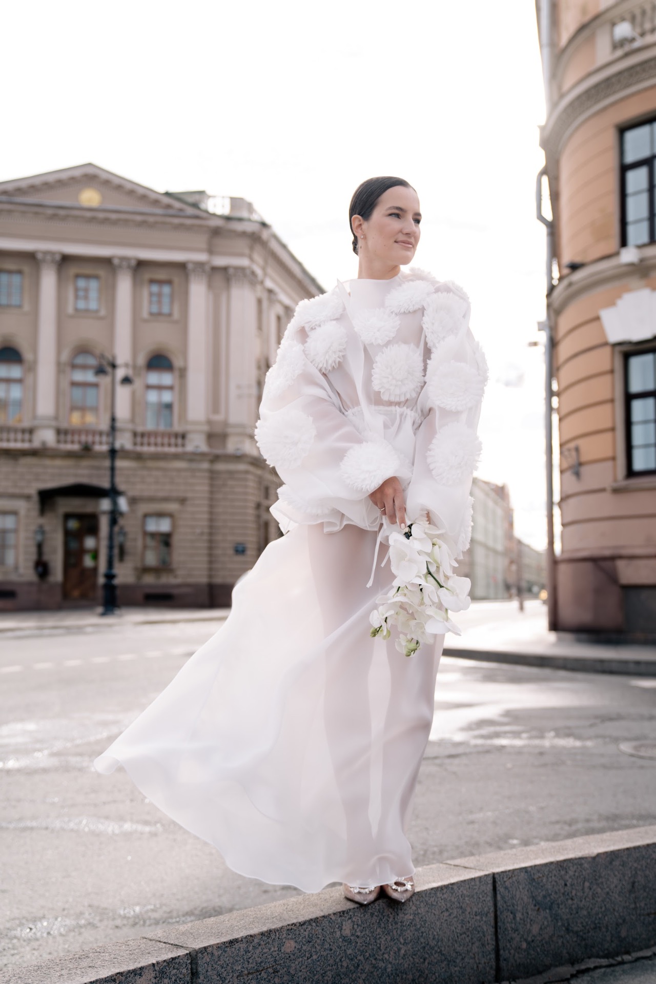 Второй наряд, от дизайнера Виктории Лабай, я выбрала спонтанно, когда поняла, что в первом платье мы не сможем сделать поддержку в танце. С нарядом для ЗАГСа всё было сложнее: одно платье пришлось сдать, потому что только за полтора месяца до свадьбы я случайно нашла наряд мечты в Екатеринбурге. Туфли пришлось заказывать из Европы, поскольку подходящей пары не было в наличии.