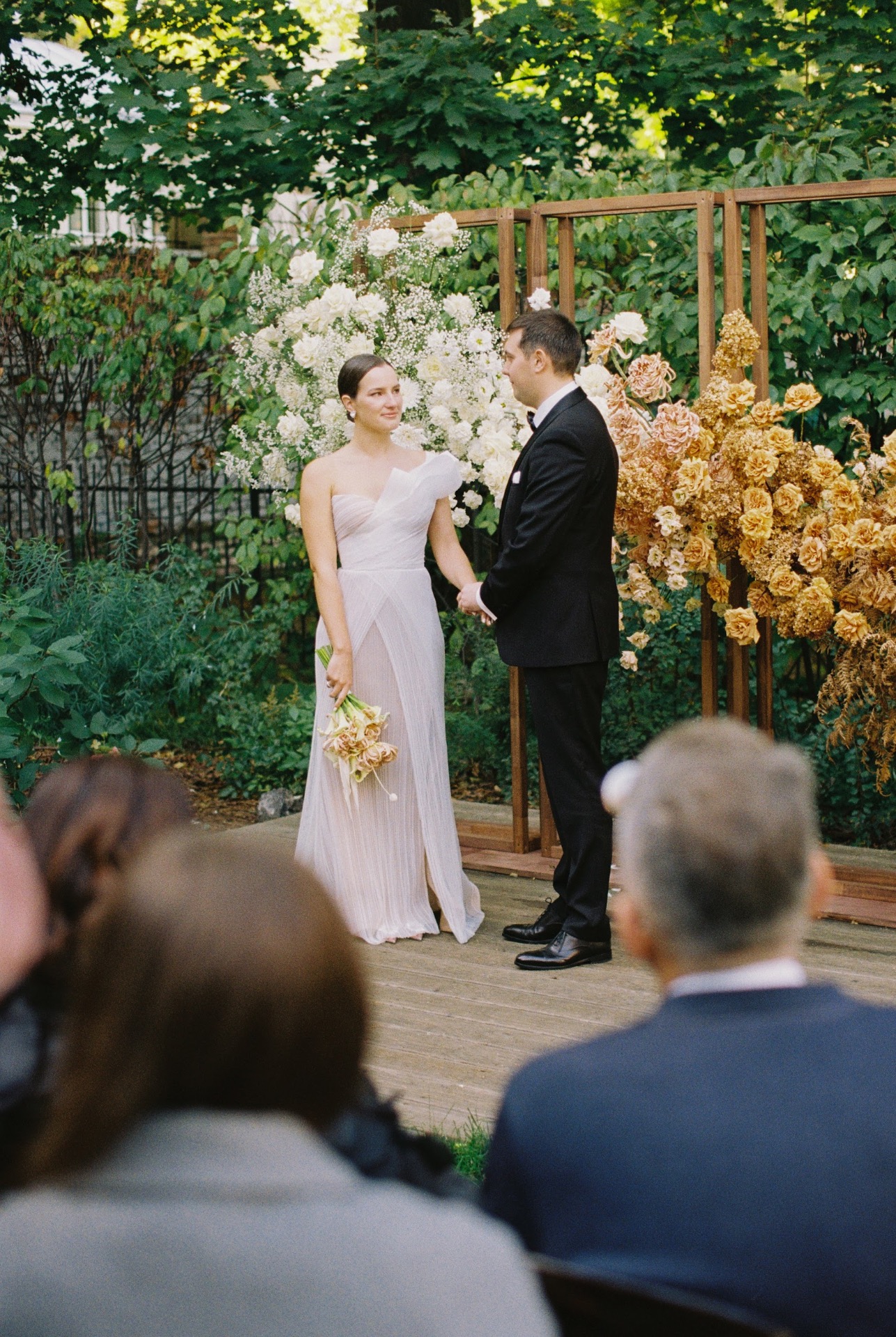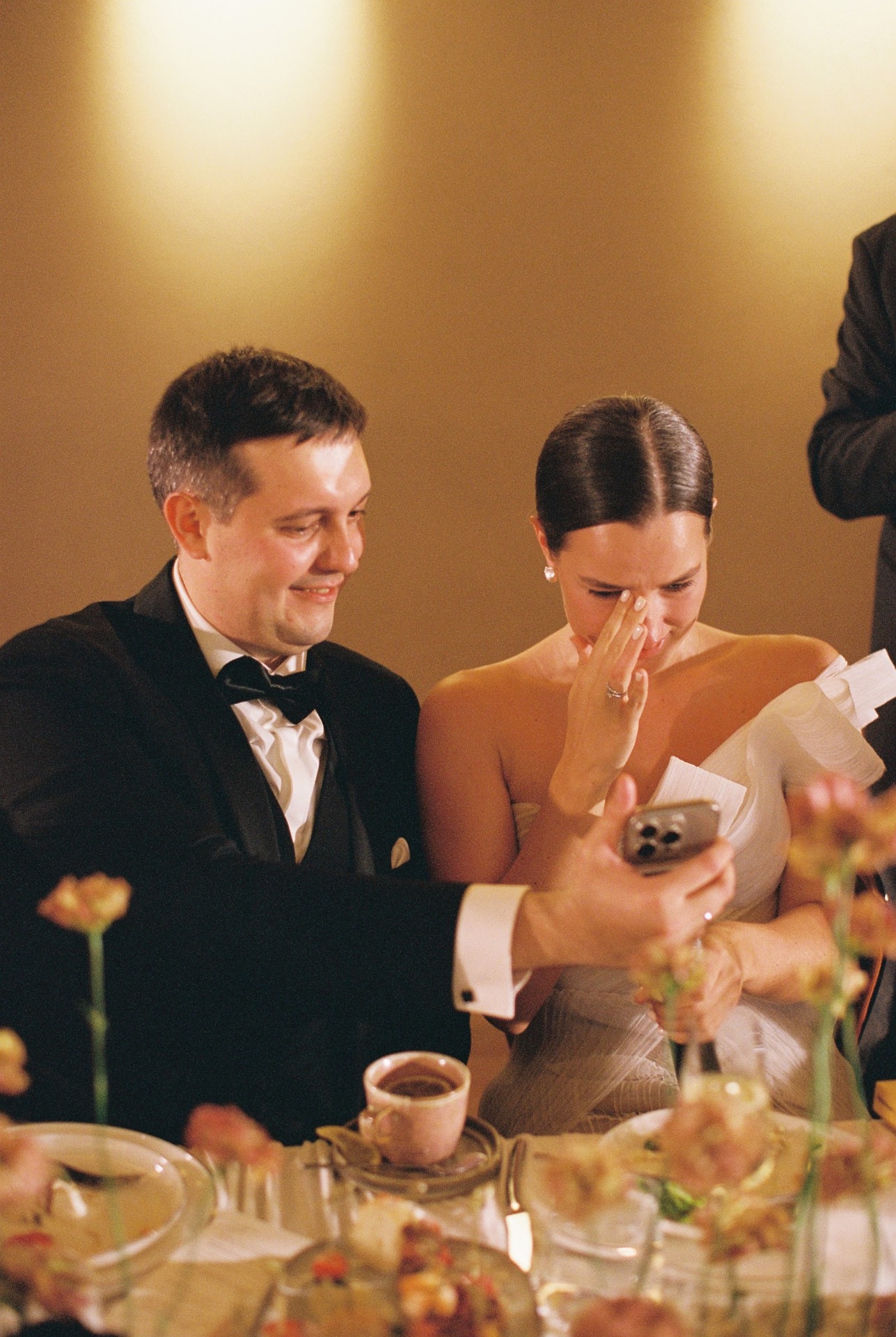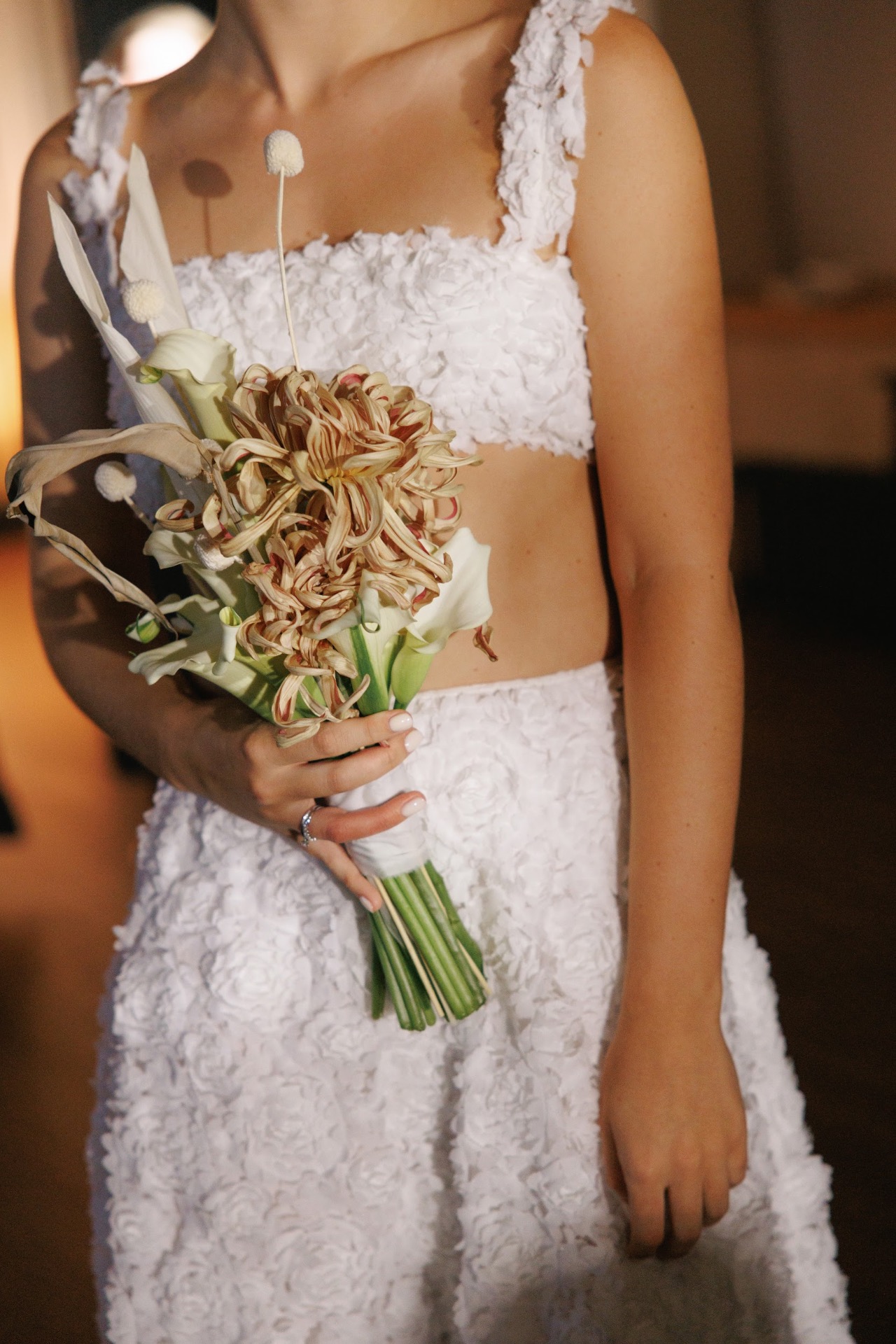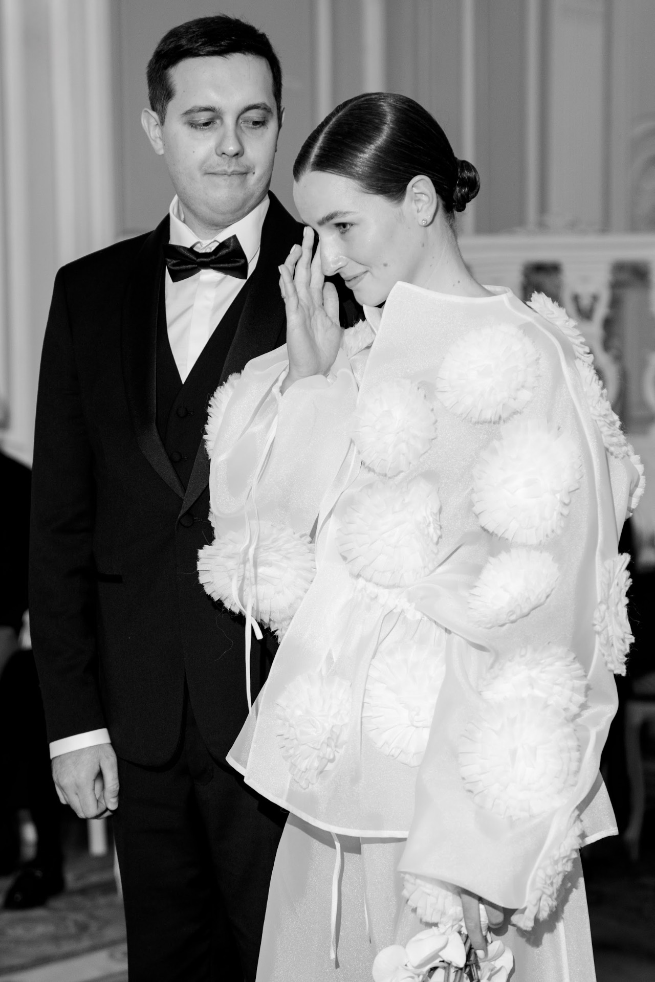 Мы мечтали о камерном уютном ужине в кругу семьи и друзей. У меня были референсы классического стиля, а команда декораторов дополнила мои идеи, придав свадьбе индивидуальность. Когда в оформление добавили не только белые, но и коричневые, розовые оттенки, концепция заиграла по-новому. В этой же цветовой гамме мы украсили наш торт.