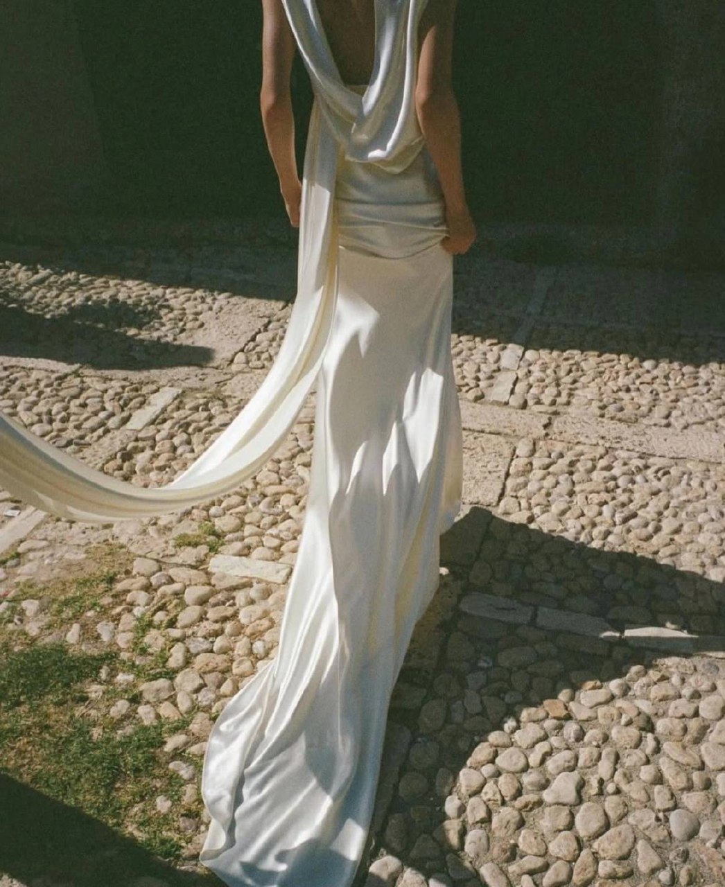 Многое зависит и от материала – атлас наиболее выигрышно смотрится в кипенно-белом тоне, в то время как нежным, летящим тканям очень идут приглушённые оттенки голубого и розового.