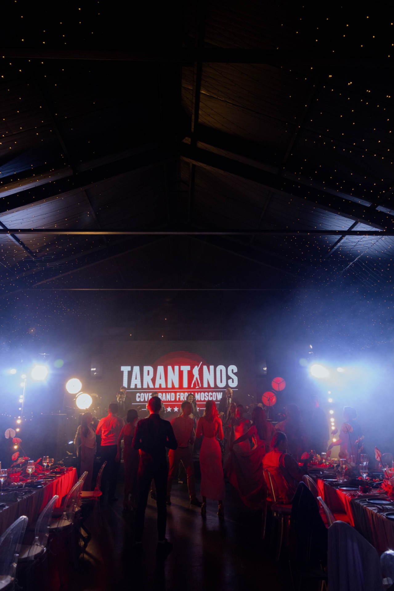 Наш первый танец в лёгком дыме и лазерных лучах напоминал лунный свет на воде. А ближе к вечеру все танцевали босиком или в тапочках, которые мы приготовили, под зажигательную музыку кавер-группы «Тарантинос».