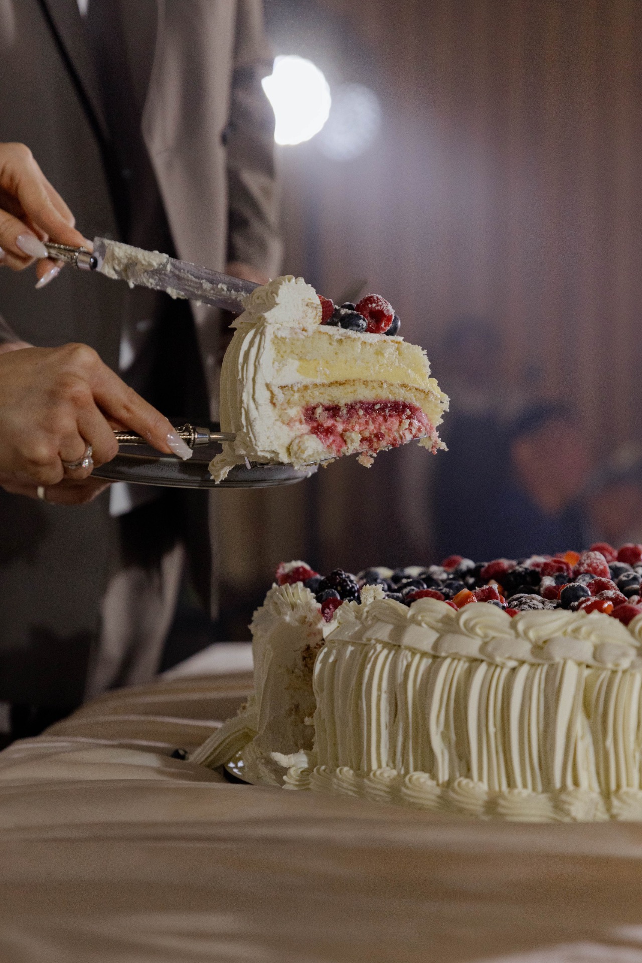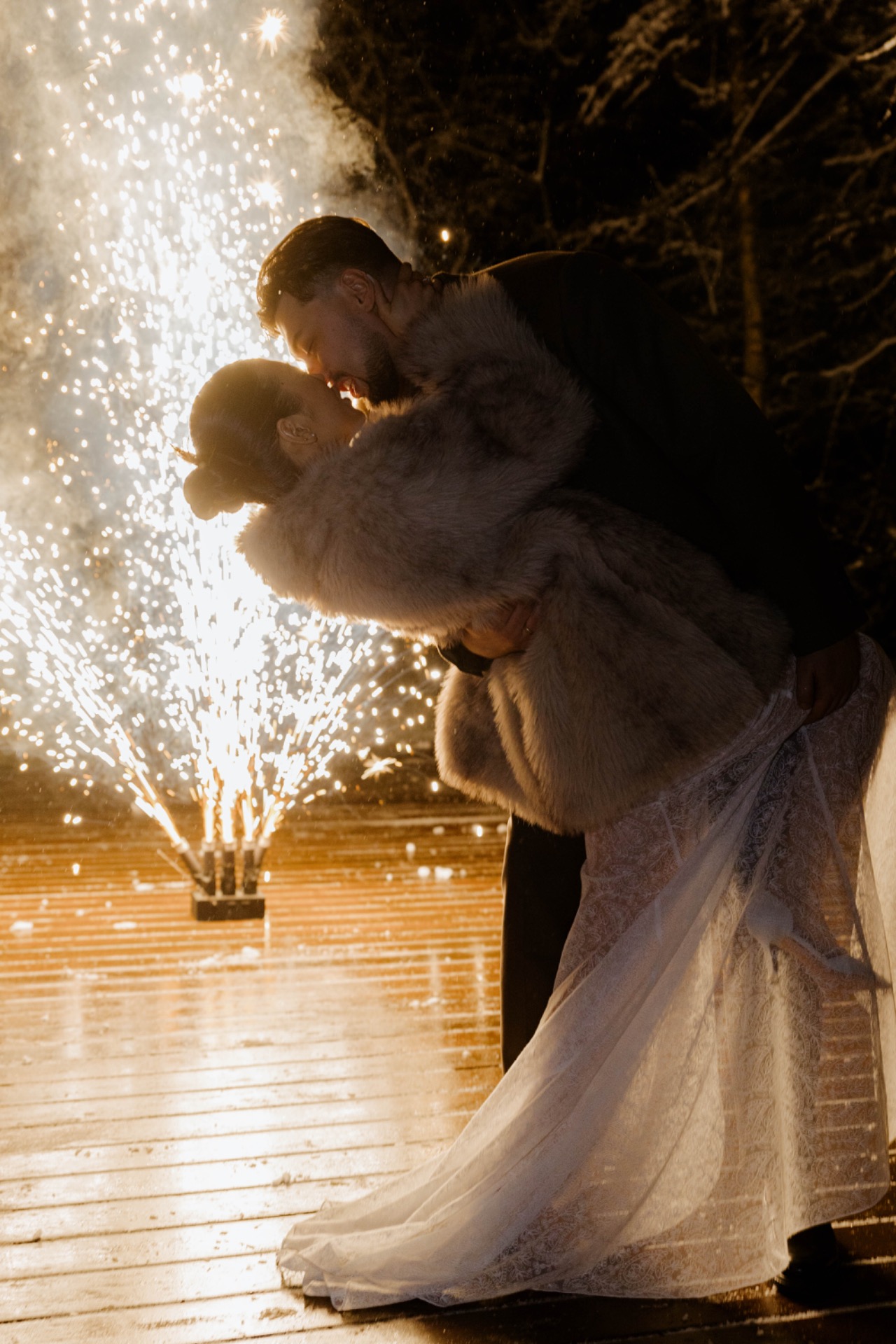В оформлении не было ничего зимнего. Только песочные ткани, золотистые отражения, коралловые оттенки — атмосфера, где хочется дышать глубже. Столы украшал натуральный песчаник, а в зоне церемонии мы шли по настоящему песку, и это меняло ощущение пространства.