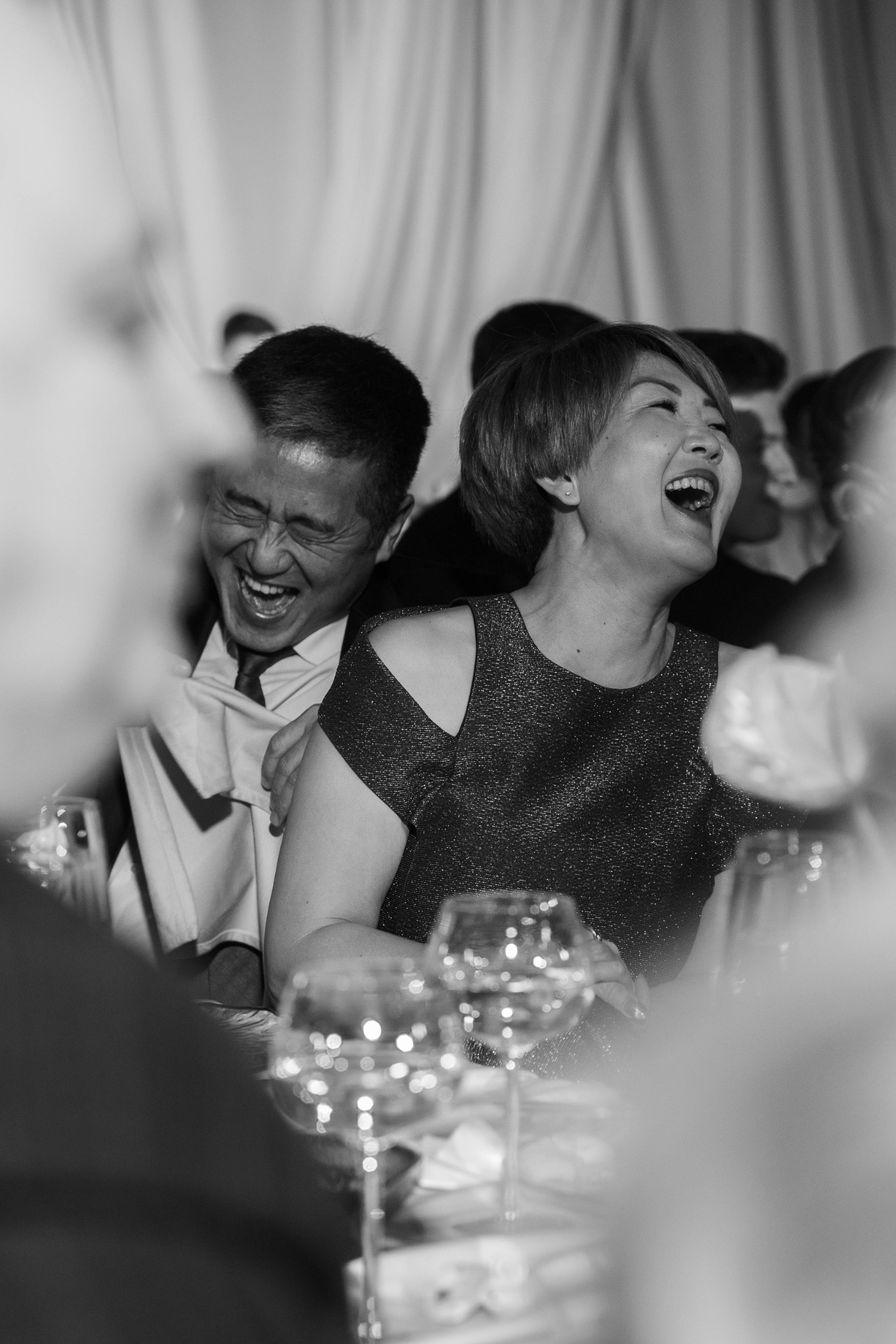 Мы полностью скрыли зиму и завесили одну стену драпированной тканью песочного цвета. Вместо классических карточек рассадки мы с Женей изготовили их из устриц, которые сами отмыли, почистили и расписали у каллиграфов.