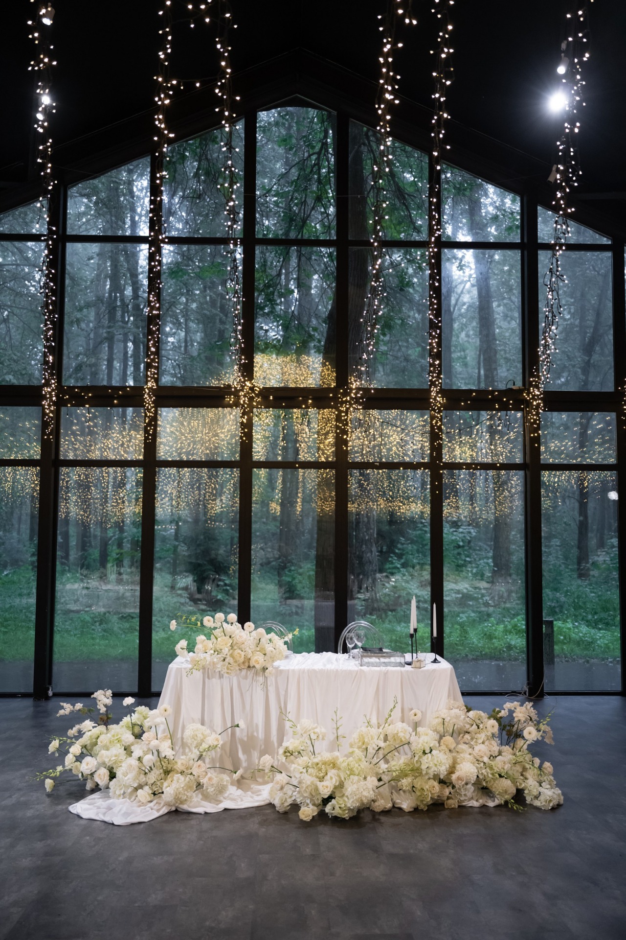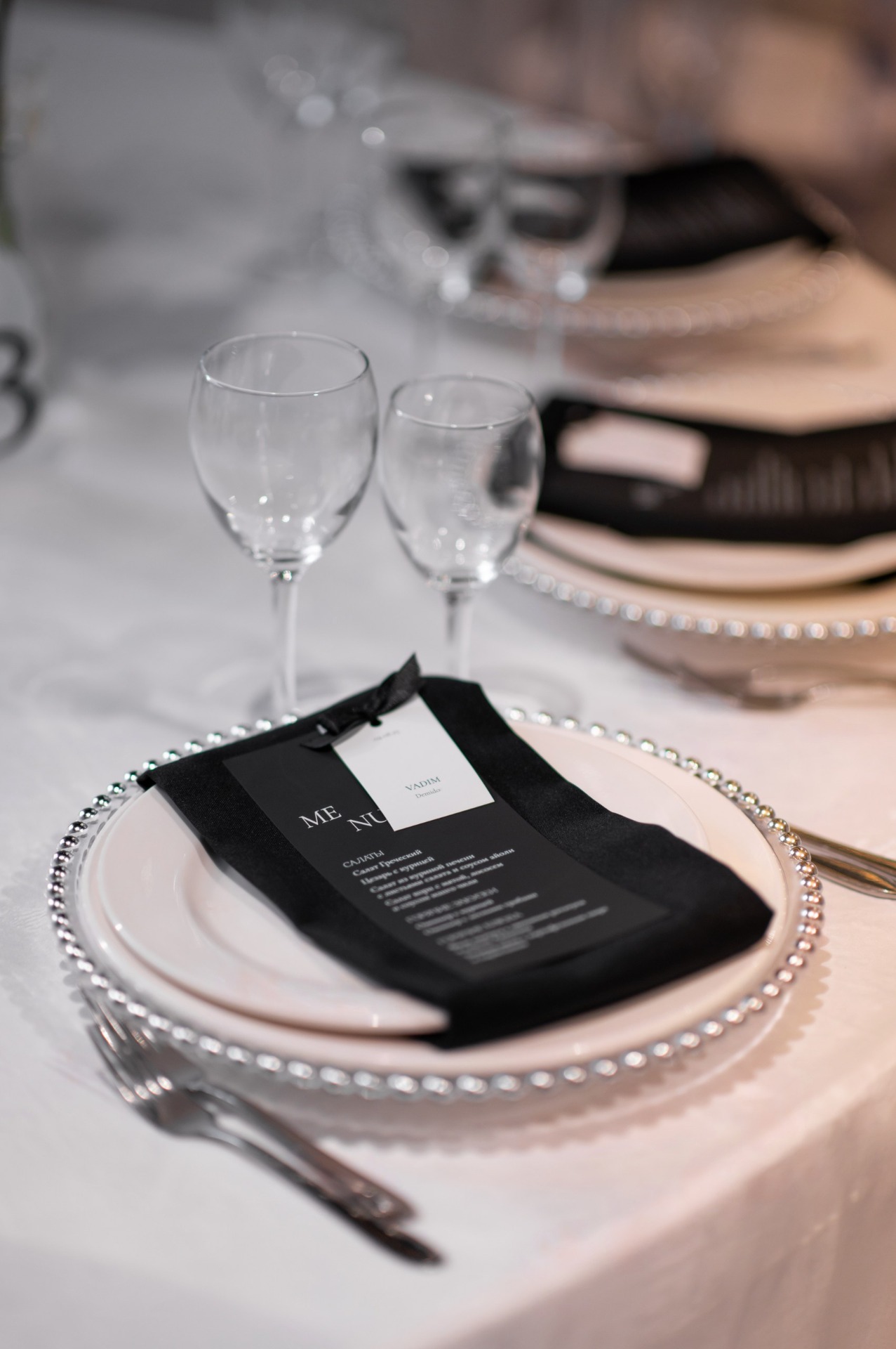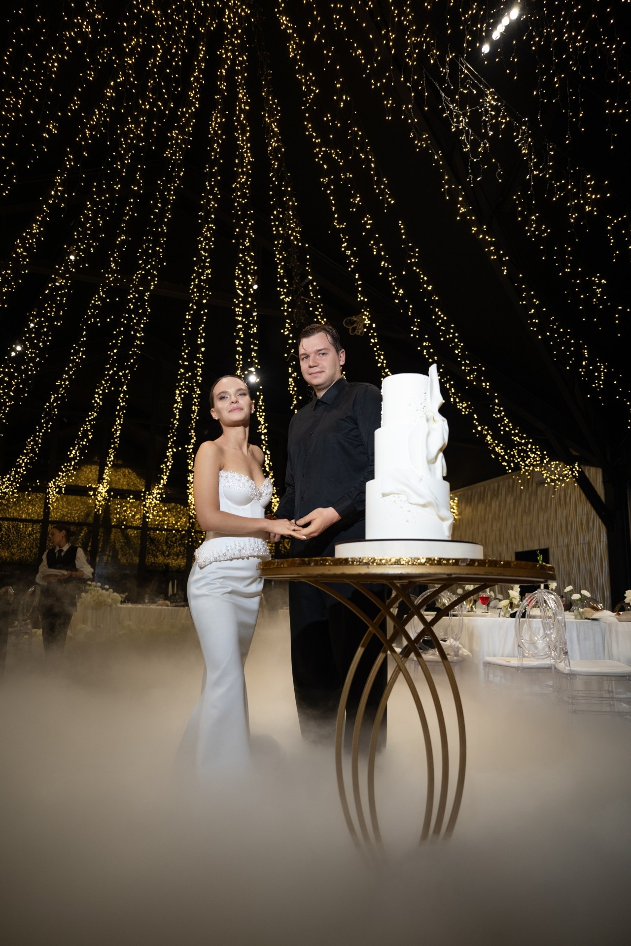 Палитра праздника была выбрана исходя из концепции двух противоположностей, которую нам предложили наши организаторы. Поэтому вся свадьба была чёрно-белой, с небольшими акцентами в виде зелени и цветов.