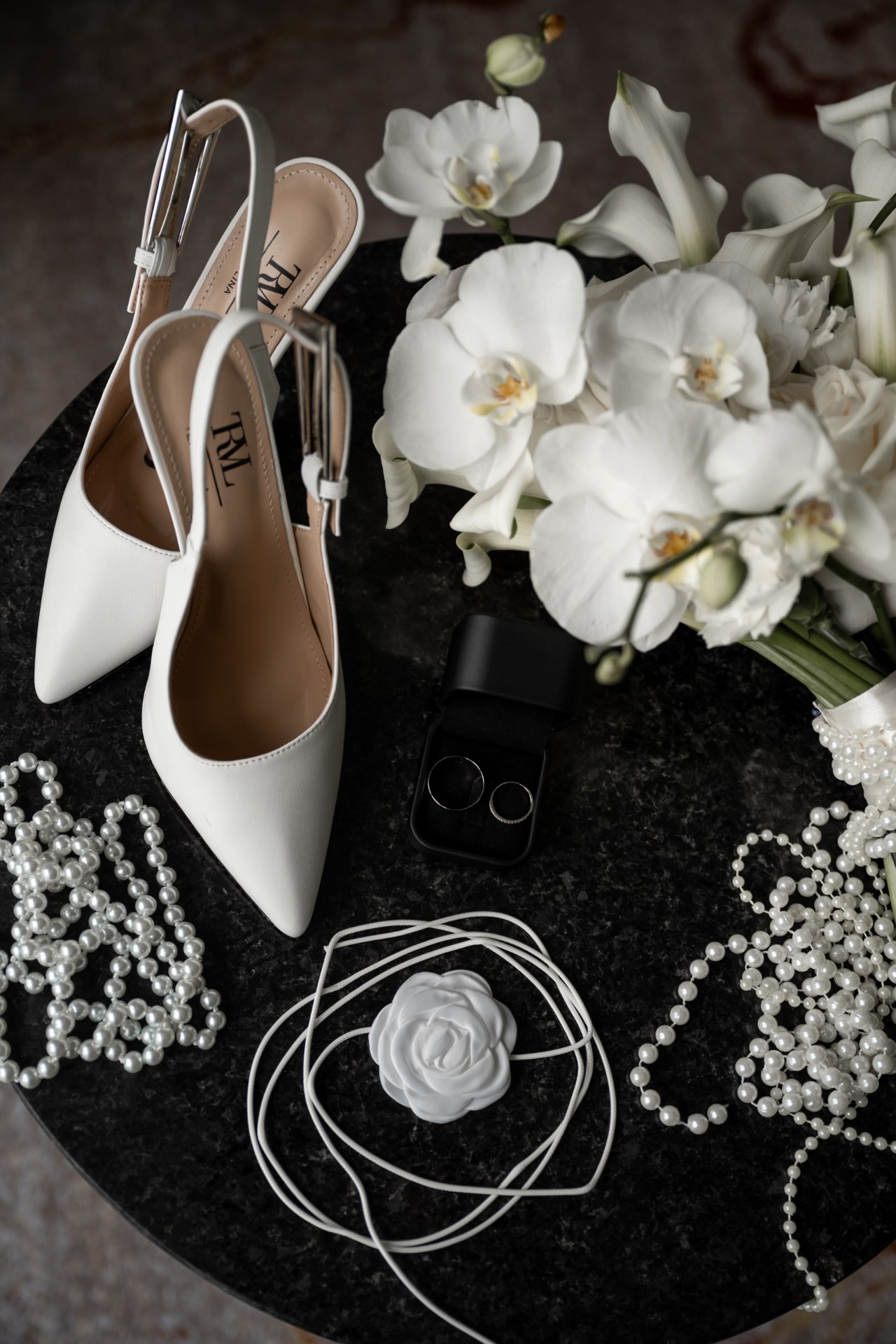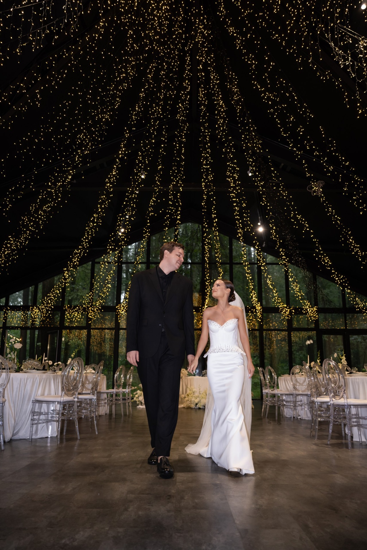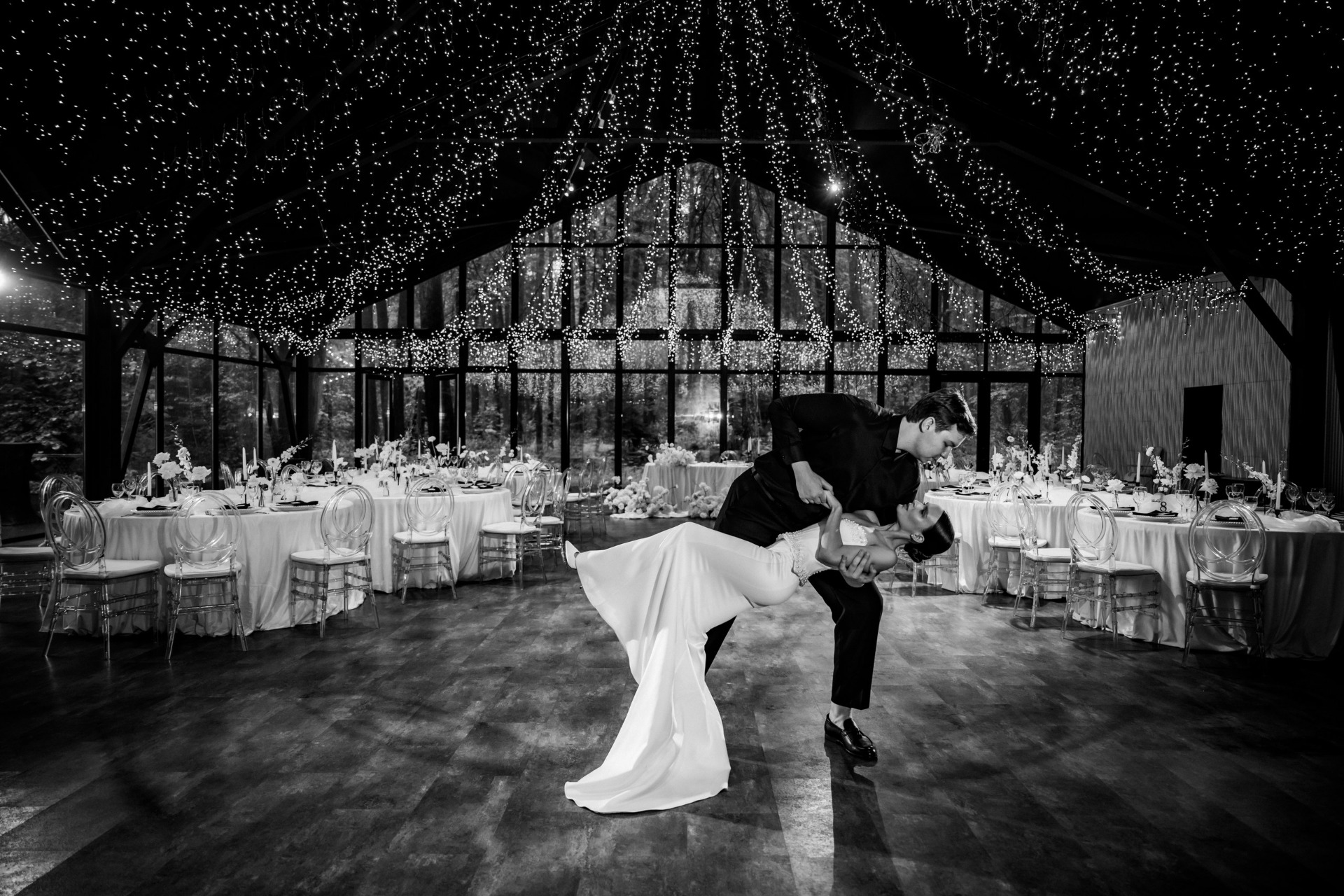 Палитра праздника была выбрана исходя из концепции двух противоположностей, которую нам предложили наши организаторы. Поэтому вся свадьба была чёрно-белой, с небольшими акцентами в виде зелени и цветов.