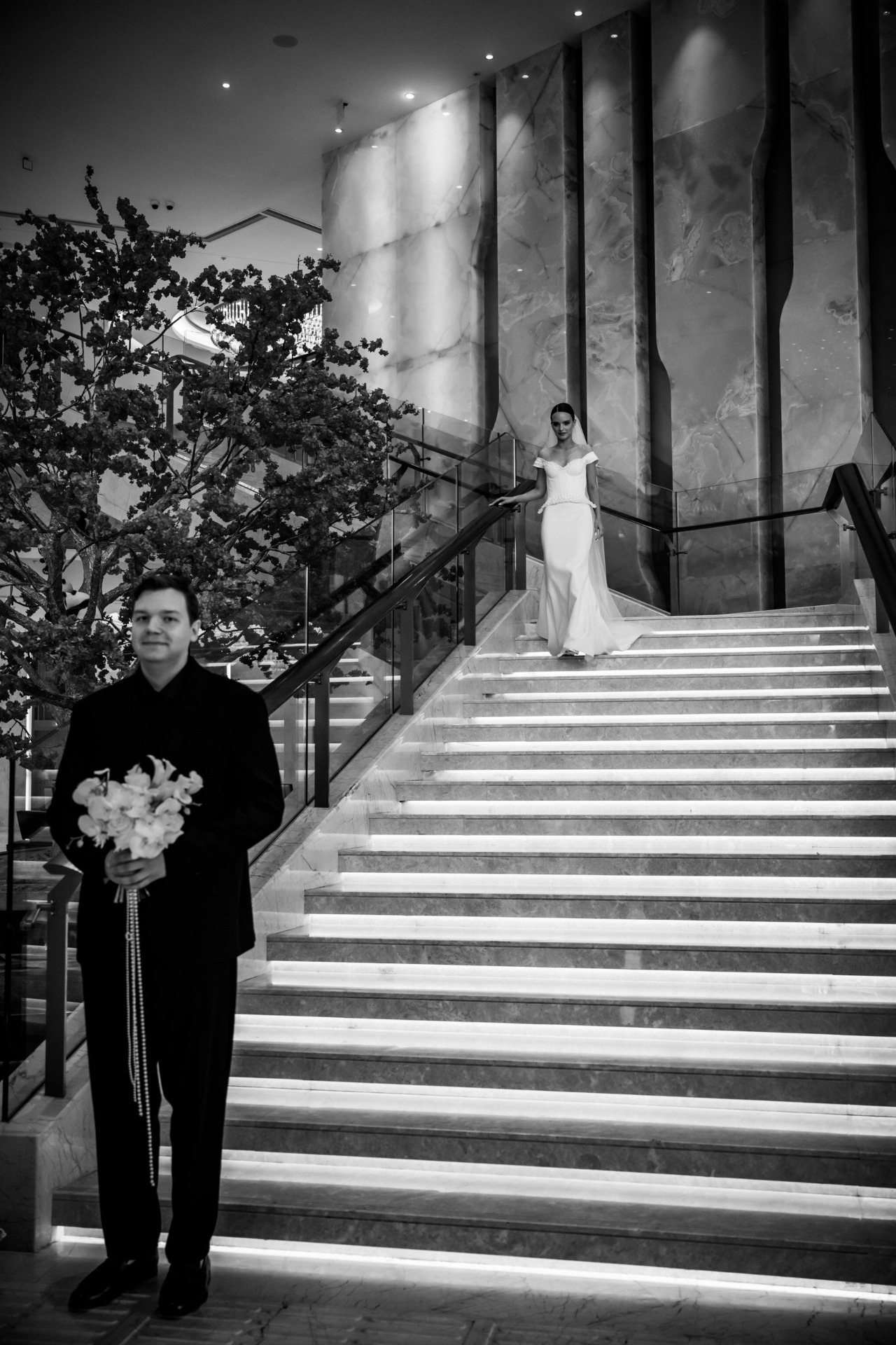 После утренних сборов мы провели первую встречу в фойе отеля, на которой Егор впервые увидел меня в свадебном наряде. Это был один из самых трогательных моментов дня, во время которого мы чуть не лишились моего макияжа.