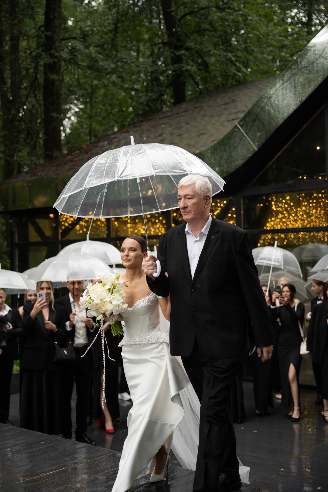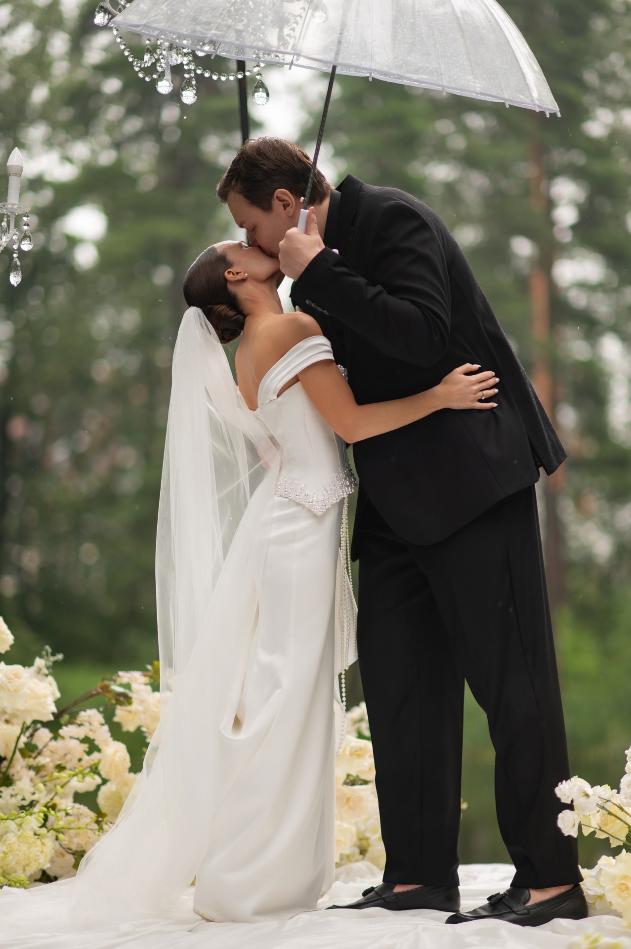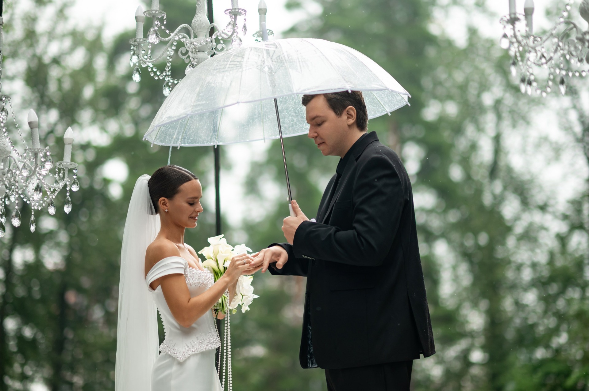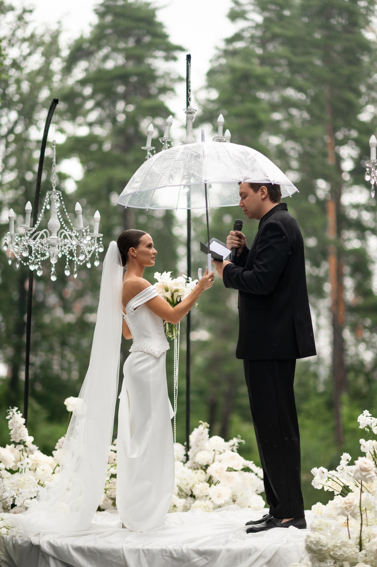 Перед самой церемонией дождь ненадолго прекратился. Это был самый трогательный момент, в который мы чуть не расплакались до своих выходов. Ведущий создал для нас тёплую и незабываемую атмосферу, и в течение всей церемонии Егор плакал или пытался сдержать слёзы. В этот же момент я пыталась сдержать свои.