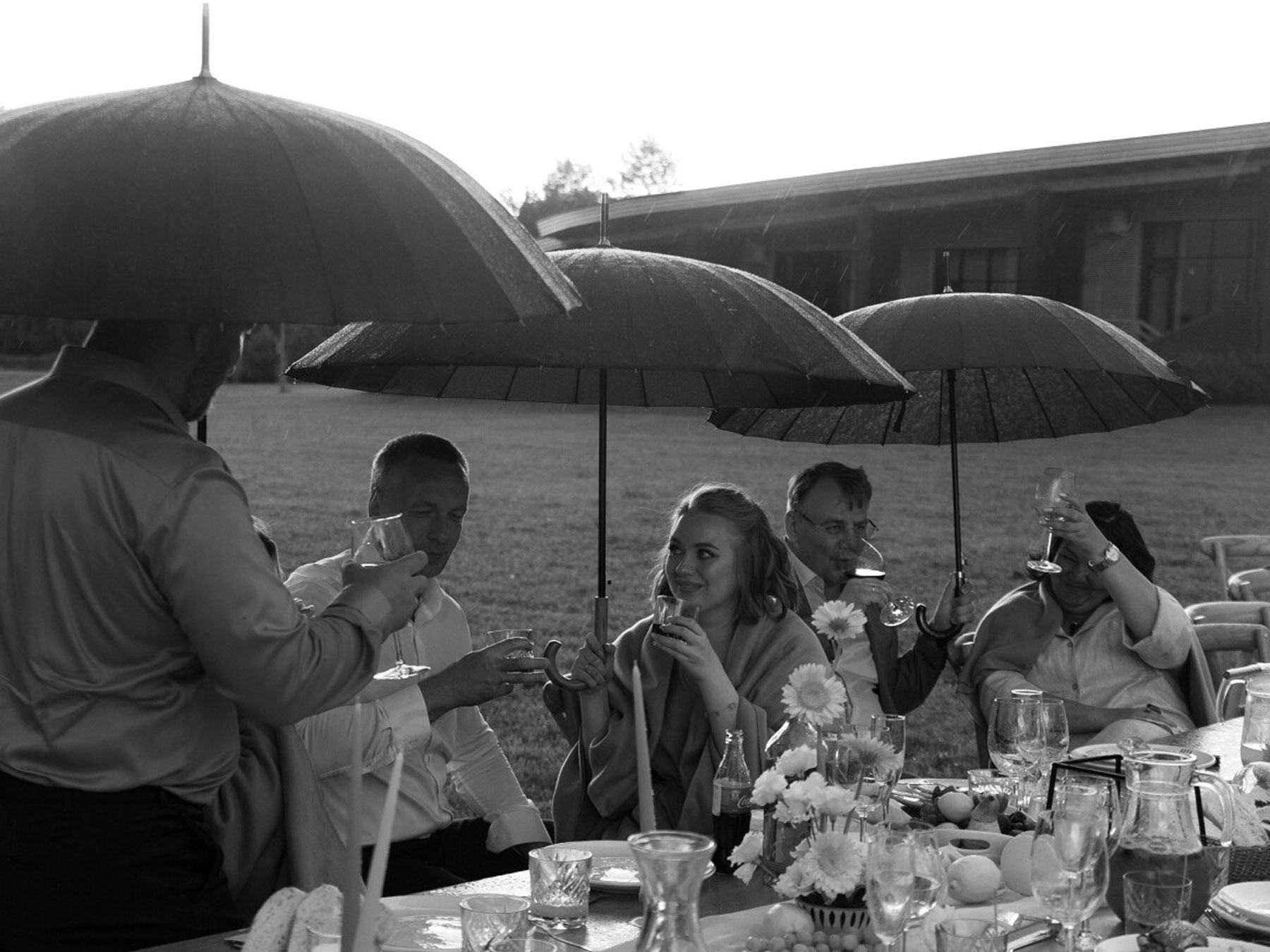 Но природа решила добавить собственный штрих: небо вдруг потемнело, и начался грозовой дождь.