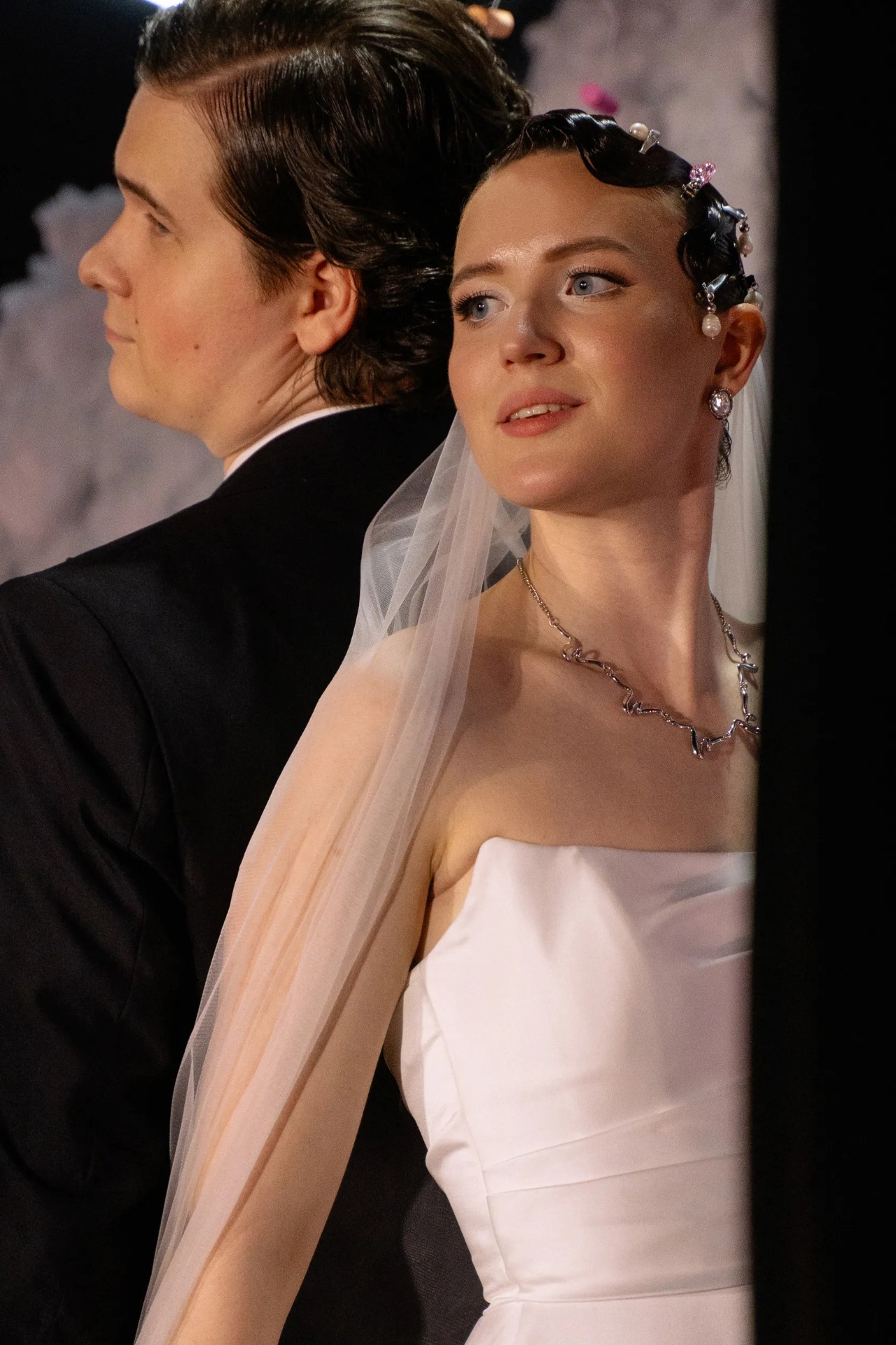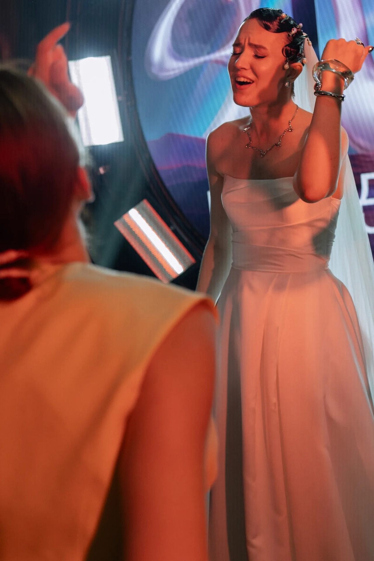 В итоге всё получилось гармонично: классическая женственность моего платья сочеталась с неожиданными деталями, которые подчёркивали абсурдность и яркость всей свадьбы.