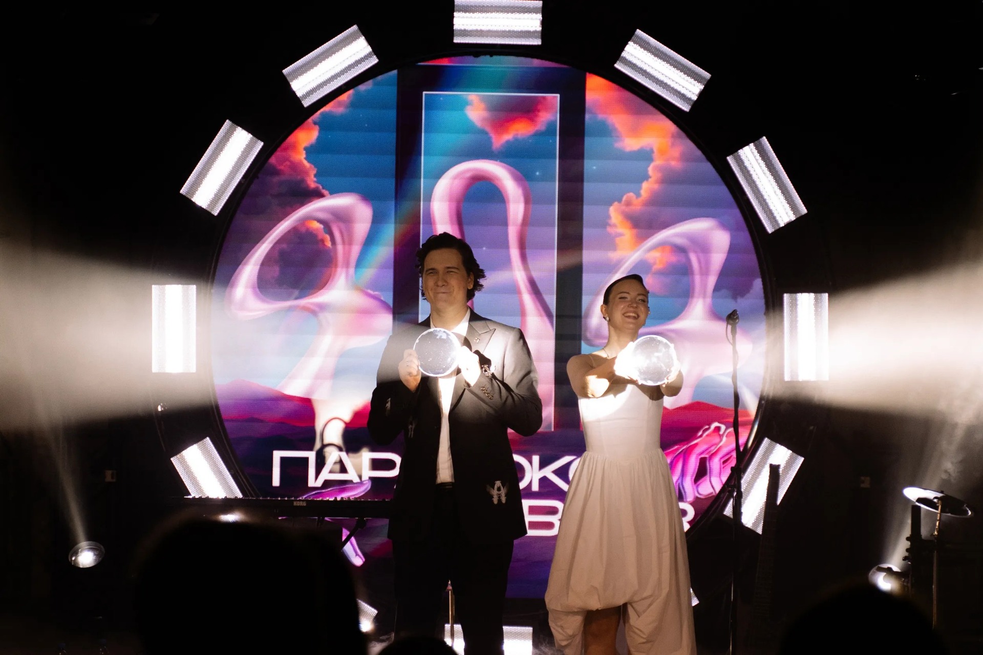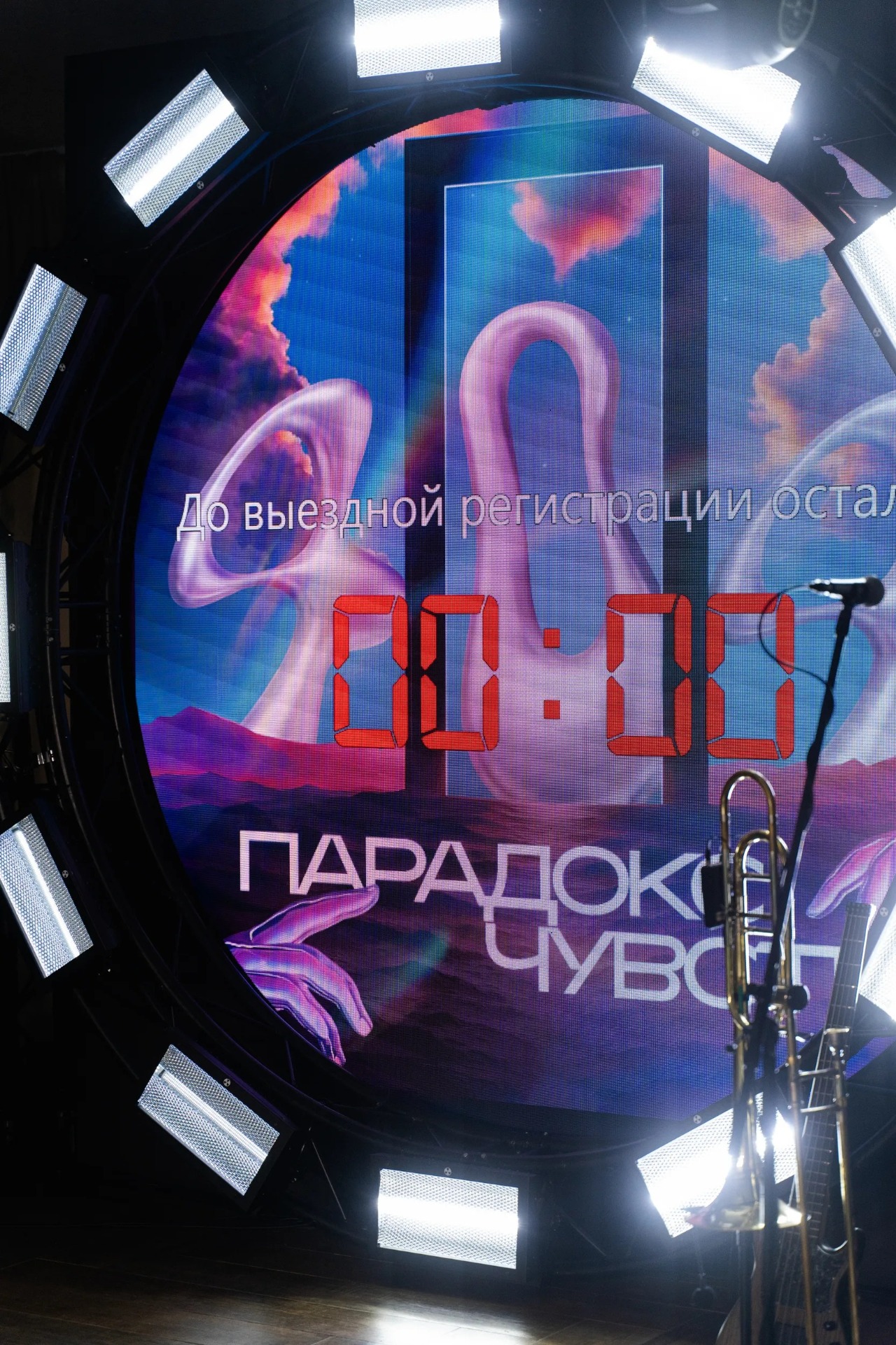 В зале также был необычный экран в формате «всевидящего ока», который воспринимался скорее как самостоятельная декорация, чем как технический элемент: он наблюдал за всем происходящим и добавлял ещё один слой сюрреальности.