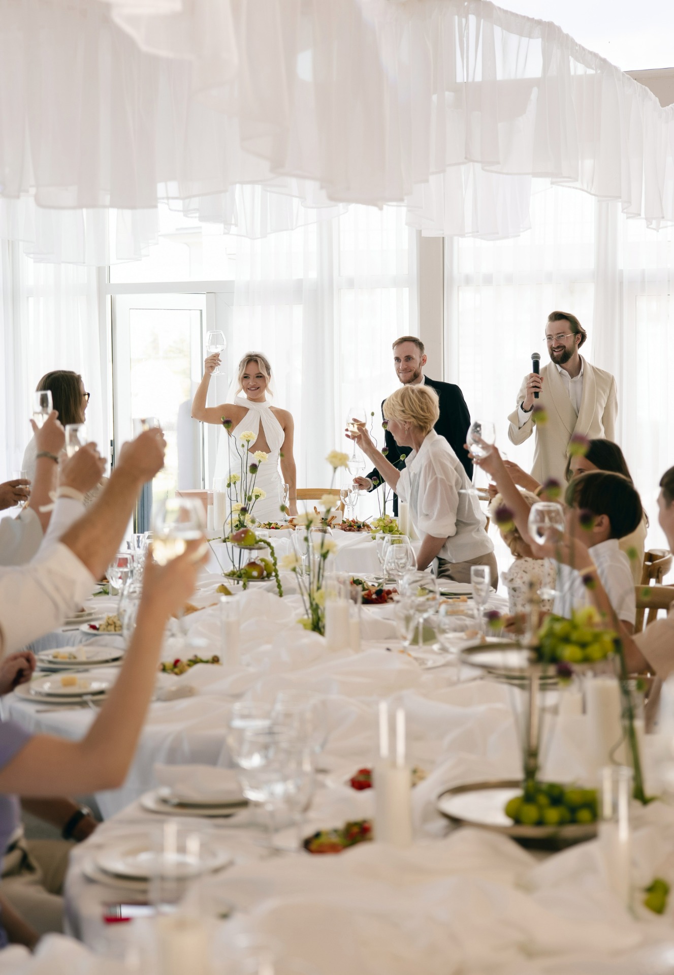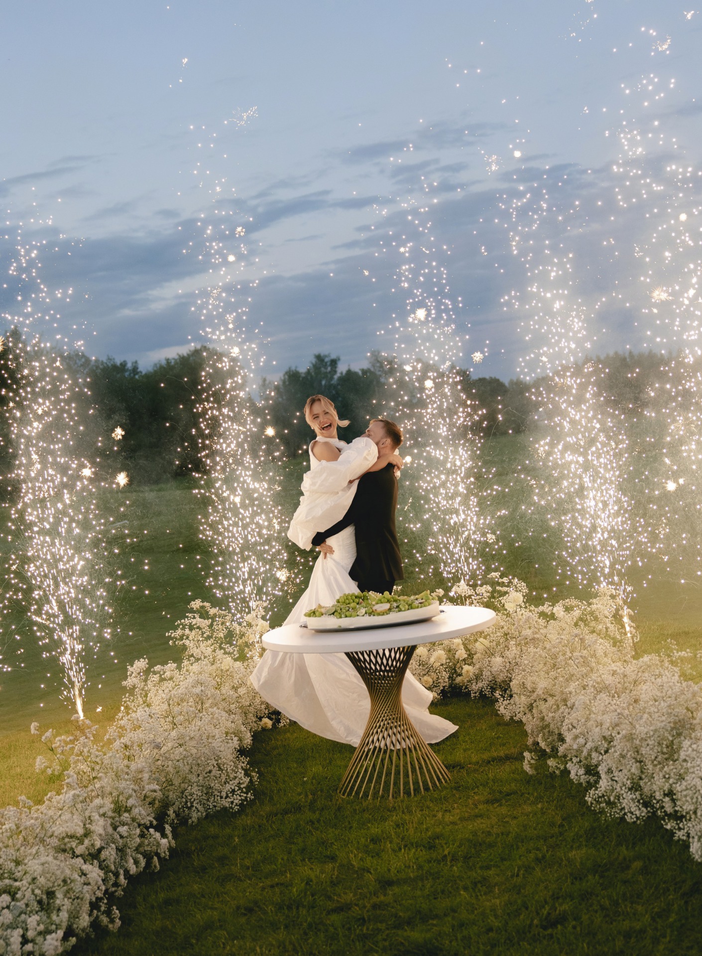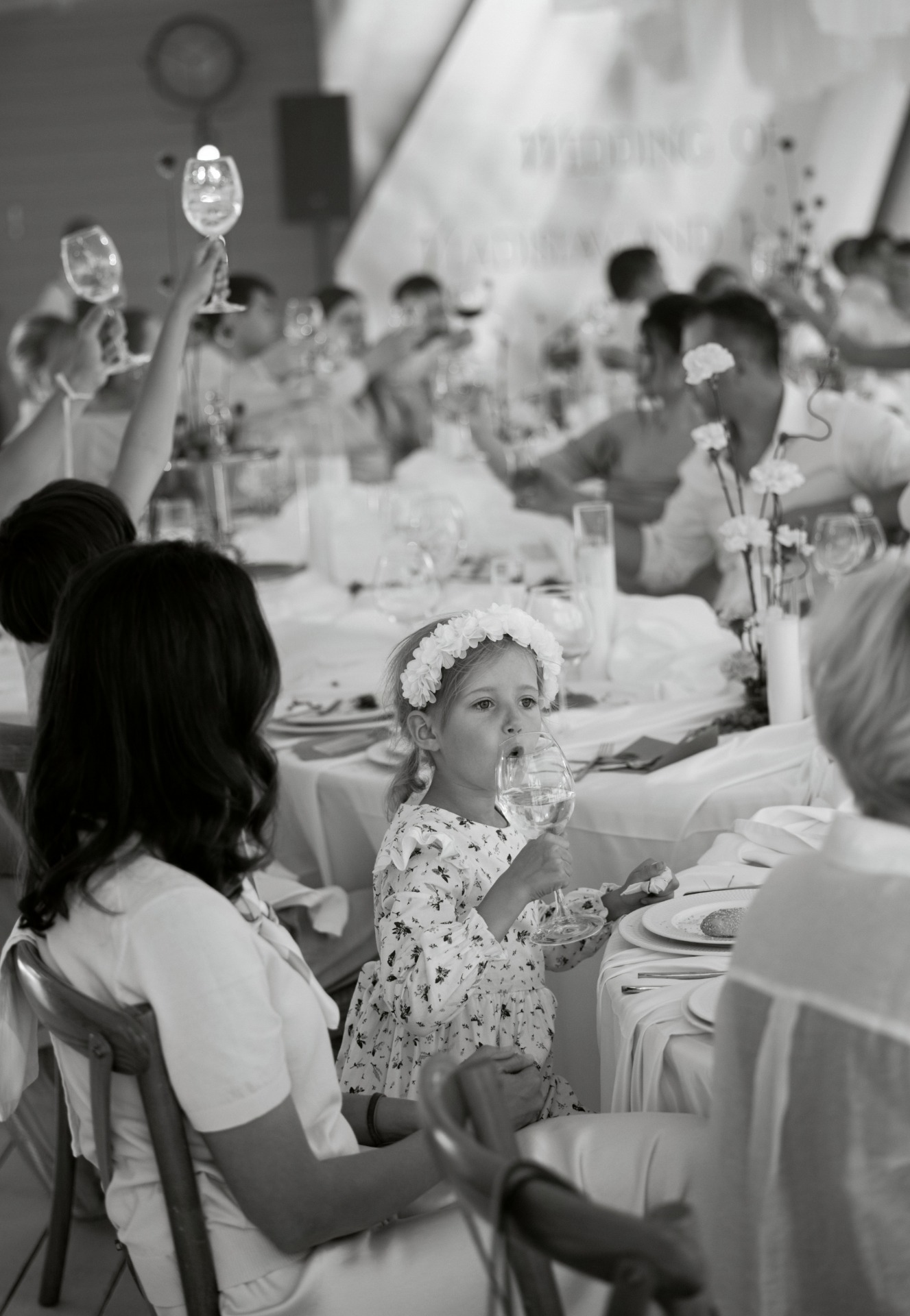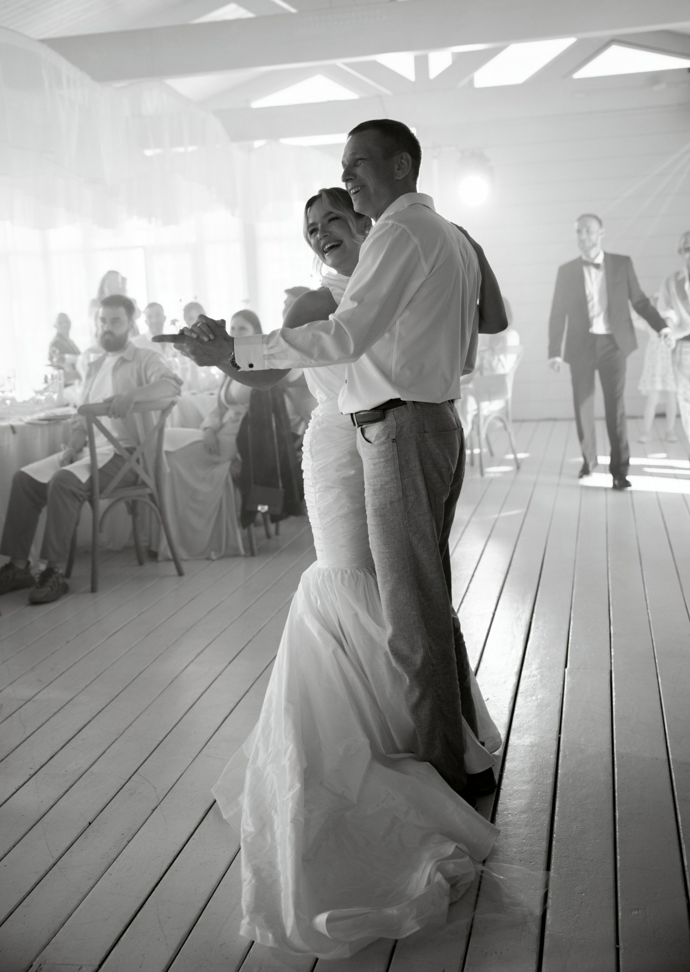 Я точно знала, что хочу свадьбу в стиле old money, которая отражала бы нашу историю. Мы с Владом часто заключаем пари и спорим. Например, однажды у нас был спор, кто сможет за один месяц научиться стоять в планке на протяжении 7 минут. И я выиграла. Так на свет появилась концепция «Пари на всю жизнь». Также в качестве изюминки нашей свадьбы мы выбрали небольшие соревнования между командами жениха и невесты. Проигравшая команда должна была исполнить мечту победителя. Основной активностью для наших гостей стал гольф: мы поделились на команды и соревновались с азартом, как дети. Играли все, даже бабушки.