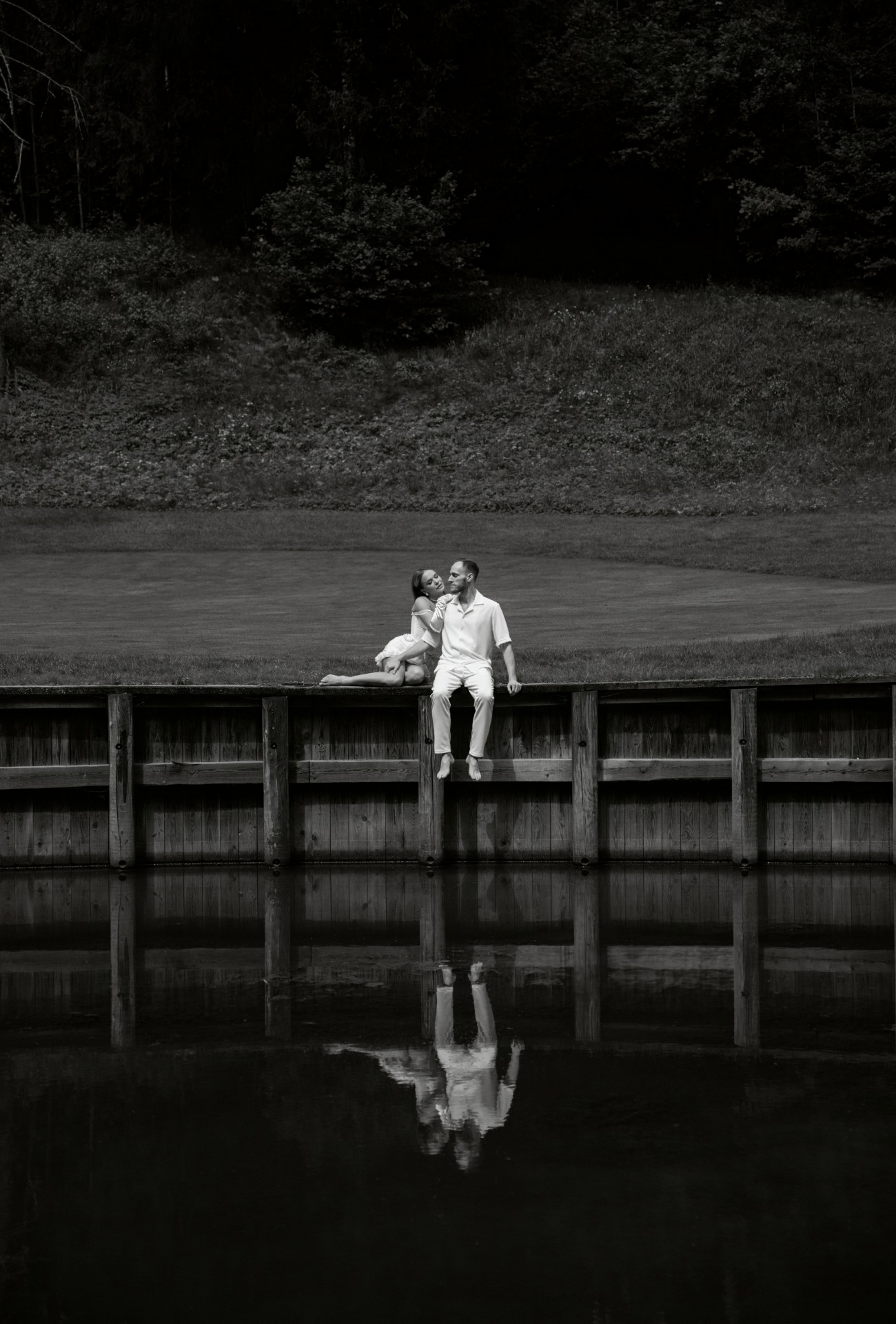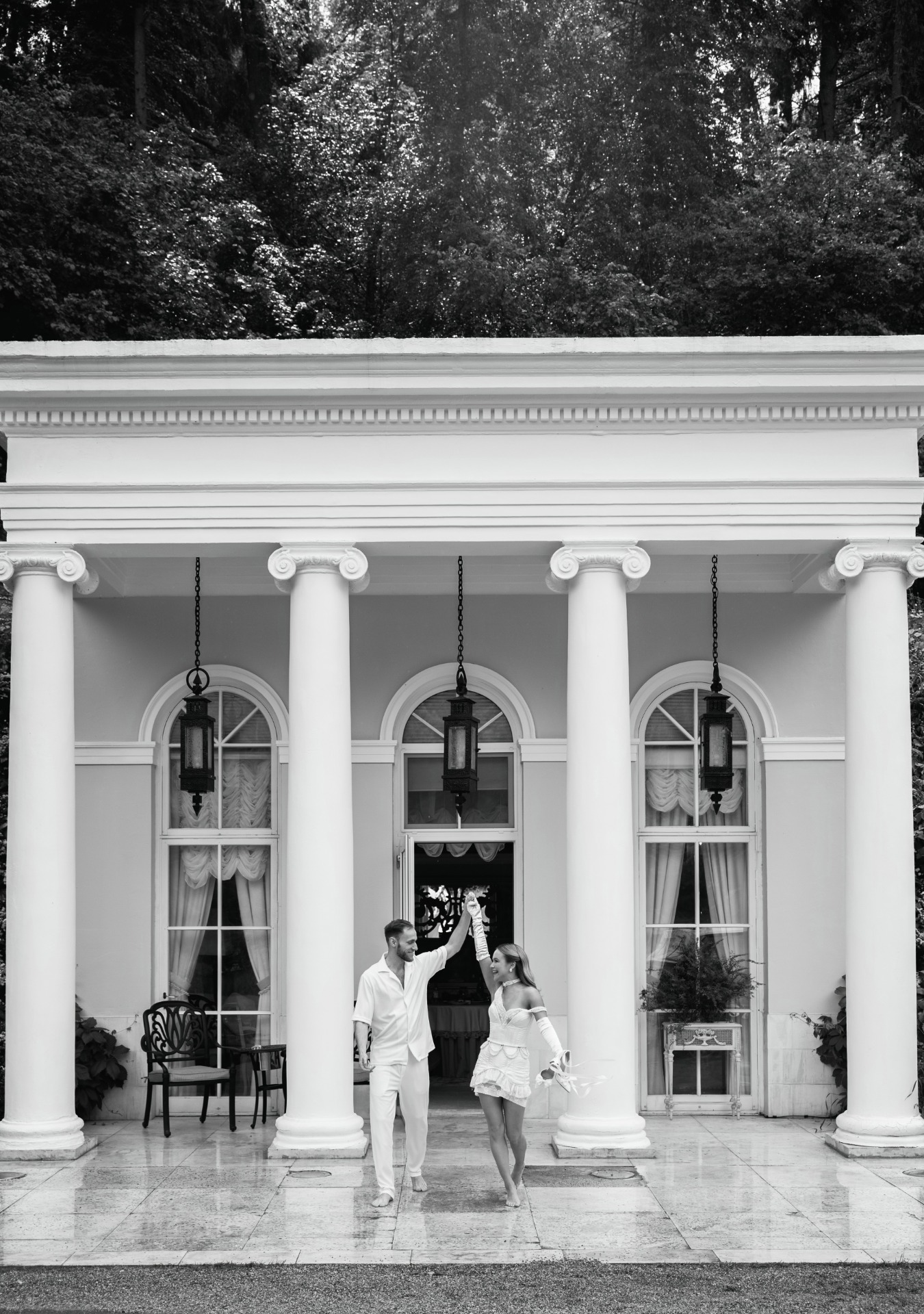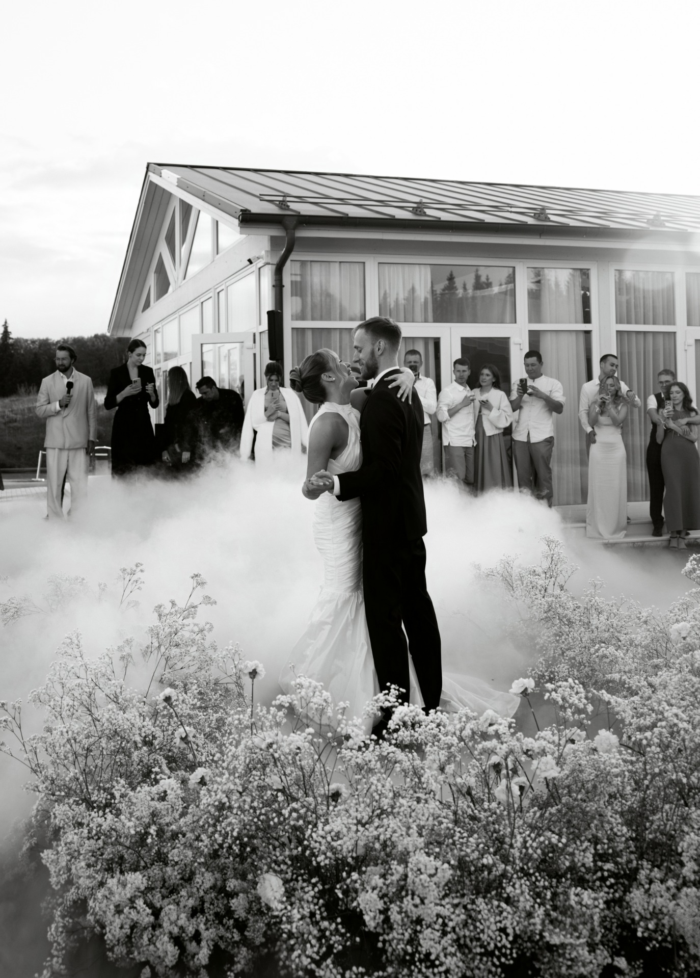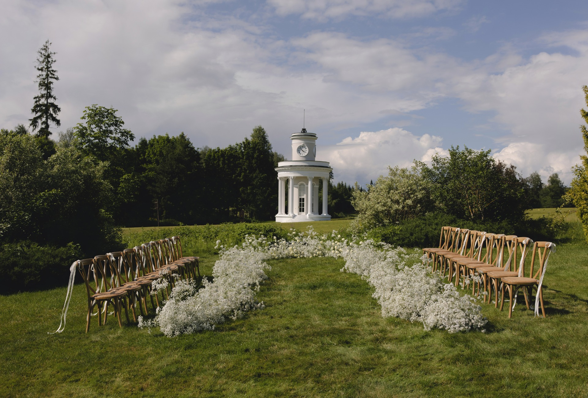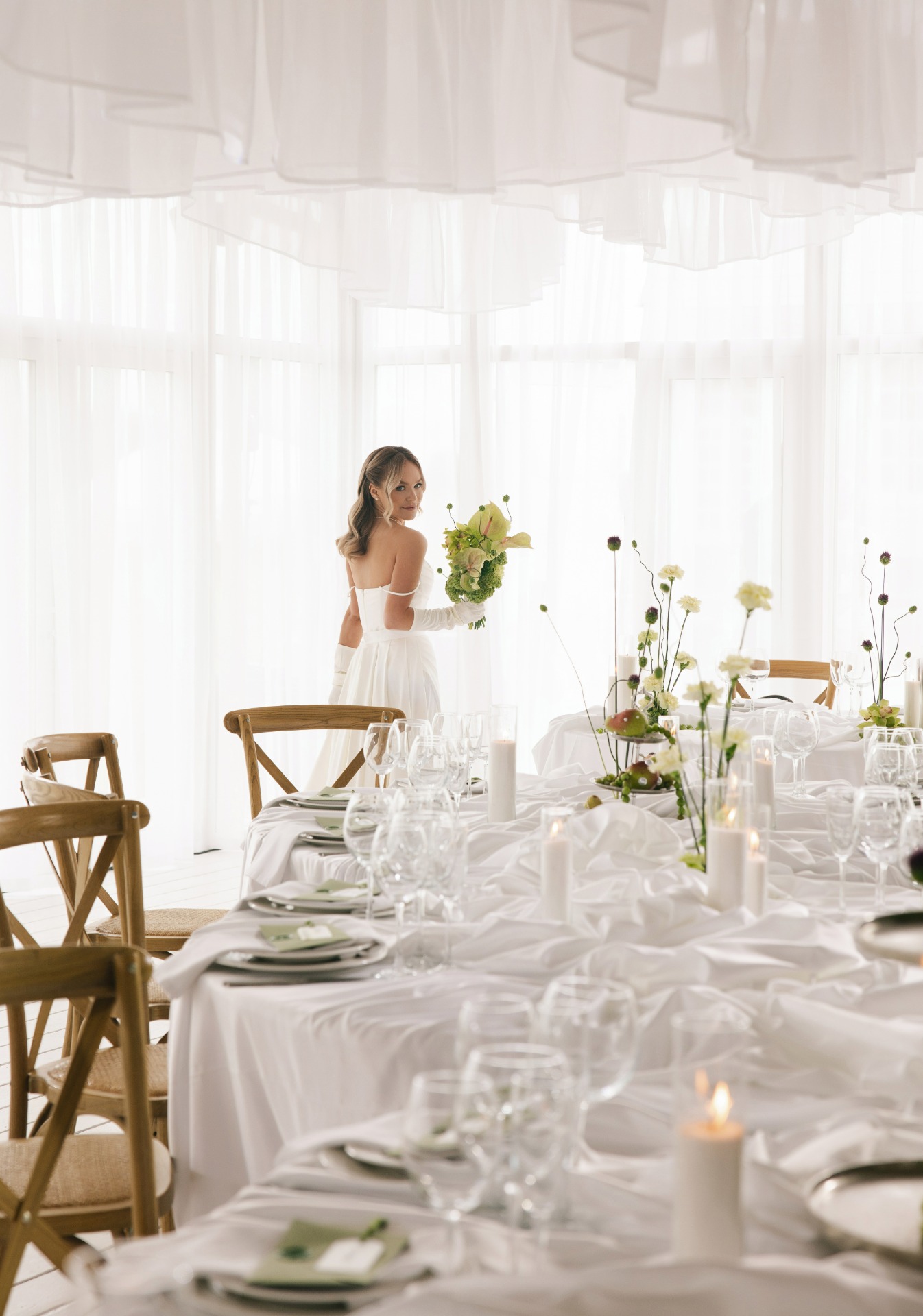 Я точно знала, что хочу свадьбу в стиле old money, которая отражала бы нашу историю. Мы с Владом часто заключаем пари и спорим. Например, однажды у нас был спор, кто сможет за один месяц научиться стоять в планке на протяжении 7 минут. И я выиграла. Так на свет появилась концепция «Пари на всю жизнь». Также в качестве изюминки нашей свадьбы мы выбрали небольшие соревнования между командами жениха и невесты. Проигравшая команда должна была исполнить мечту победителя. Основной активностью для наших гостей стал гольф: мы поделились на команды и соревновались с азартом, как дети. Играли все, даже бабушки.