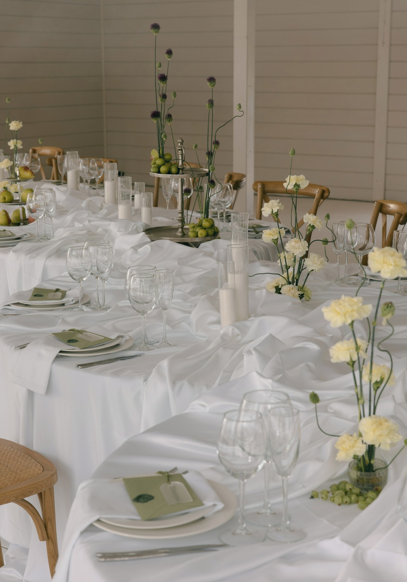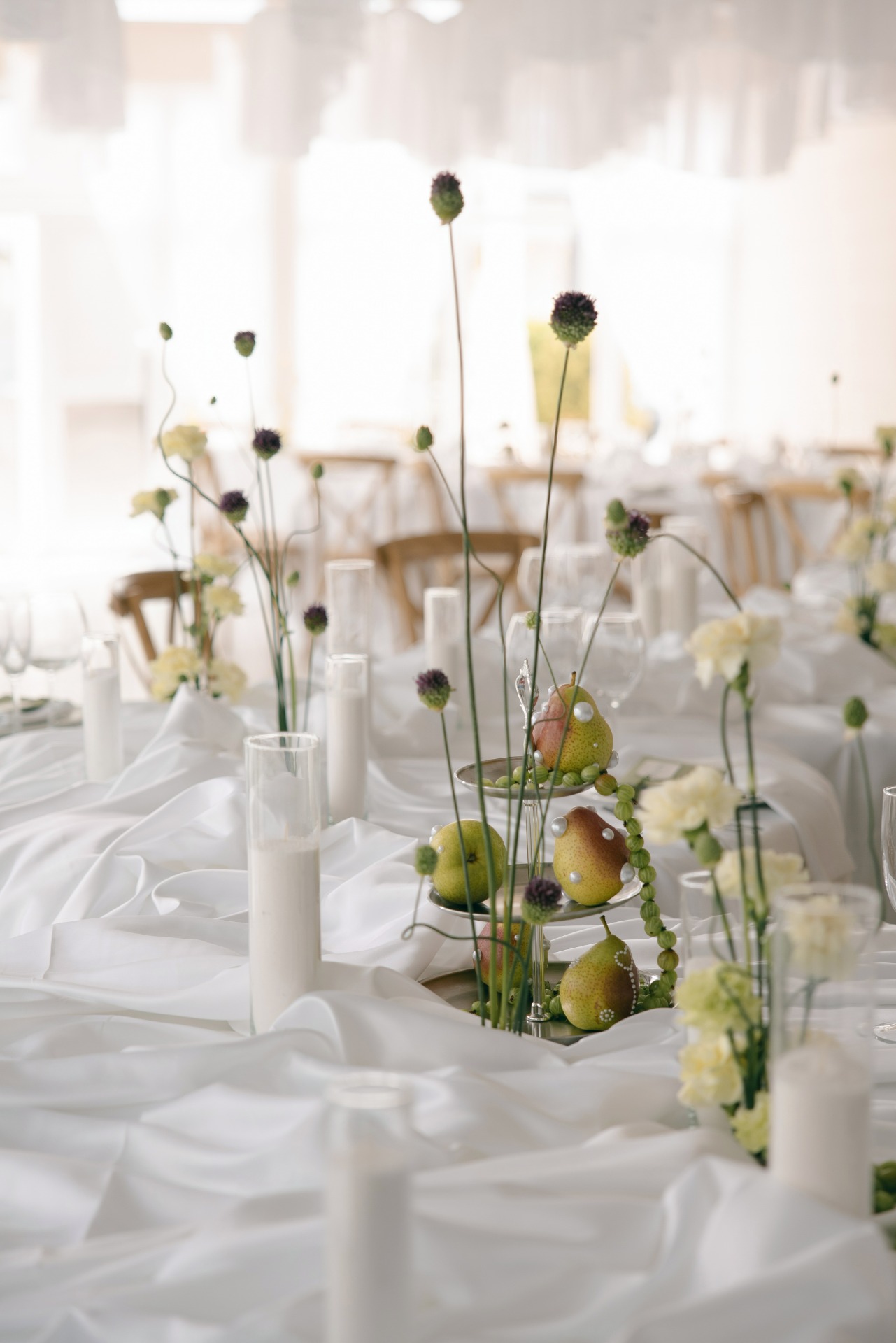 Я хотела, чтобы декор был воздушным, лаконичным и простым. В качестве основного цвета я выбрала зелёный. И даже букет был собран из зелёных цветов.