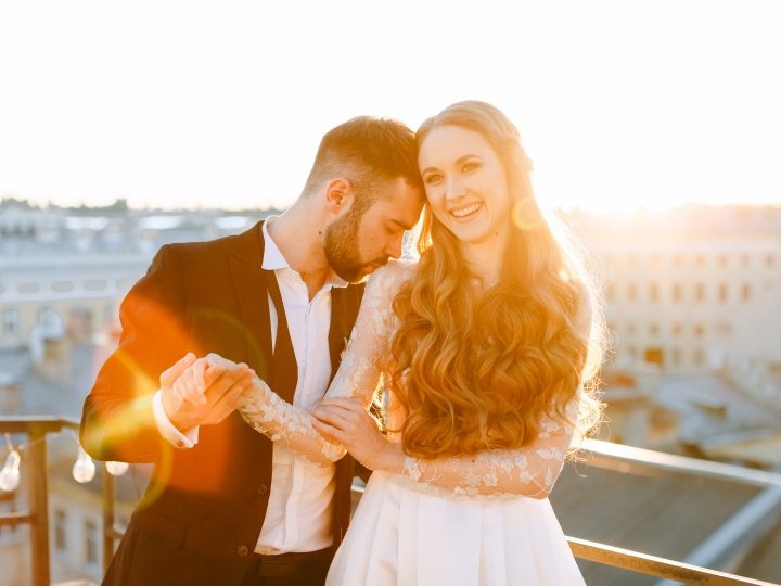 Для пары была придумана легенда: они сбежали со своей свадьбы в особняке, чтобы побыть вдвоем, и устроили пикник на парижской крыше в лучах заходящего солнца, а закончили свой праздничный день у той самой башни на набережной. Образ невесты сложился быстро — нам нужна была нежная парижанка, которая не побоится в своем свадебном платье залезть на крышу.