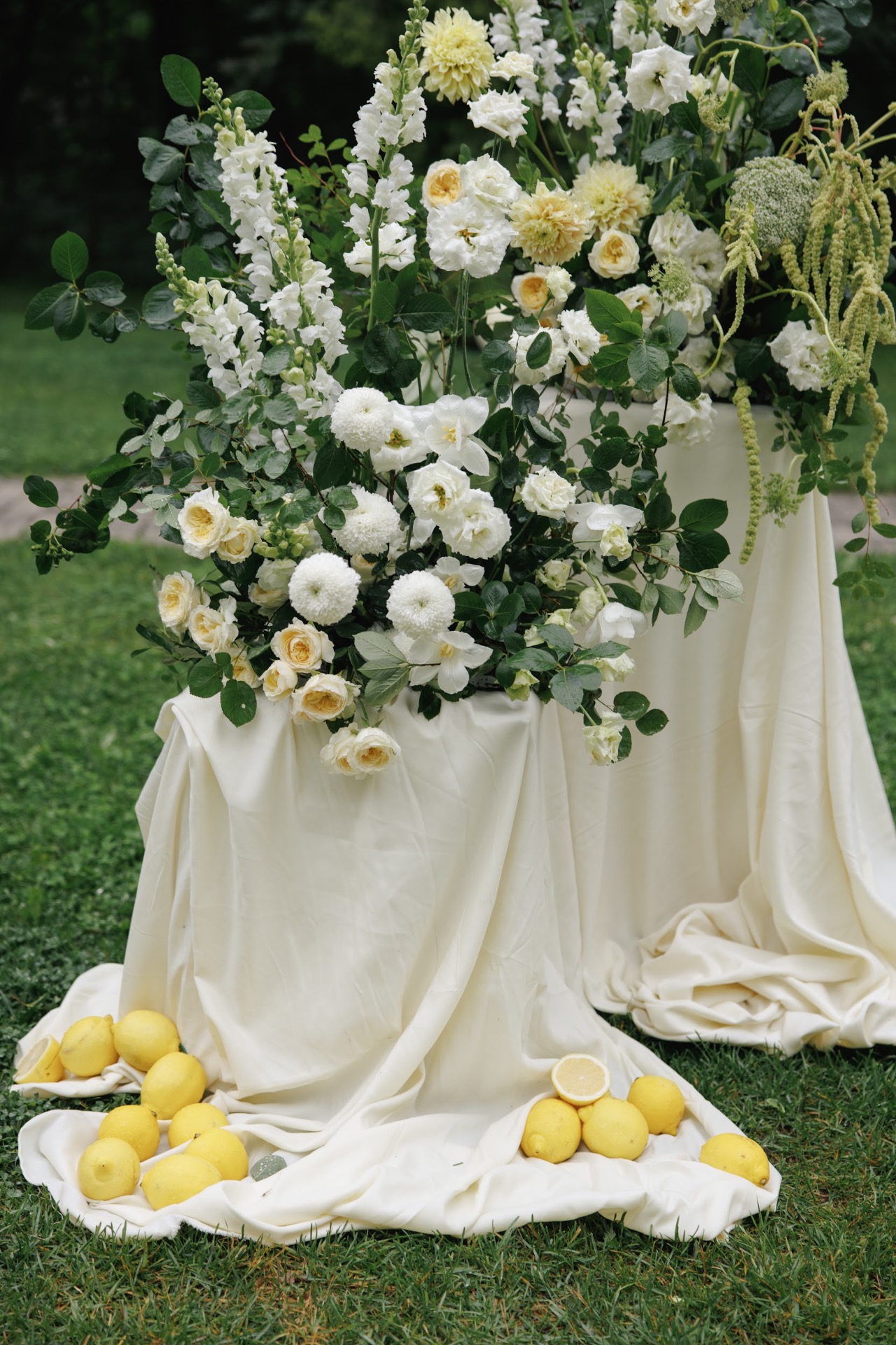 С декором помогали ребята из команды «Лужайка». Так как акцент был на зелёную природу, масштабного декора не требовалось. Поскольку мы с Антоном очень любим Италию, вдохновлялись подобными картинками на Пинтерест.