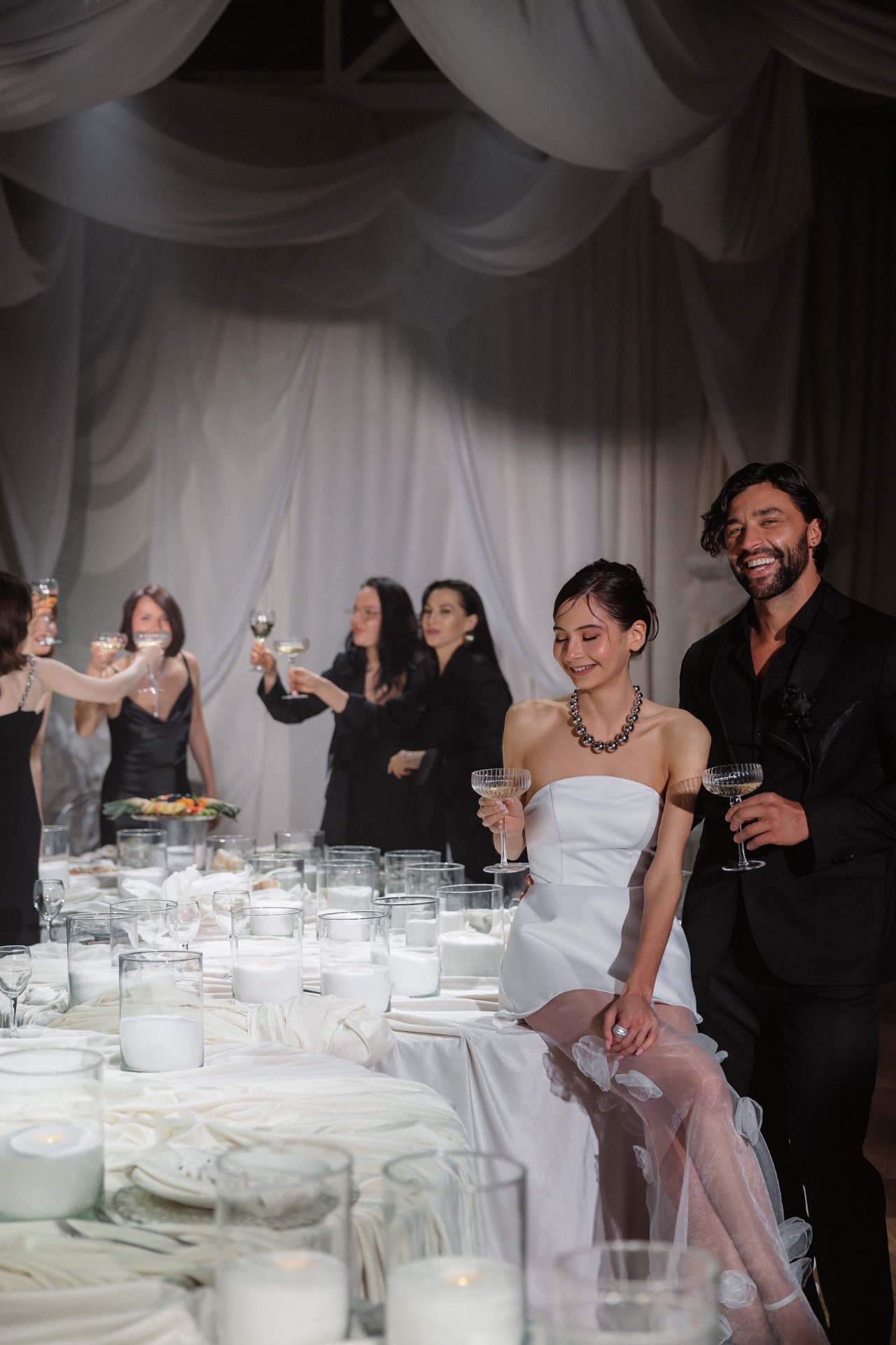 Чёрное и белое, твёрдое и мягкое, фактурные цветы и мягчайший шёлк, звон хрусталя и горящие свечи. Никаких полутонов — только wow-акценты, чтобы передать атмосферу красоты, любви и страсти.