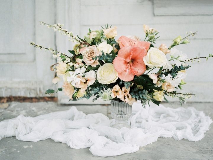 Чтобы подчеркнуть нежность образа, мы использовали пастельные оттенки кремового, бежевого и розового в декоре и нарядах, а также шелковые ленты и изящные украшения. Вместе с тем воздушное платье с необычной вышивкой подчеркивало легкость и утонченность нашей невесты. А концепцию пробуждающейся от зимнего сна природы идеально дополняли распустившиеся цветущие веточки прунуса в букете и цветочной композиции.