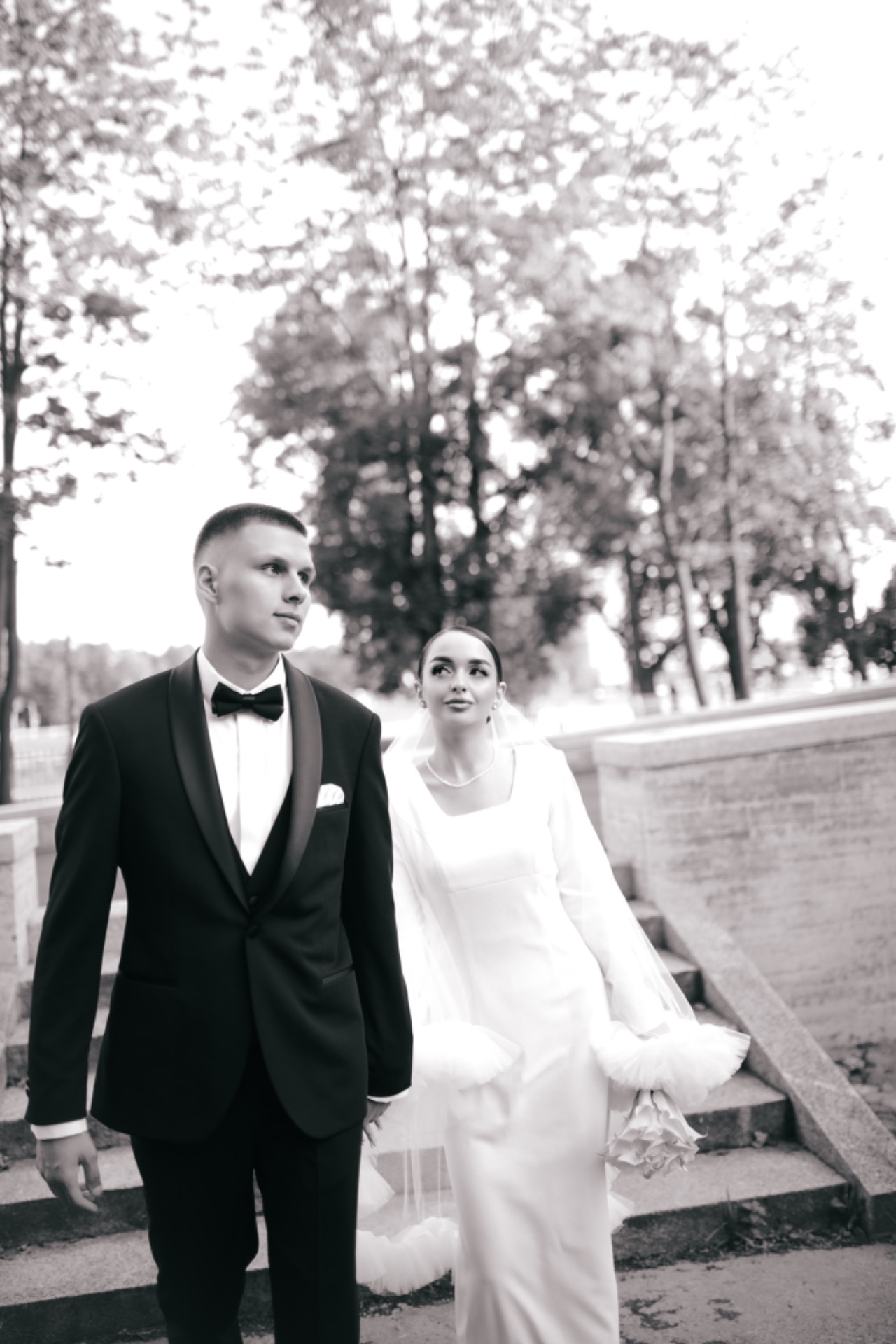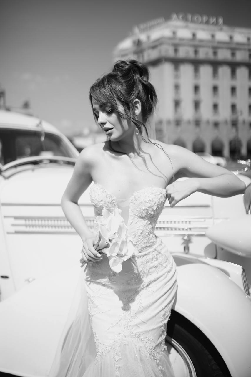 Концепция родилась сама собой: Петербург, дворцы, пышные платья, ретро-автомобиль и атмосфера, как в самых лучших книгах о любви. Вдохновляясь публикациями на Pinterest и статьями на Weddywood, мы определились с палитрой торжества. Туда попали такие оттенки, как шампань, пудровый розовый, оливковый, белый и чёрный.