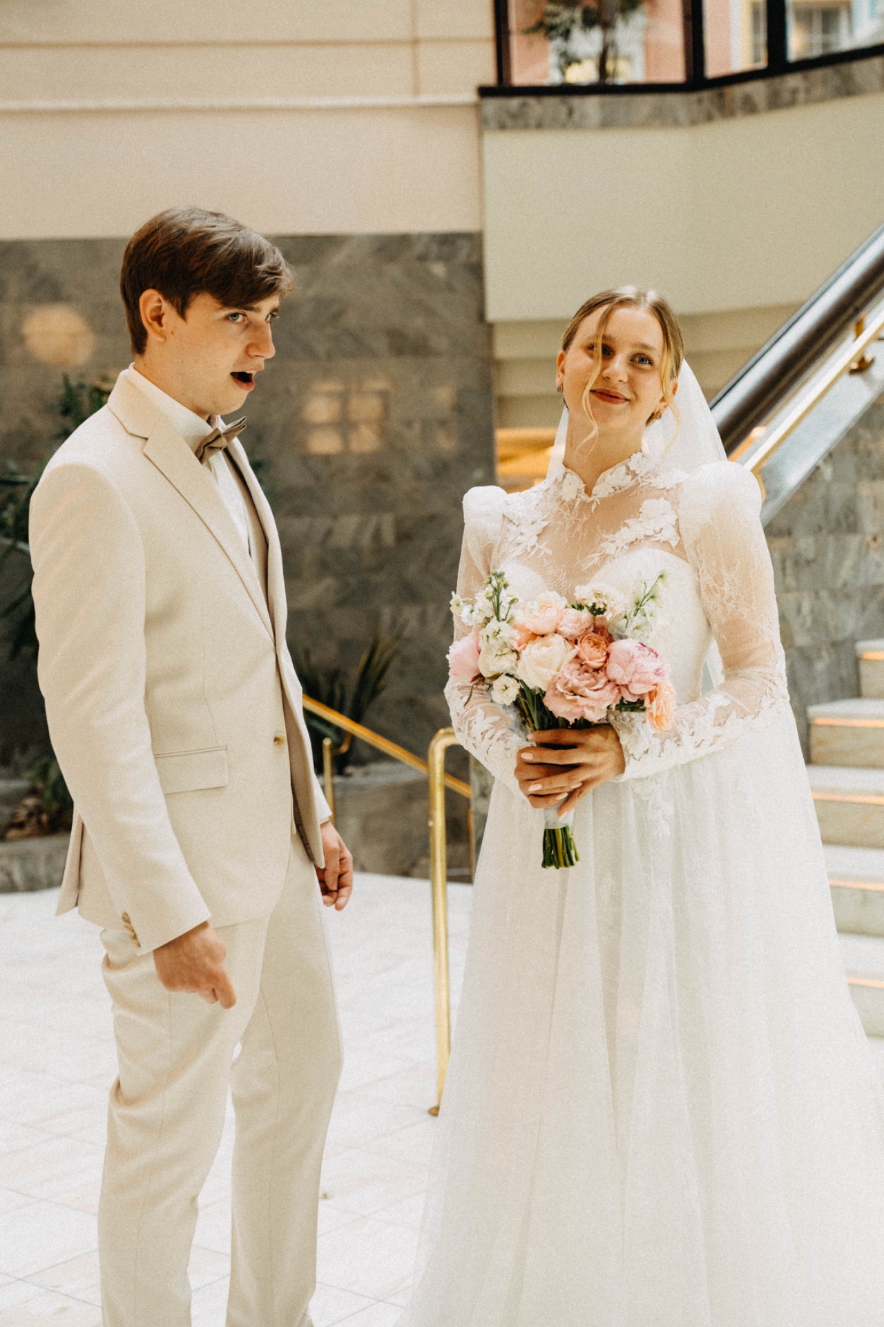 Трогательной была вся свадьба от начала и до конца. Я всю свадьбу плакала, начиная от церемонии в ЗАГСе и заканчивая поздравлением гостей. В этот день исполнилась моя мечта — обручиться на Английской набережной.