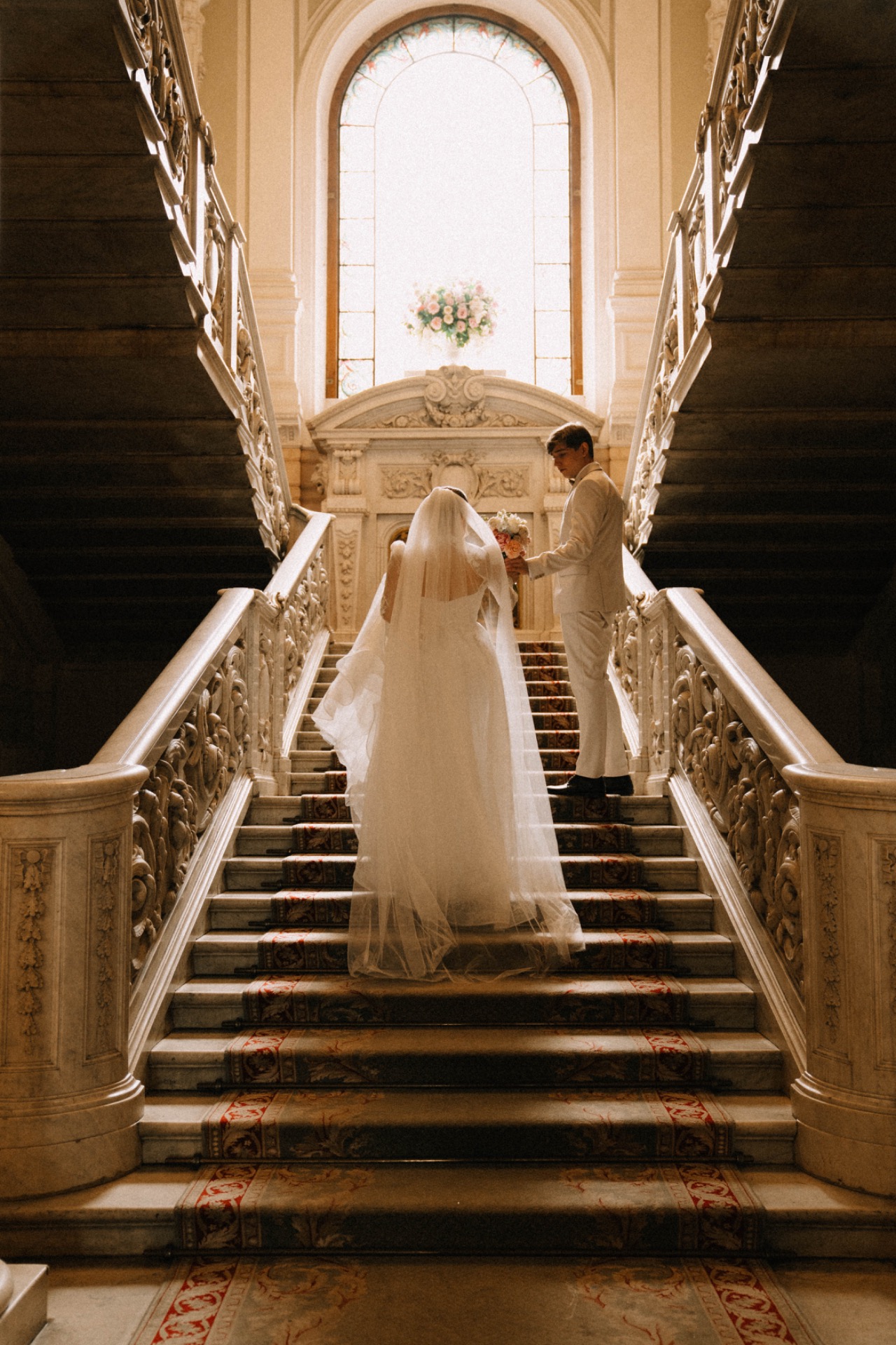 Фишкой нашей свадьбы стало размещение станции с бутоньерками на велком-зоне. Это послужило своеобразной отсылкой к дворцово-бальной эстетике.