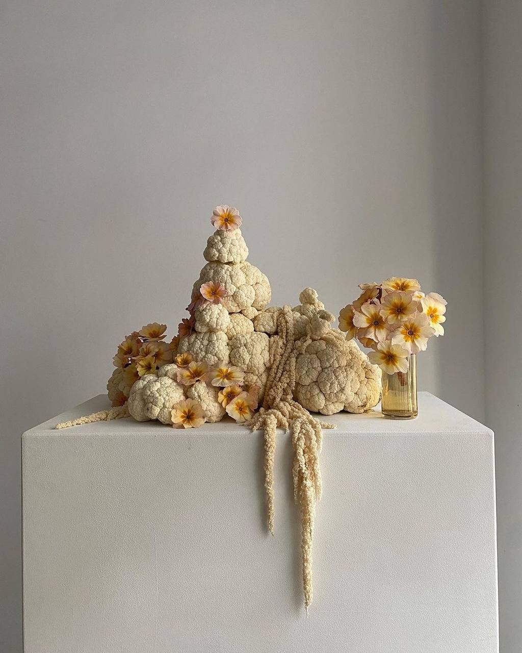 Капусту используют в центре стола, в зоне церемонии или в крупных акцентных композициях, сочетая с зеленью, травами и цветами.