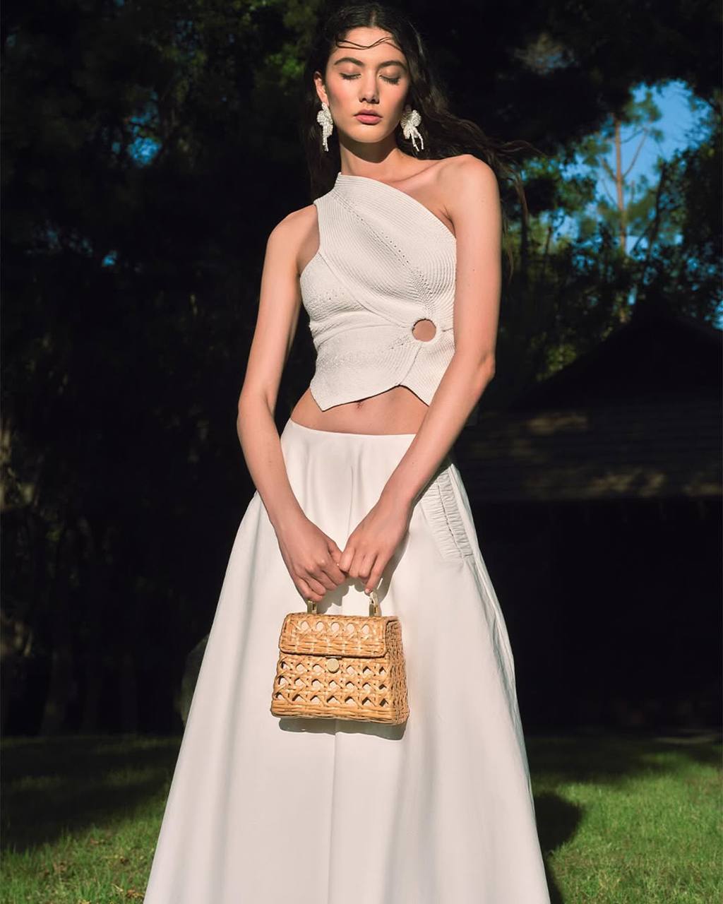 В образах это полупрозрачные ткани, монохромные светлые платья, светоотражающие аксессуары, «лунные» серьги и серебро.