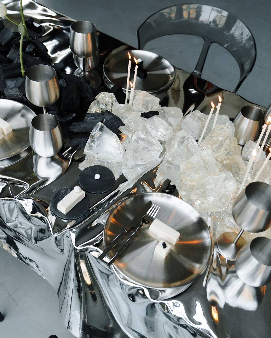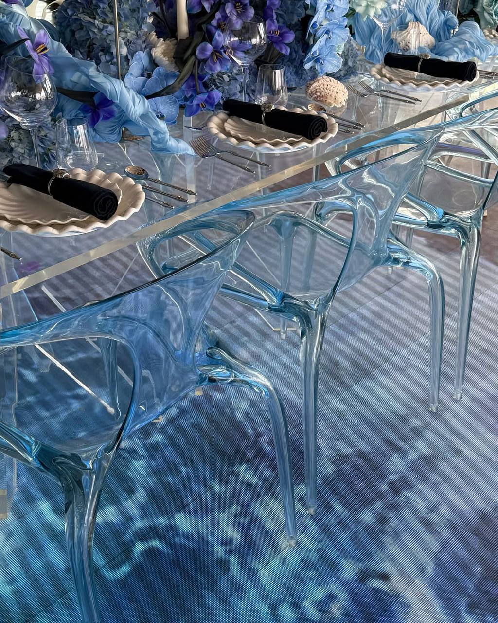 Тренд на палитру из холодных голубых, синих и серебристых оттенков, которая олицетворяет спокойствие и ясность, стал ответом на перегруженный визуал и избыточность цвета и деталей в современном мире. В декоре это выражается обилием стекла, зеркал, серебра, ледяных скульптур и минималистичных композиций.