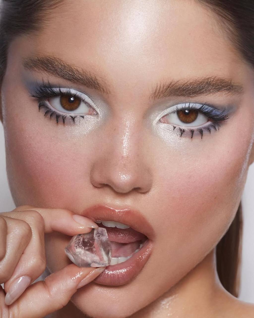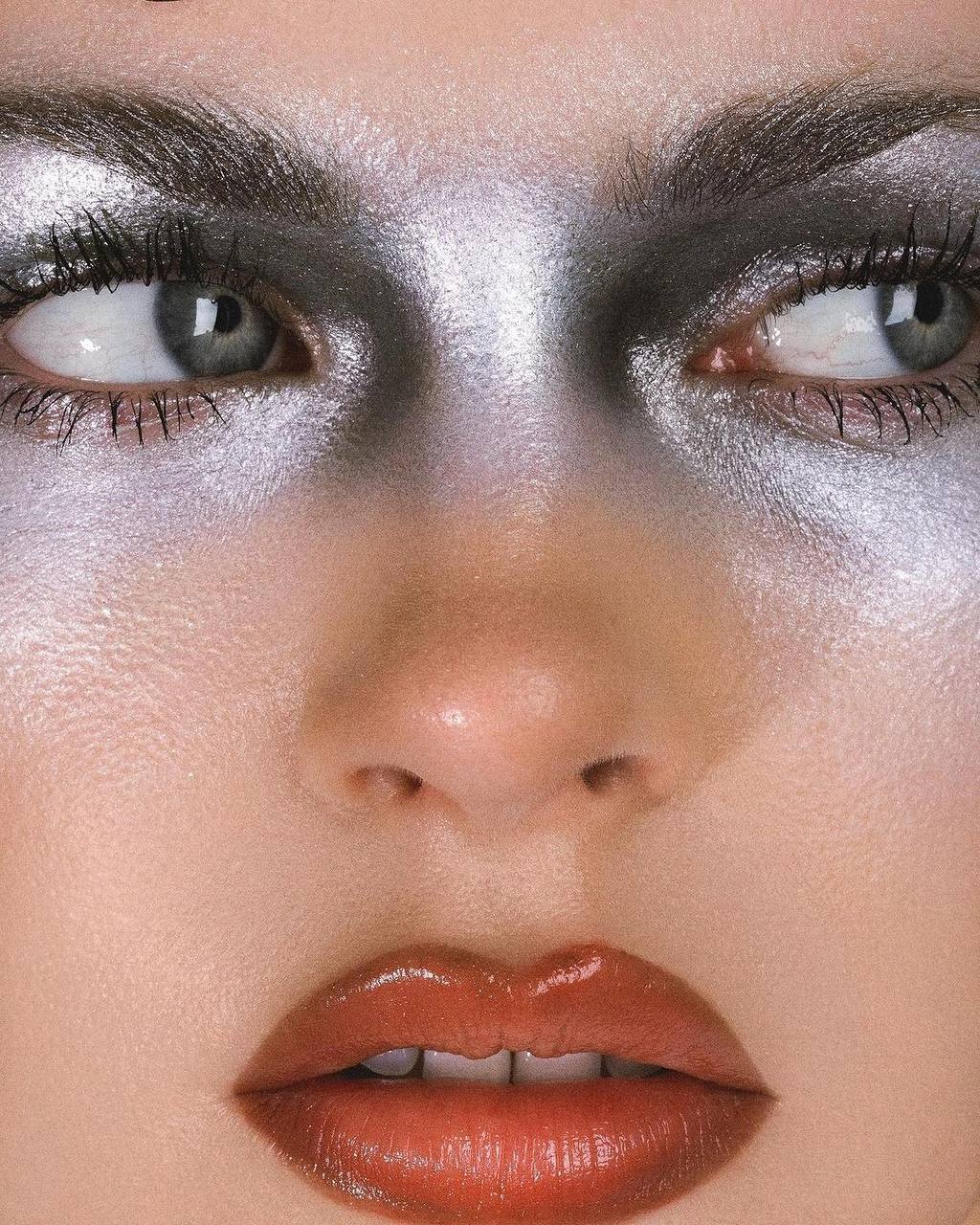 Макияж в этом стиле подразумевает насыщенные губы, сияющий хайлайтер и блестящие элементы на глазах.