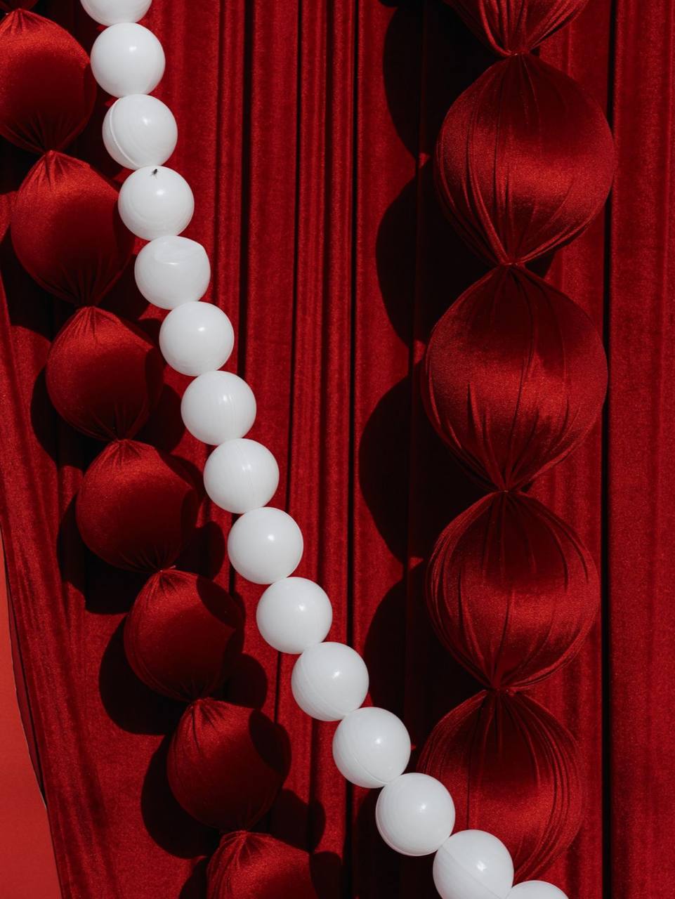 Декор в этом тренде играет с масштабом и формой — полосатые ткани, скульптурные элементы и композиции из шаров и декоративных фигур.