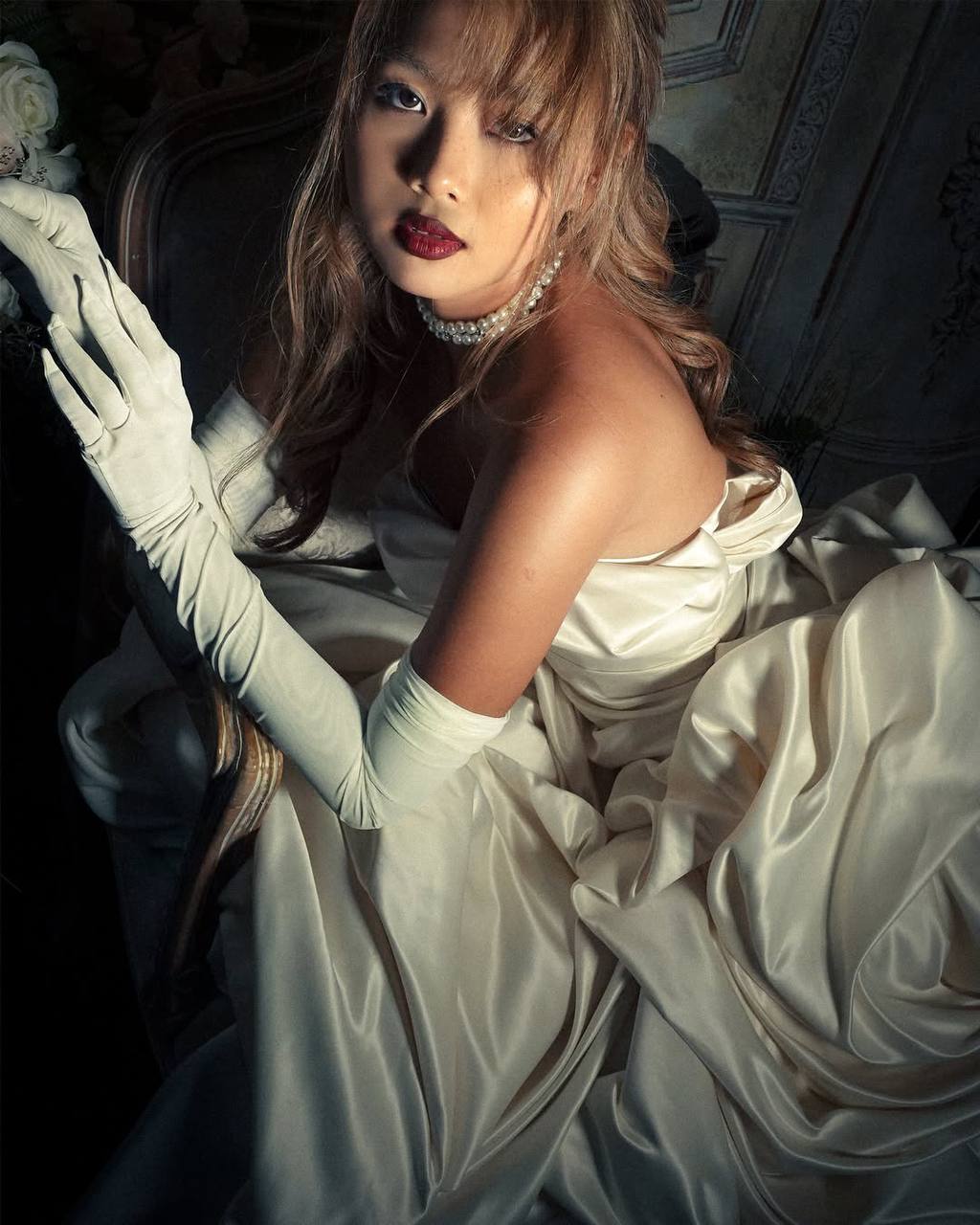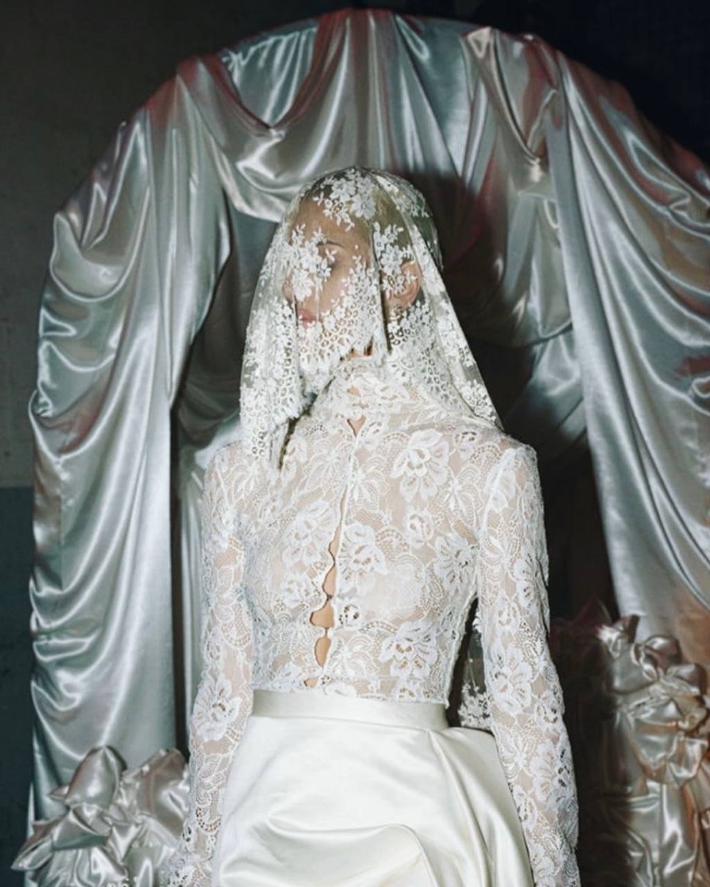 В образе невесты преобладают театральные элементы: перчатки, массивные украшения, жемчуг и всё то, что усиливает драматичность.