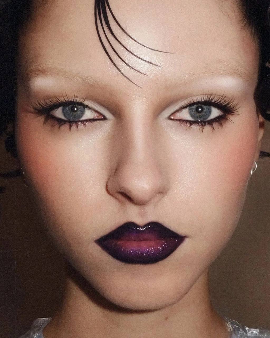 Макияж в эстетике vamp romantic — это акцент на глаза или губы, смоки с лёгкой растушёвкой и сияющая кожа.