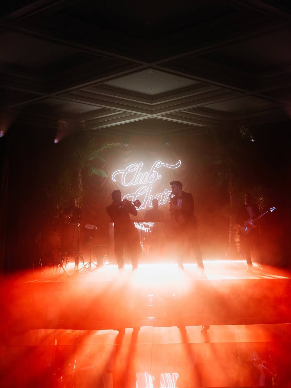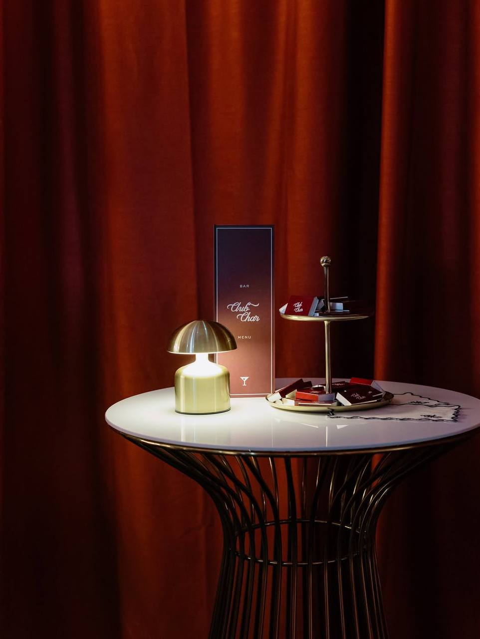 Декор играет на контрасте блеска и лаконичности: зеркальные поверхности, хромированные и латунные детали, крупные люстры и игра со светом. Цветовая палитра: глубокие красный, чёрный и жёлтый.