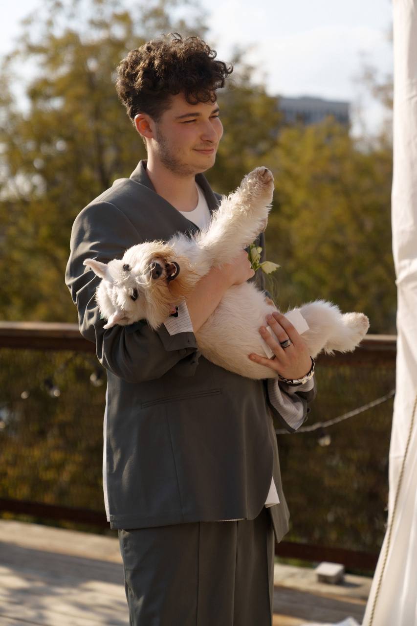 Питомец пары — собака Пи Дидди — не просто была вместе с ними в день свадьбы, в середине речи у алтаря она выбежала и просидела остаток церемонии на руках у жениха. Получились очень милые кадры и воспоминания, которые останутся на всю жизнь.