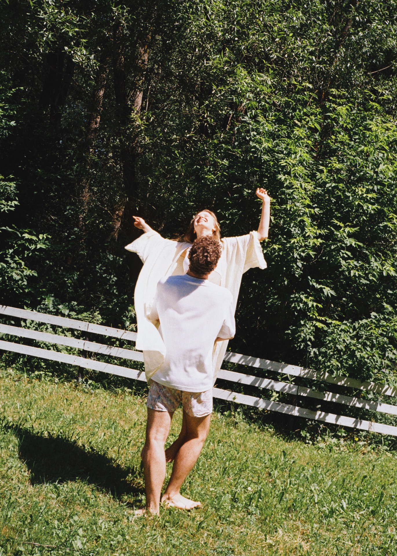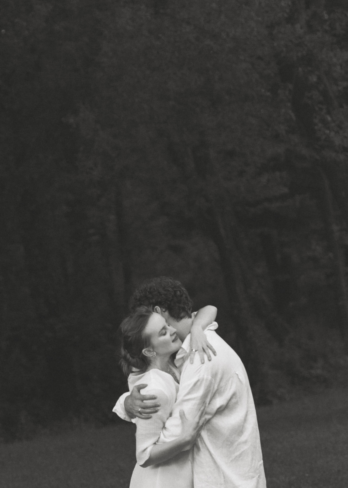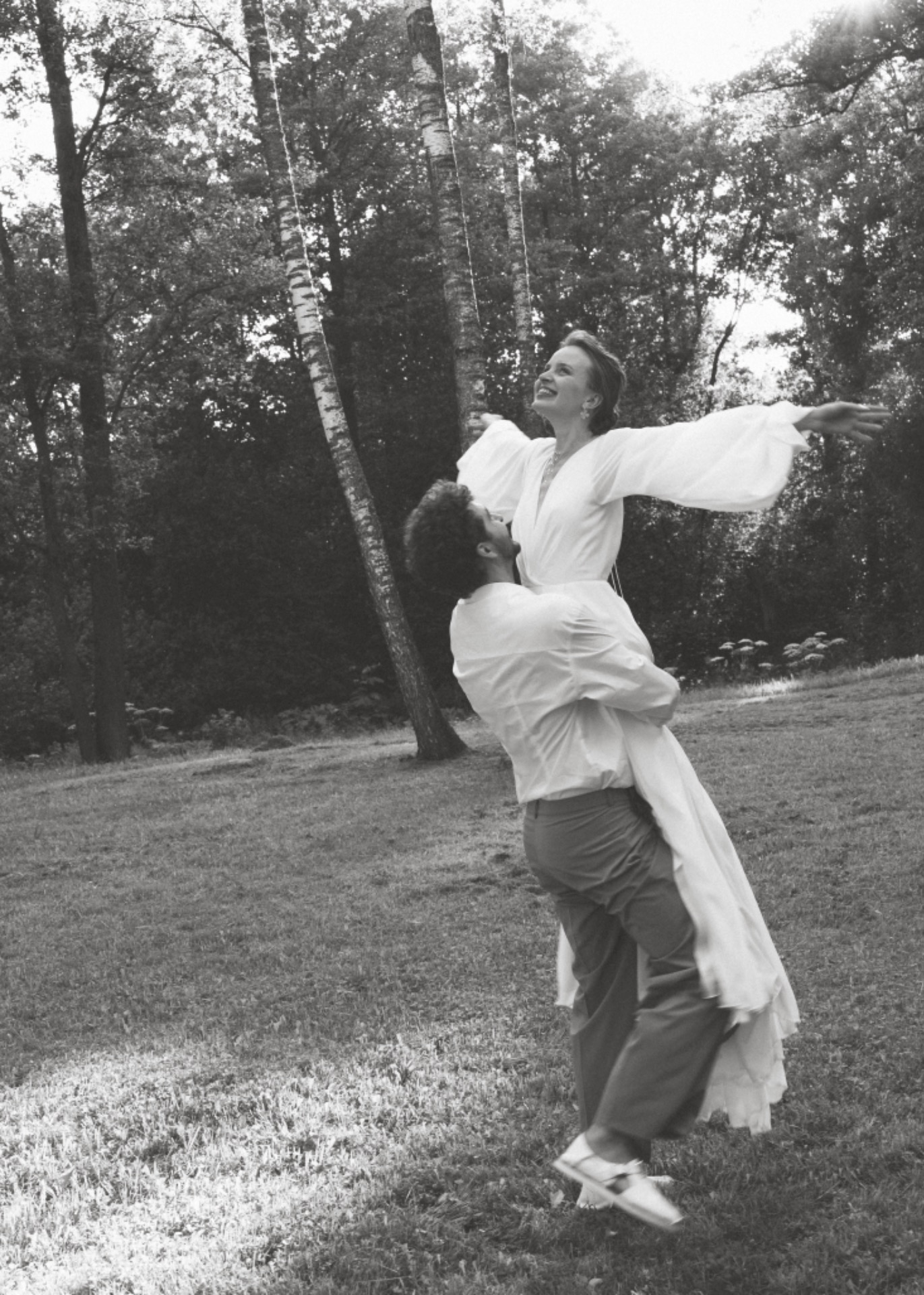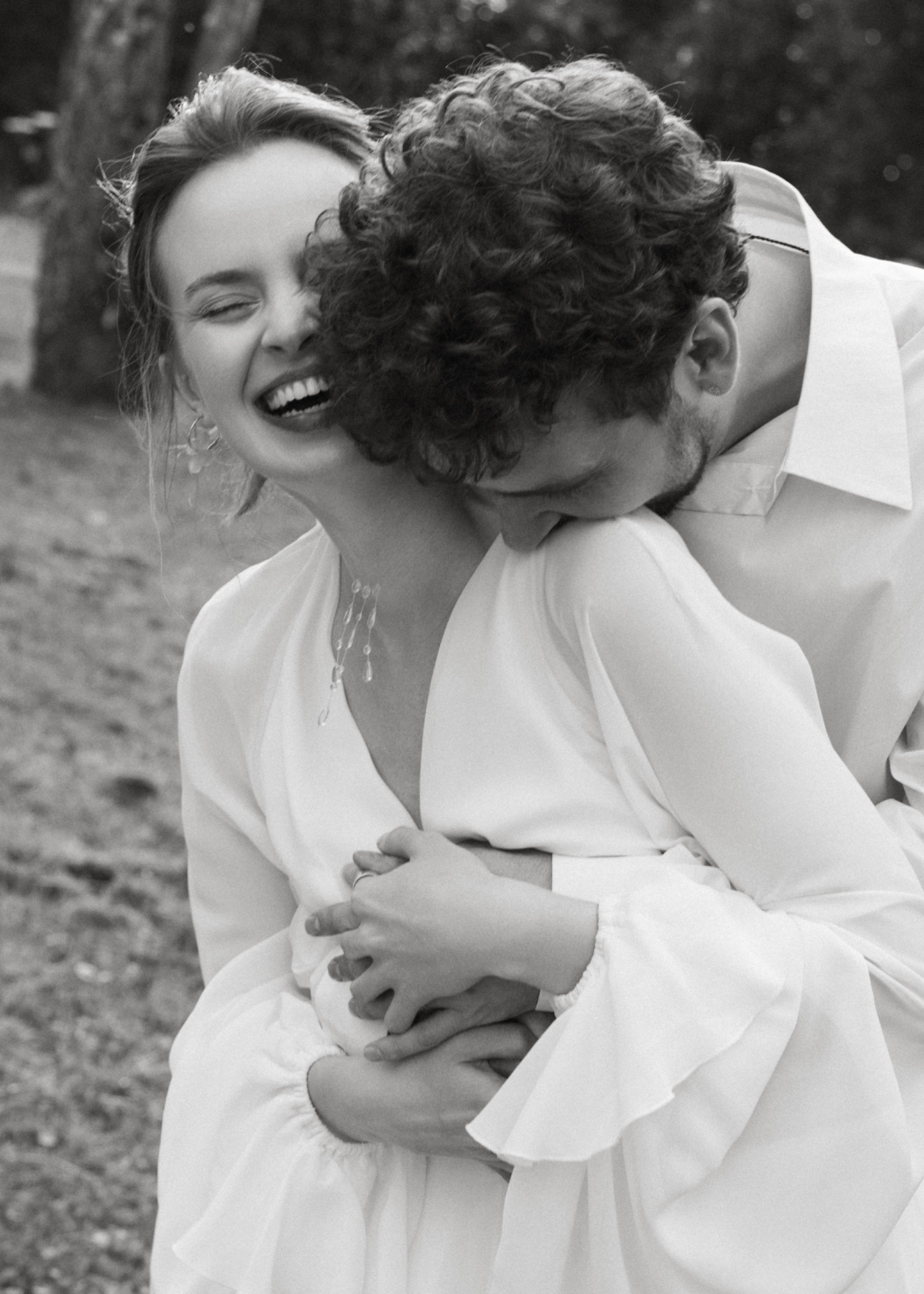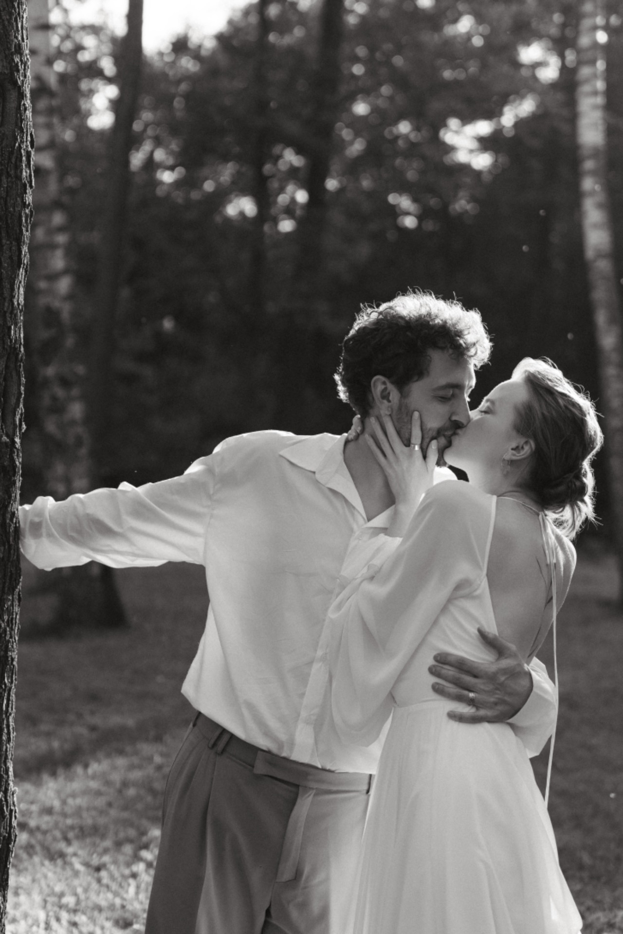 Церемонию вёл наш близкий друг, поэтому она получилась максимально про нас, с множеством отсылок к нашей истории. На клятвах мы оба плакали, смеялись и улыбались. Мы оба любим плёночные фотографии, поэтому прямо на церемонии сняли друг друга, чтобы навсегда запечатлеть этот момент.