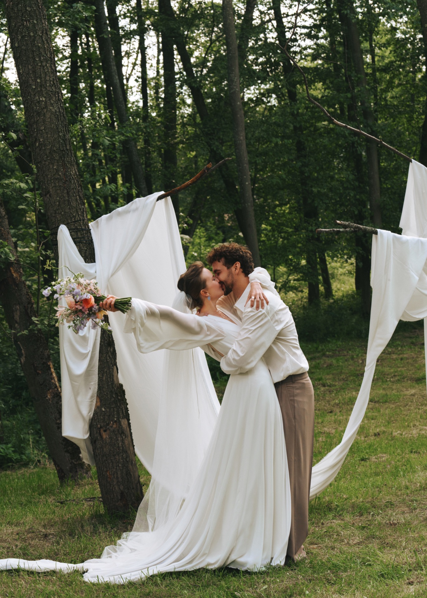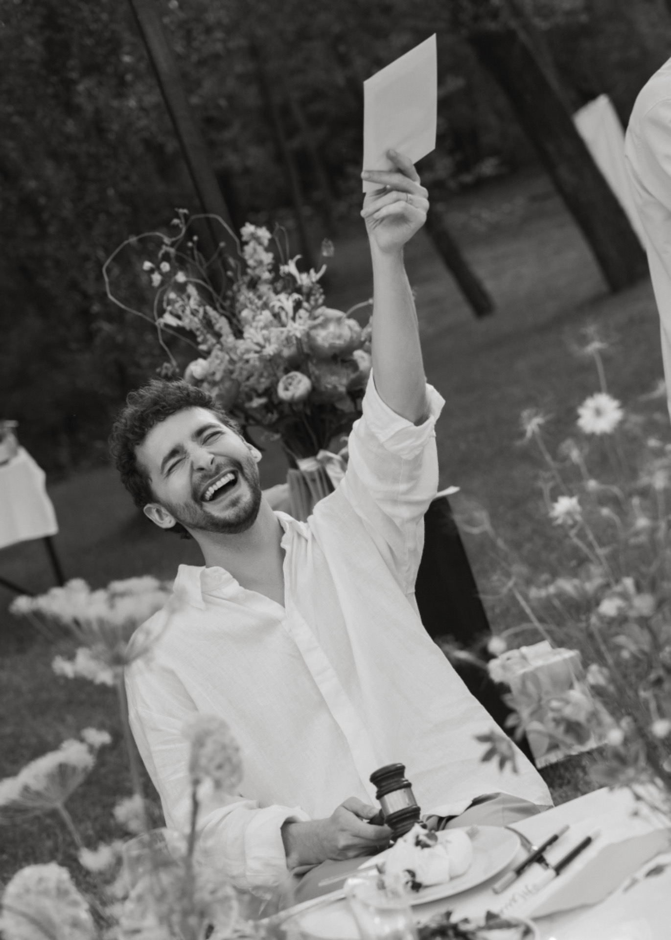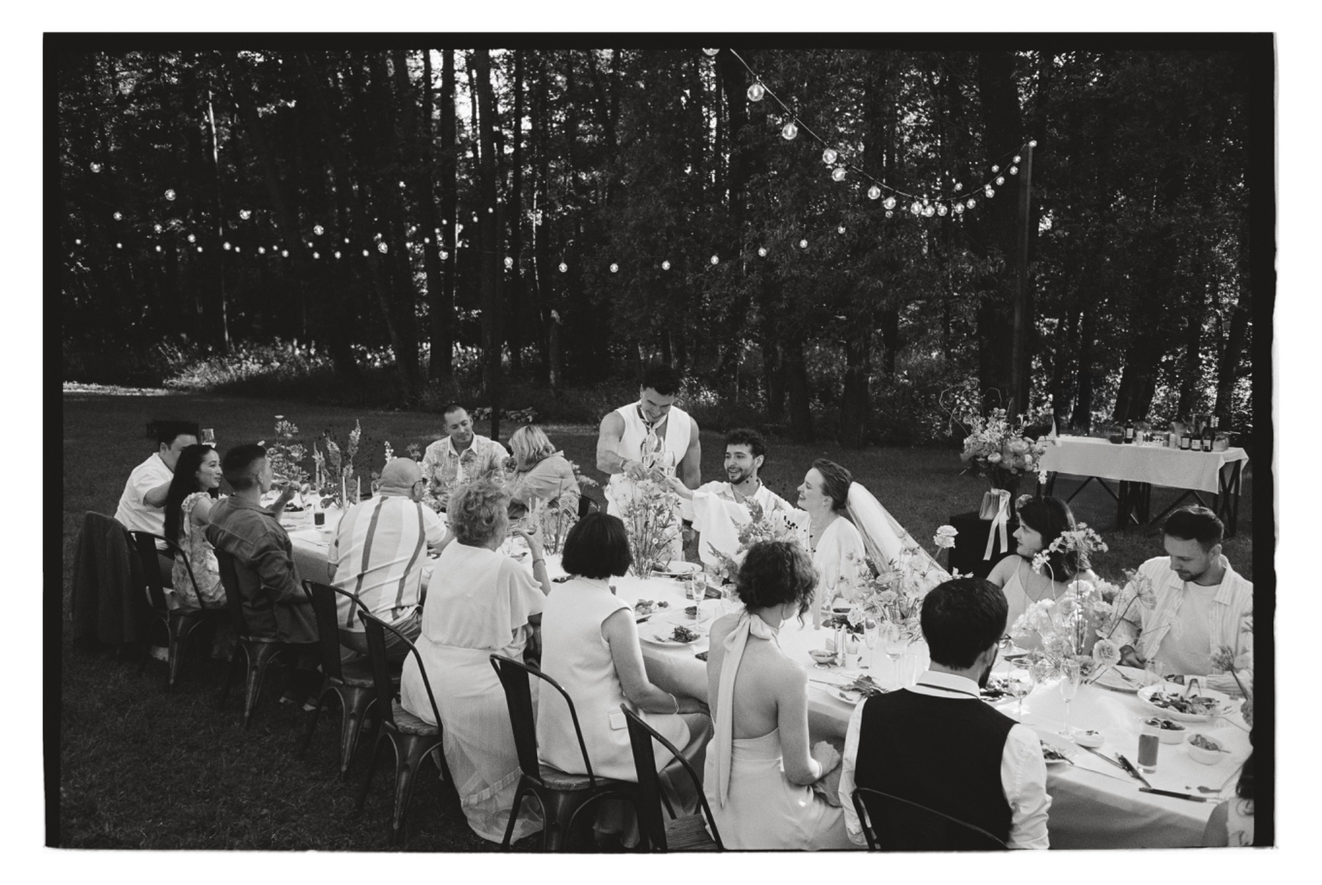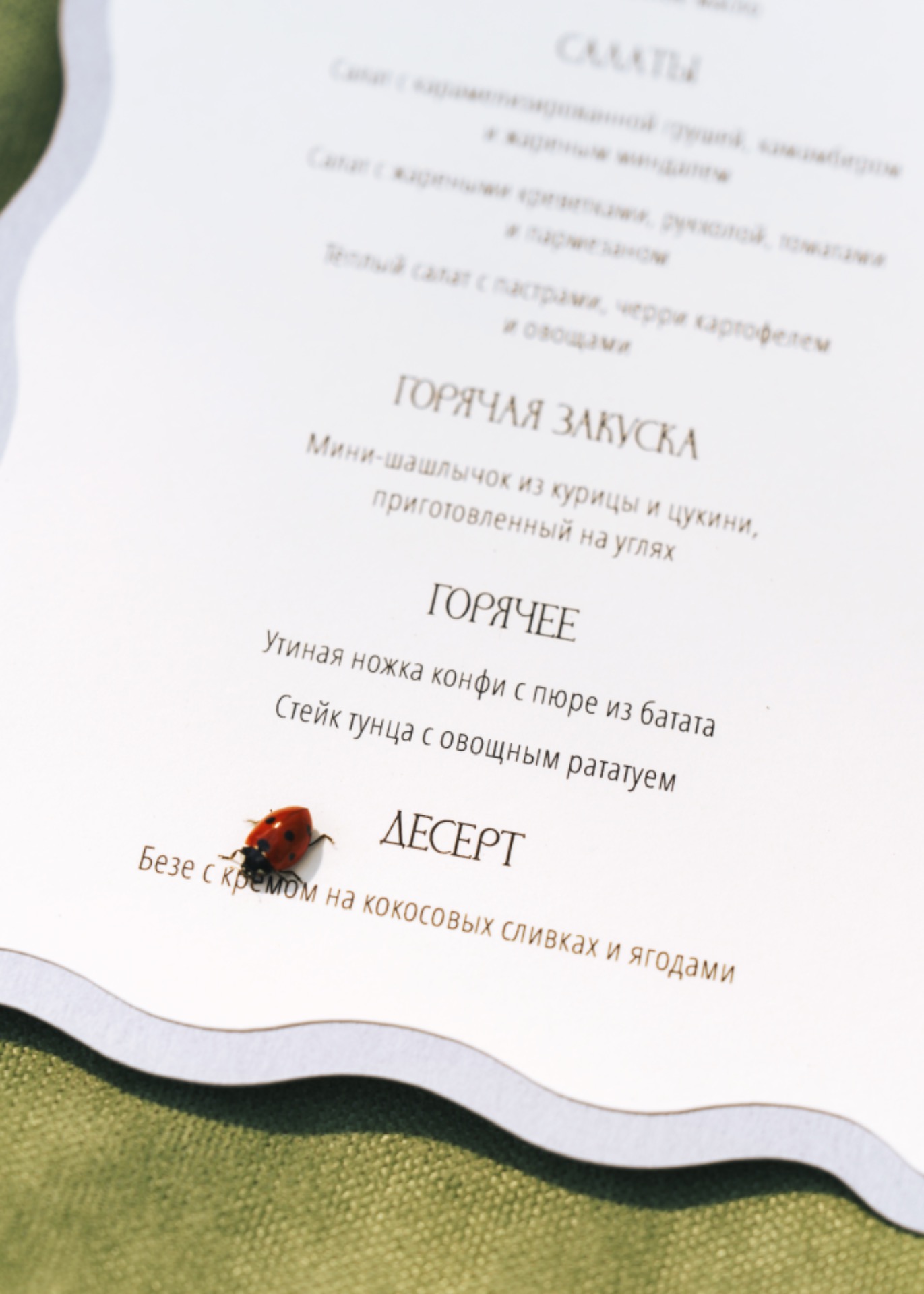 Подготовка заняла у нас 4 месяца. Нашим главным желанием было устроить праздник на природе: под открытым небом, за одним длинным столом вместе с нашими гостями. Мы хотели провести этот вечер в тёплой, расслабленной атмосфере, без строгого тайминга, чтобы полностью прочувствовать этот день.