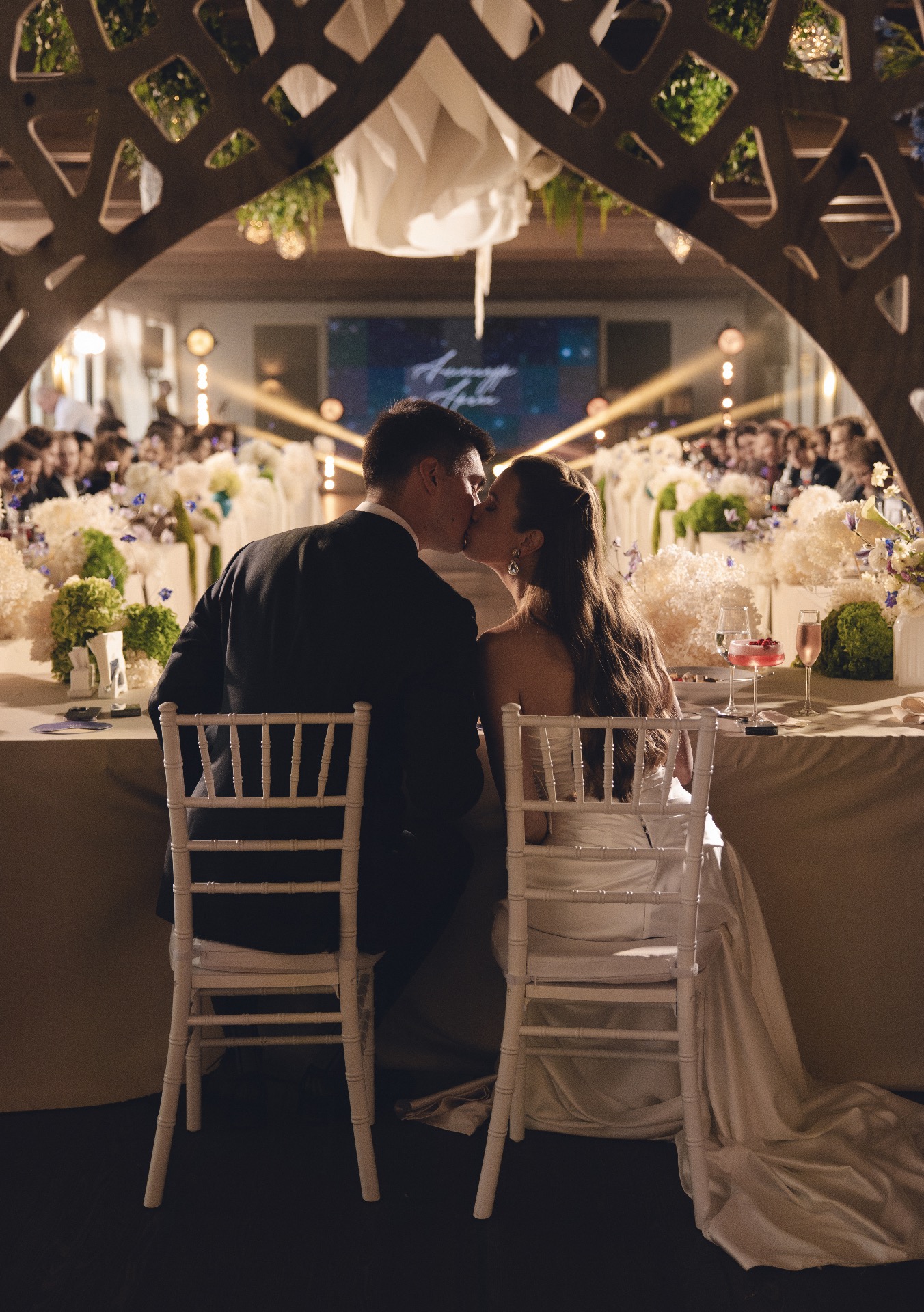 Главной фишкой свадьбы стала вечерняя церемония с отсылкой к предложению, которое было сделано под звёздами.