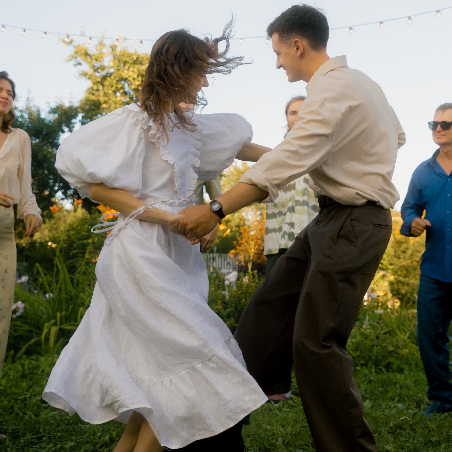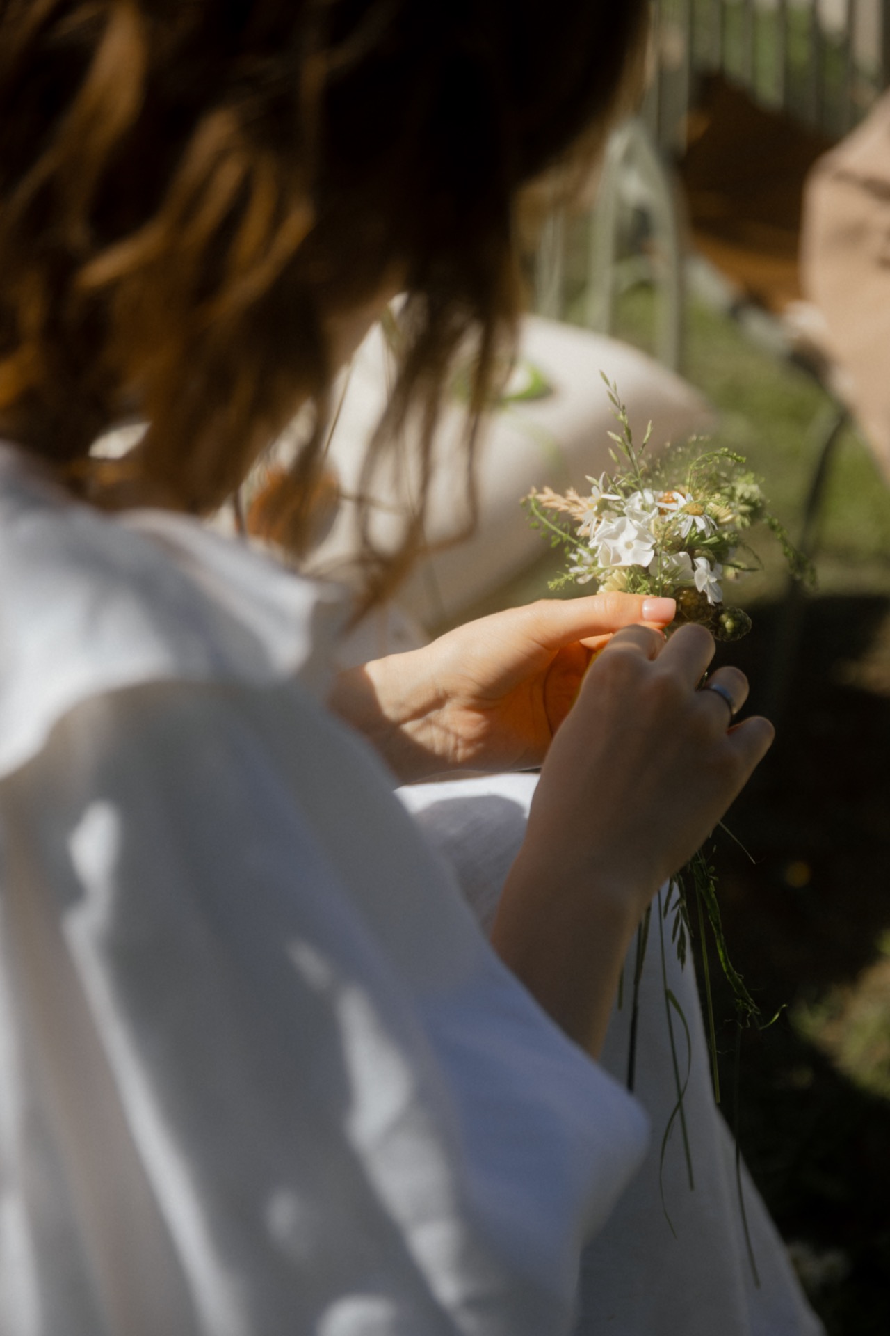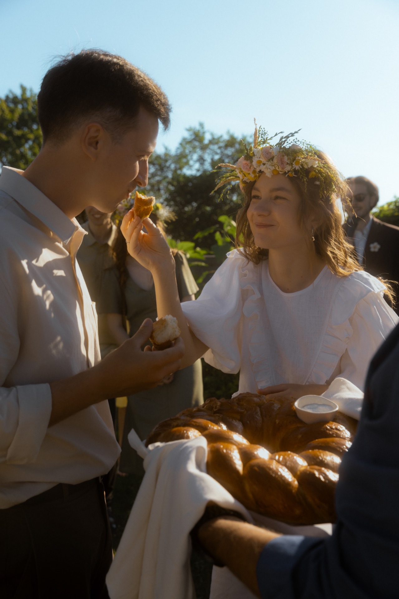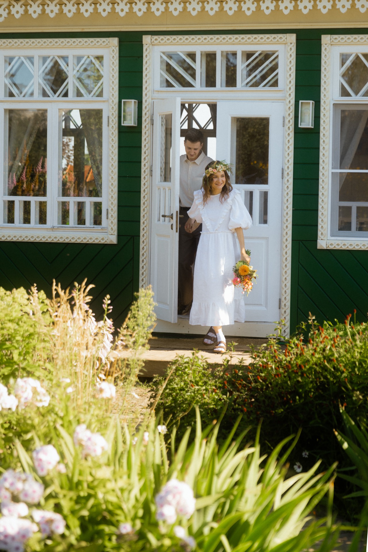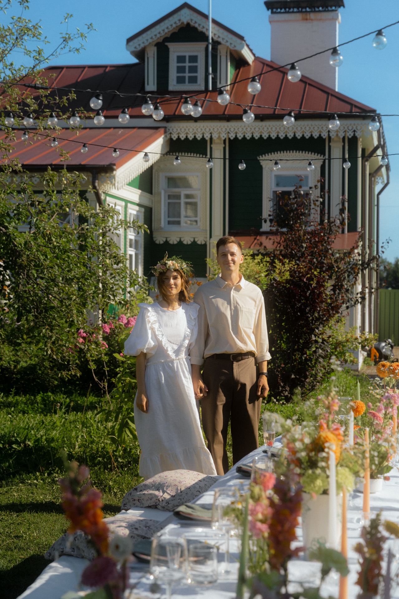 Я с самого начала знала, что не хочу классическое свадебное платье. Я мечтала о чём-то лёгком, удобном, отражающем фолк-настроение нашего праздника.