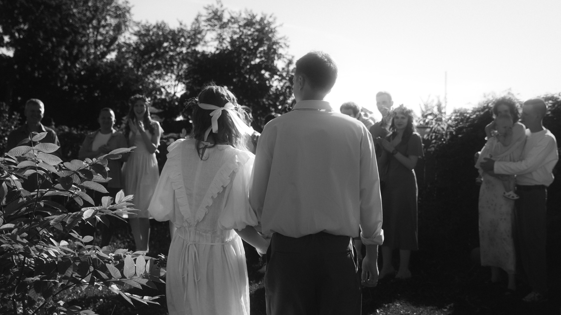 Церемонию мы устроили прямо под яблоней на фоне домика. Он сам по себе выглядел как лучшая декорация, а яблоня стала символом всего нашего дня и олицетворяла простоту, уют и естественность.