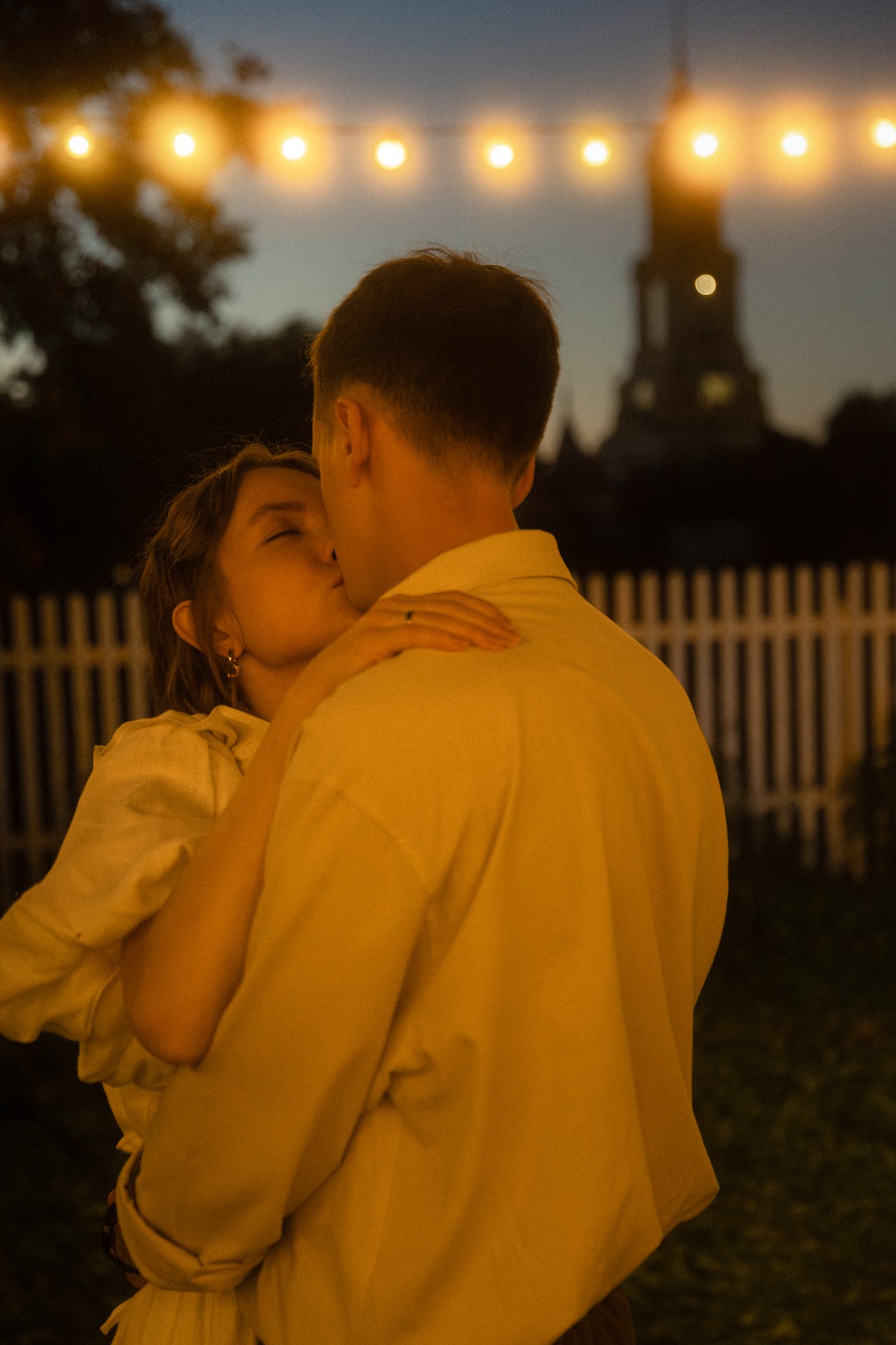 У самой скамейки Максим предложил сделать фото, отвёл меня чуть в сторону и попросил присесть, чтобы он меня сфотографировал. И пока я рассматривала фото и ни о чём не подозревала, он достал кольцо, встал на колено и спросил: «Ты будешь моей женой?».